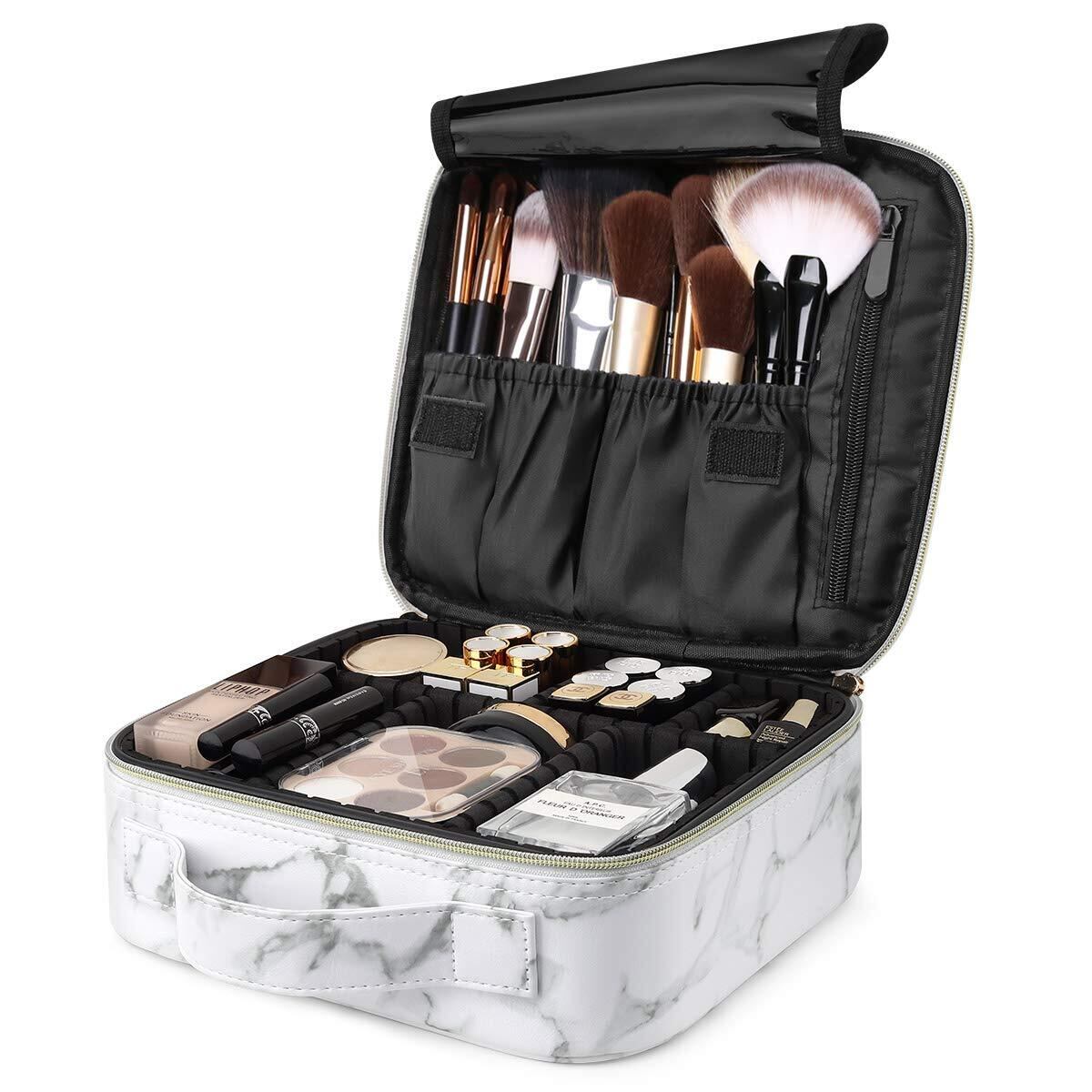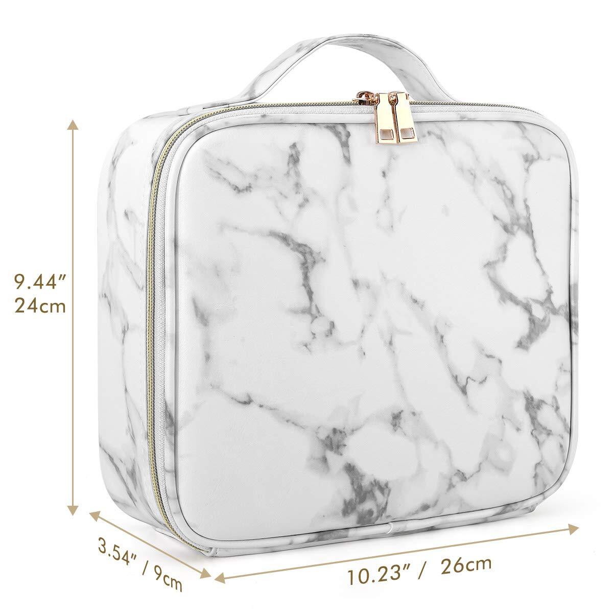 プロ用 メイクボックス Luxspire コスメボックス メイクブラシバッグ 化粧ポーチ コスメポーチ メイクポーチ 仕切り 持ち運び 防塵 收納 置き方調整可能 通勤・出張・旅行用 機能的收納 大容量 置き方が調整できる 衝撃吸収 化粧品収納 収納ケース 大型 母の日 White Marble | kki