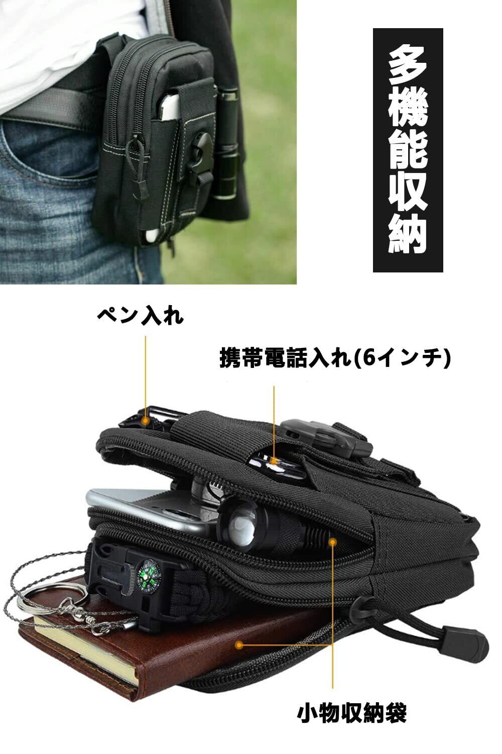 YFFSFDC 多機能ポーチ ベルトポーチ ウエストポーチ 小物入れ ウエストバッグ 携帯便利 大容量 登山 探検 キャンプ アウトドア用(ブラック)