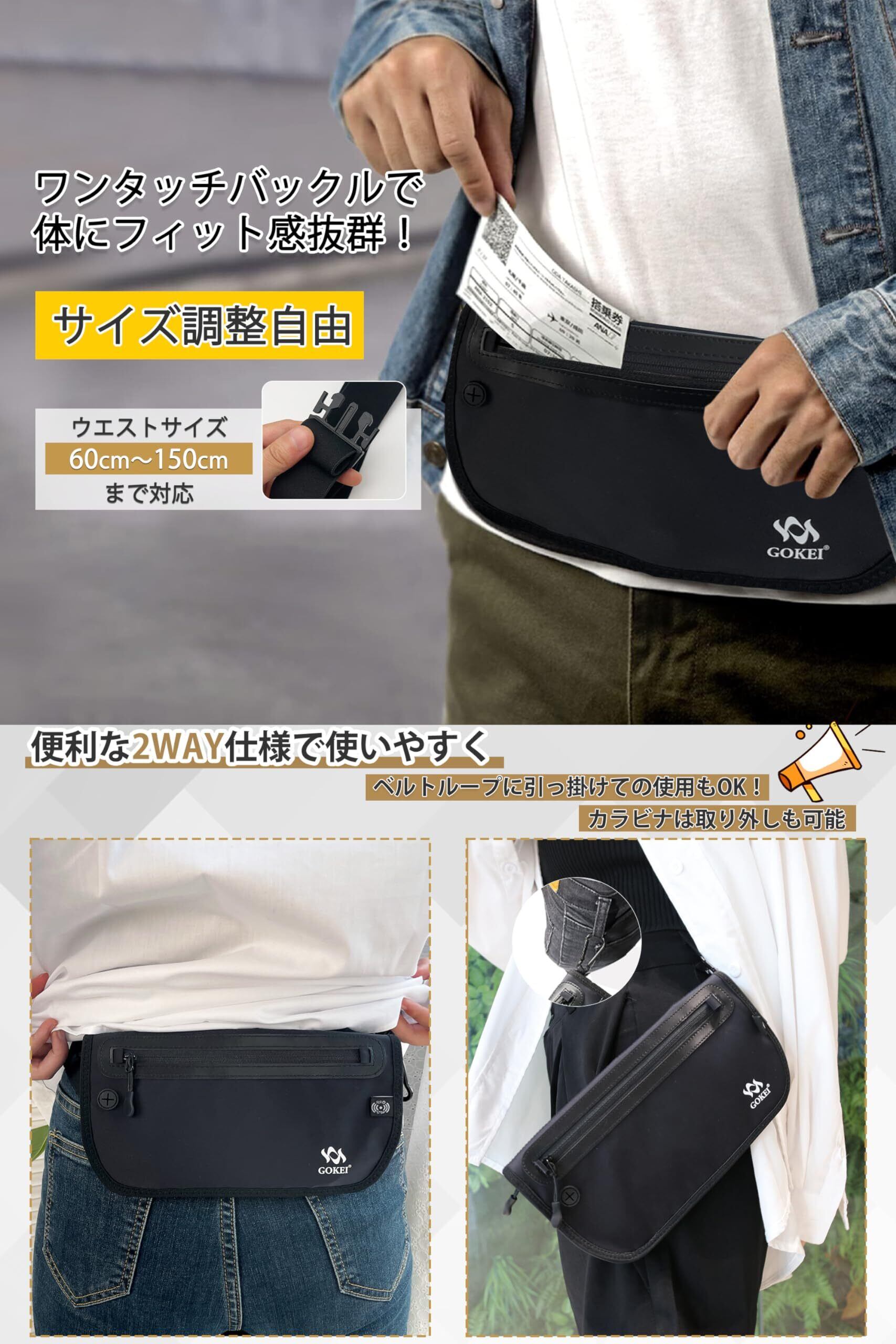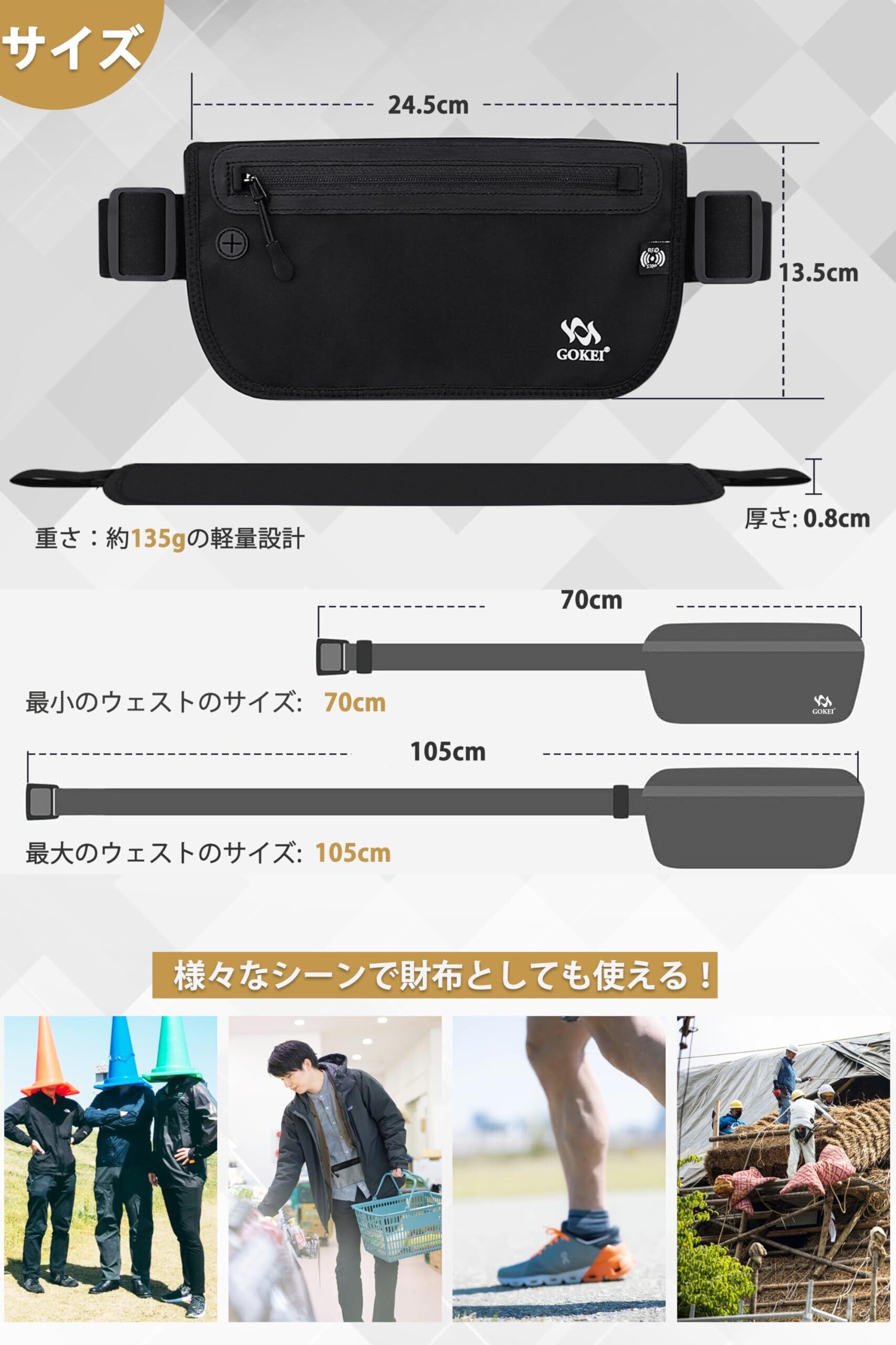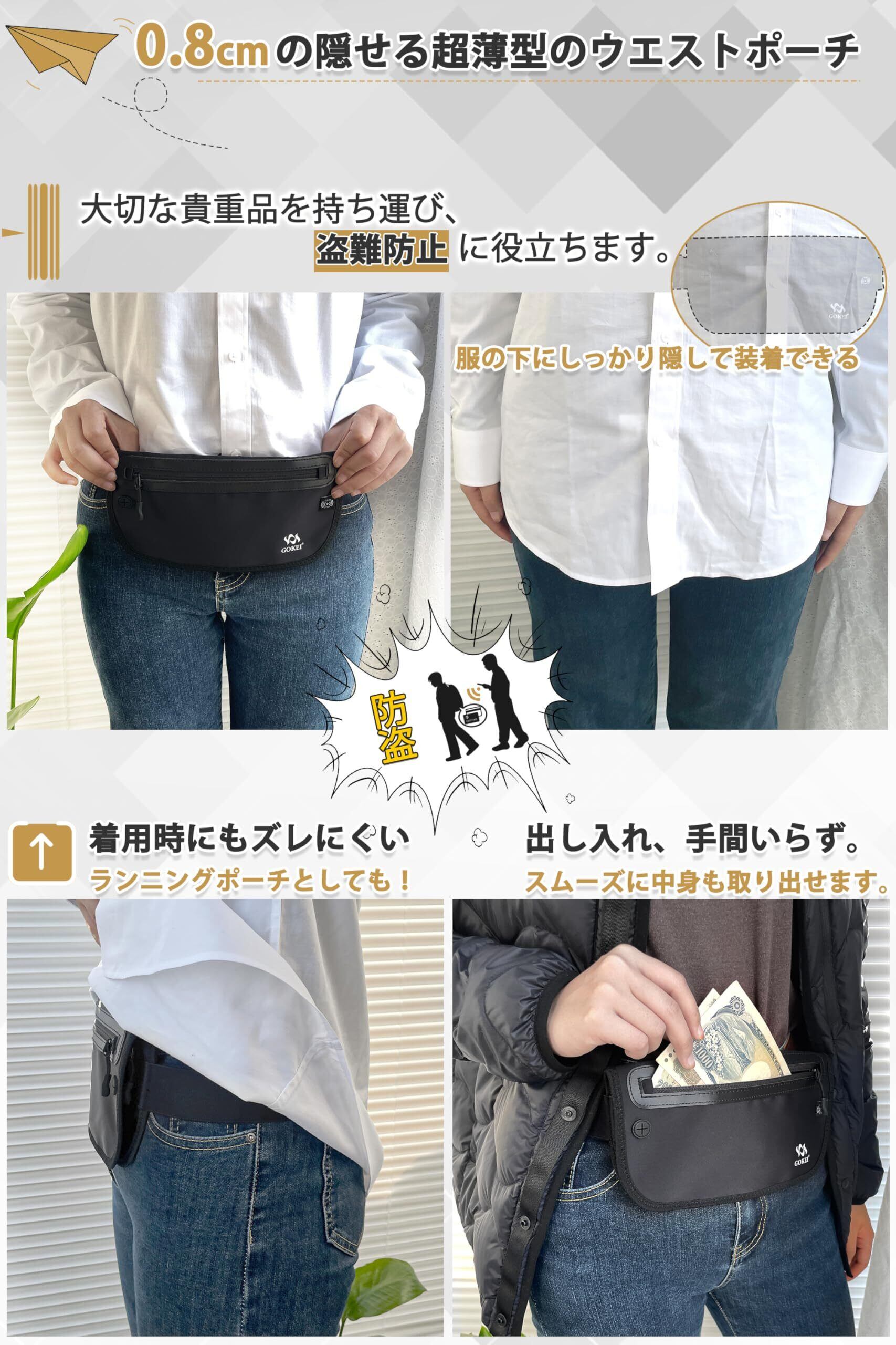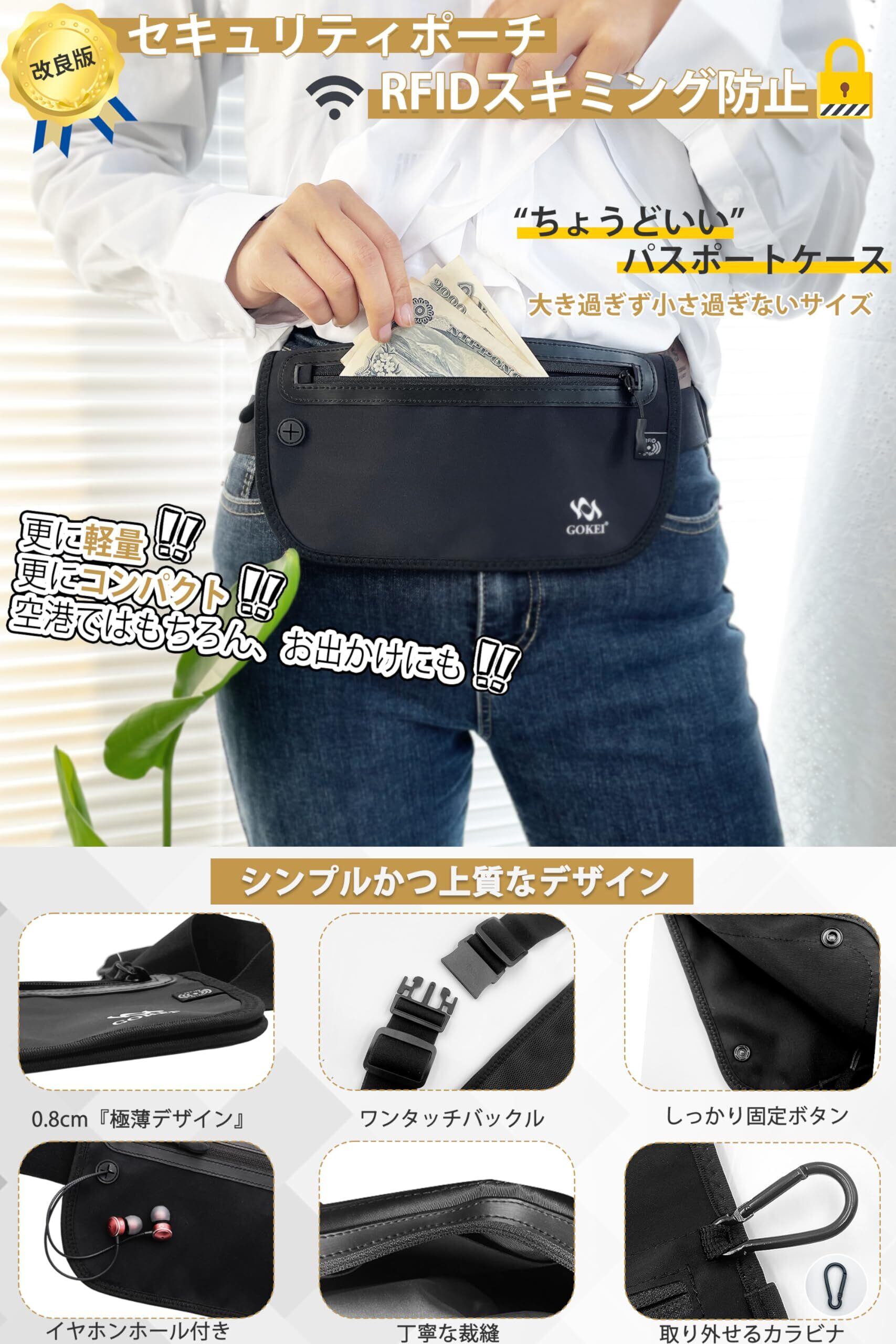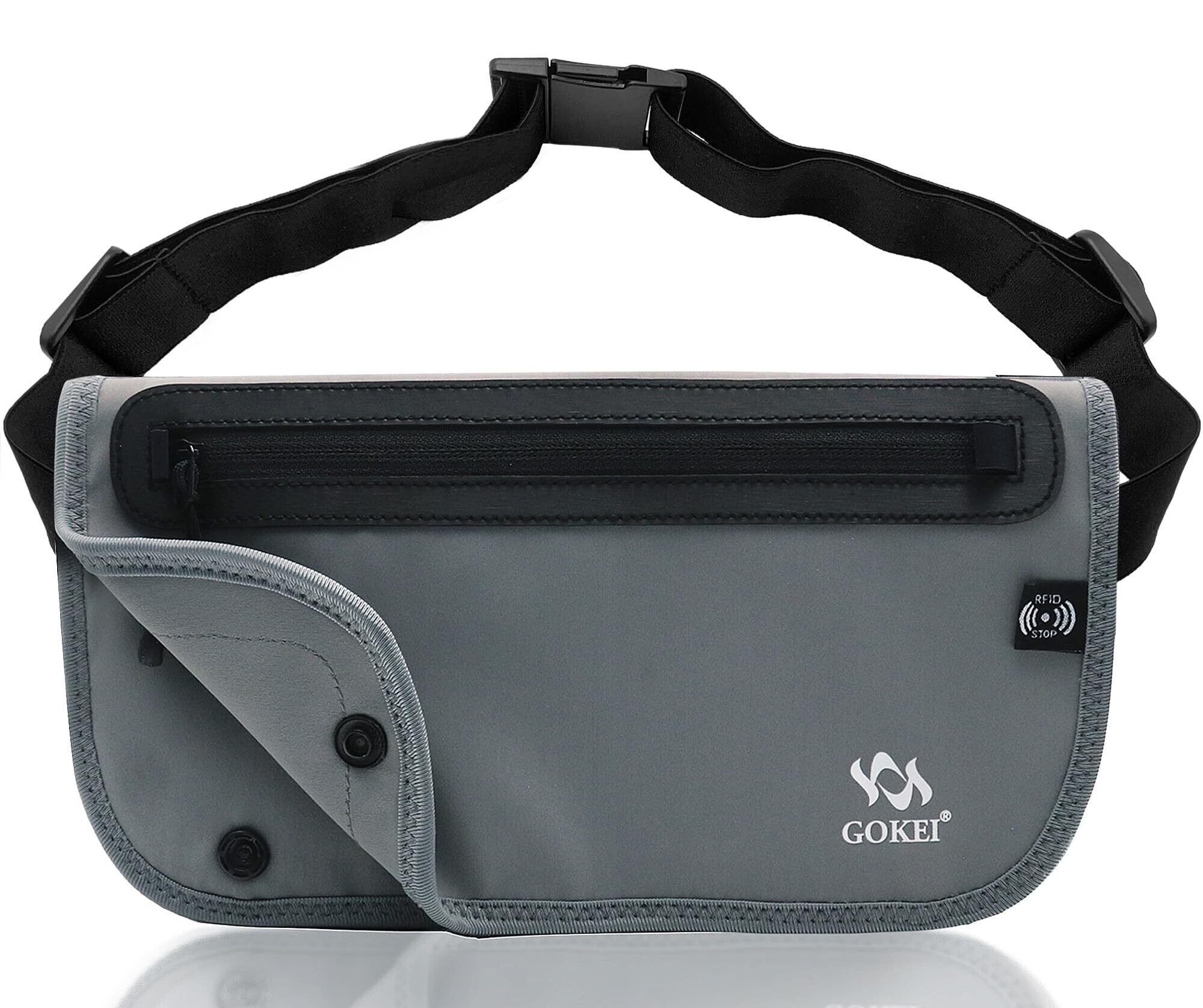 [GOKEI] パスポートケース セキュリティポーチ スキミング防止 海外旅行ポーチ セキュリティバッグ ウエストポーチ パスポートカバー セキュリティ 海外旅行 旅行用品 バッグ パスポート入れ トラベル ポーチ 腹巻 防犯 スリ防止 グレー | kki