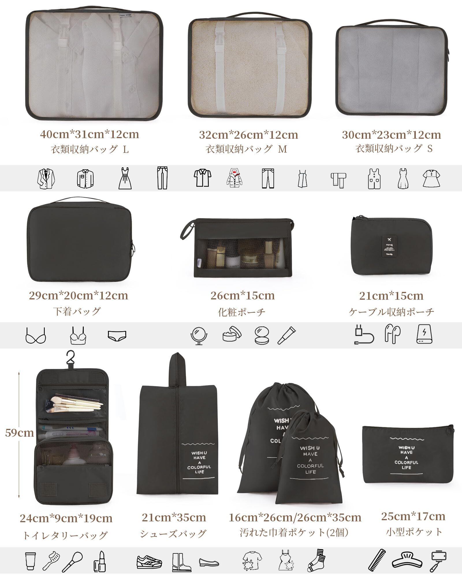 トラベルポーチ 11点セット 旅行用ポーチ パッキングポーチ アレンジケース 洗面用具 旅行用 出張 衣類 整理 便利グッズ 靴用 下着収納 吊り下げ 小物入れ