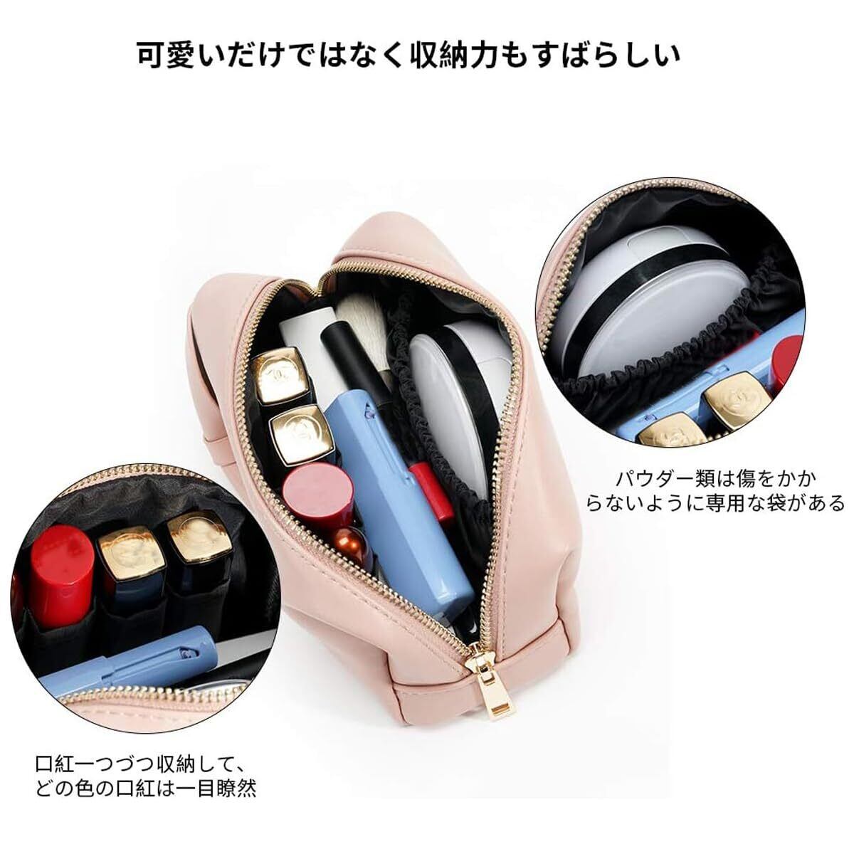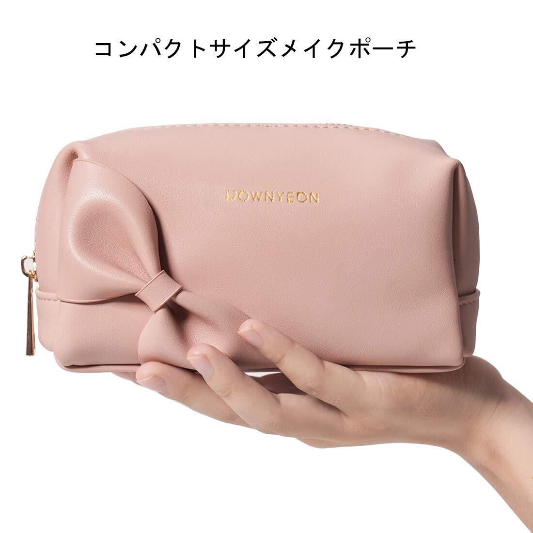Rownyeon メイクポーチ 持ち運び かわいい コンパクト 仕切りたくさん 化粧ポーチ 韓国風 リボン ペンケース 防撥水 PU 小物入れ ミニ 小さめ ピンク ブラシいれ ペン入れ 誕生日贈り物 ギフト | kki