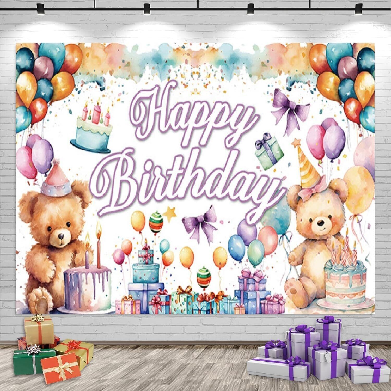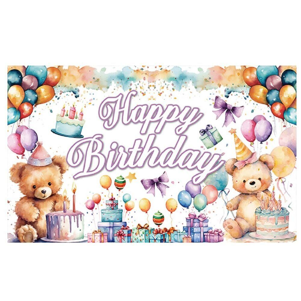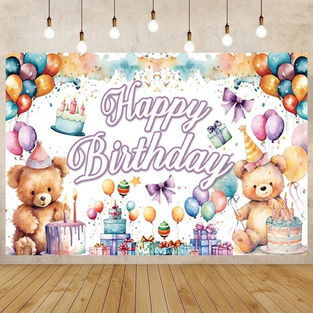 バースデー タペストリー 誕生日 飾り付け 背景布 壁掛け飾り HAPPY BIRTHDAY クマ 風船 ギフトの柄 大判 撮影用 写真背景 壁飾り 室内装飾 女の子 男の子 180*110cm | kki