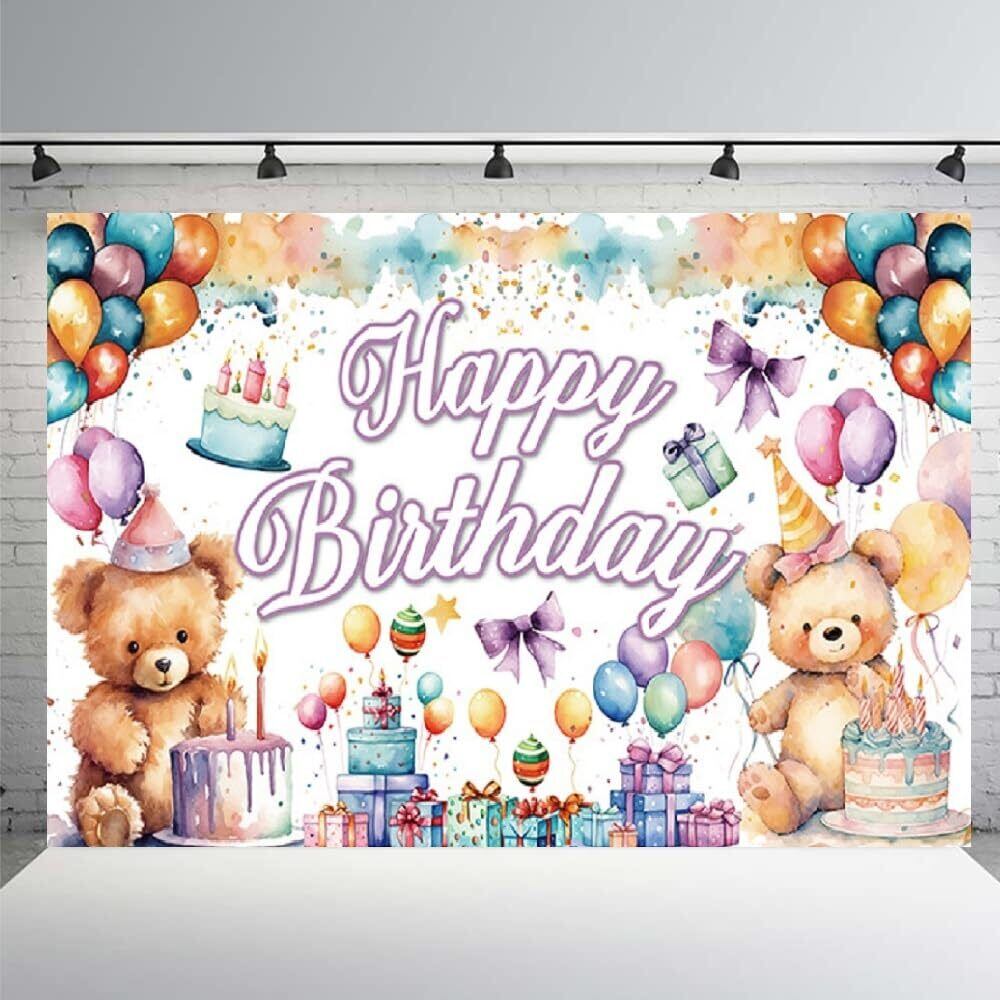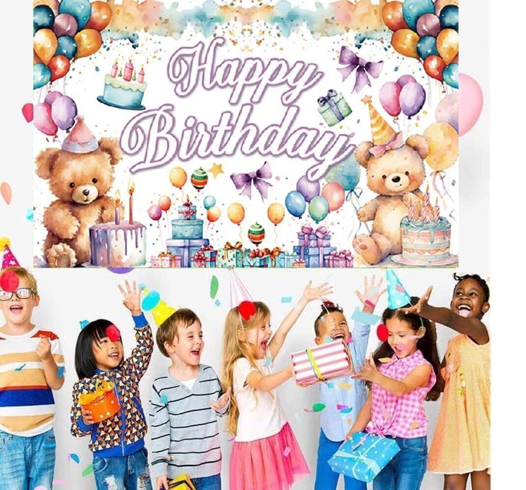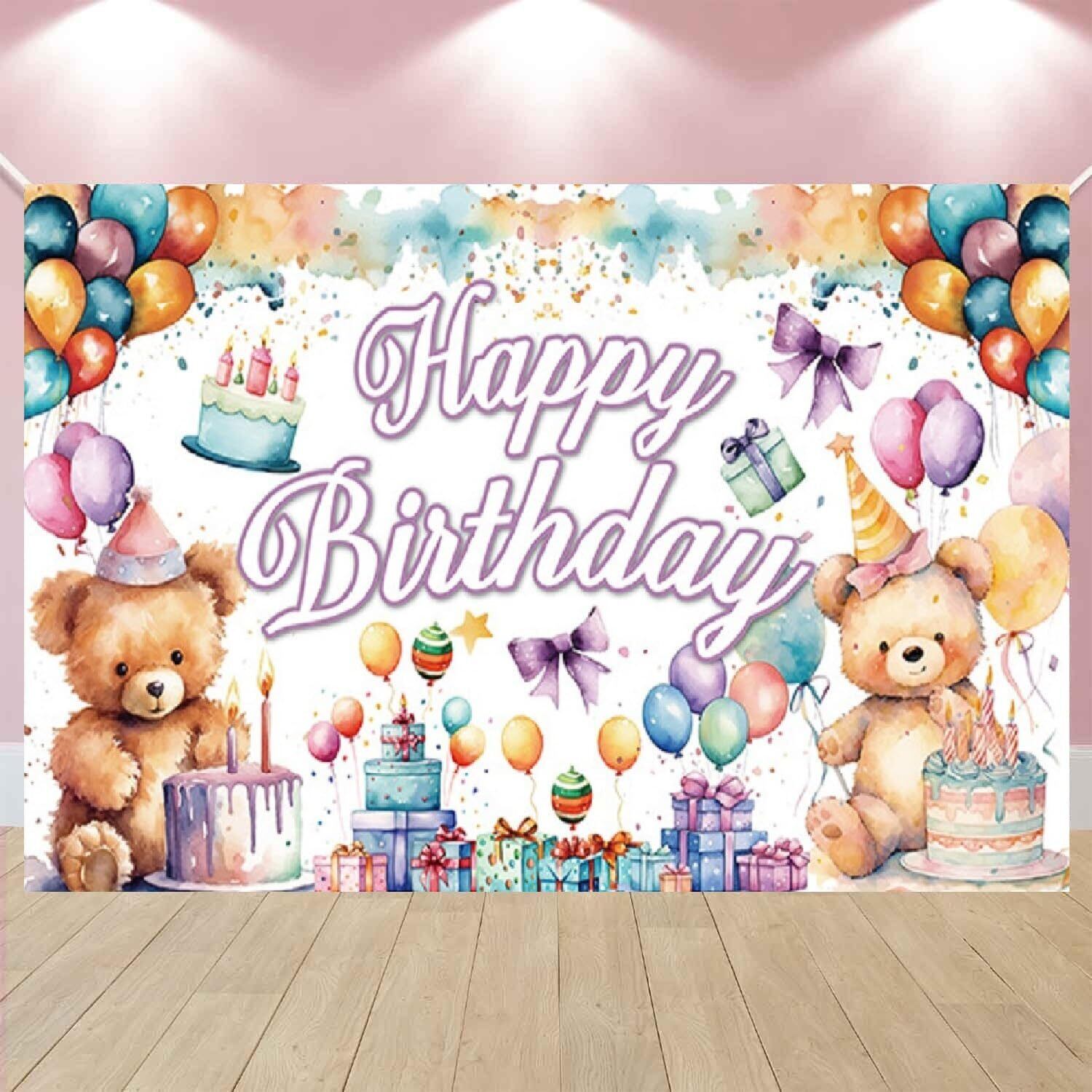 バースデー タペストリー 誕生日 飾り付け 背景布 壁掛け飾り HAPPY BIRTHDAY クマ 風船 ギフトの柄 大判 撮影用 写真背景 壁飾り 室内装飾 女の子 男の子 180*110cm | kki