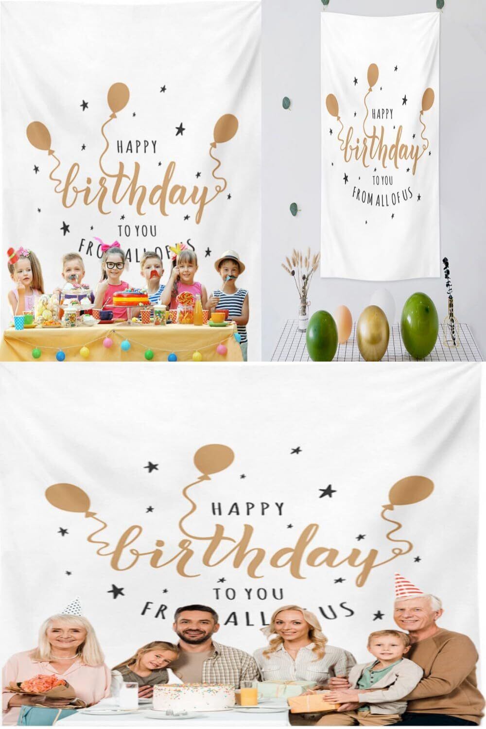 YFFSFDC バースデータペストリー 誕生日 飾り付け Happy Birthday おしゃれ 壁掛け フォトポスター 写真背景 100×70cm ナチュラルでおしゃれ お祝い 記念写真 ハーフバースデー 男の子 女の子 白 | kki