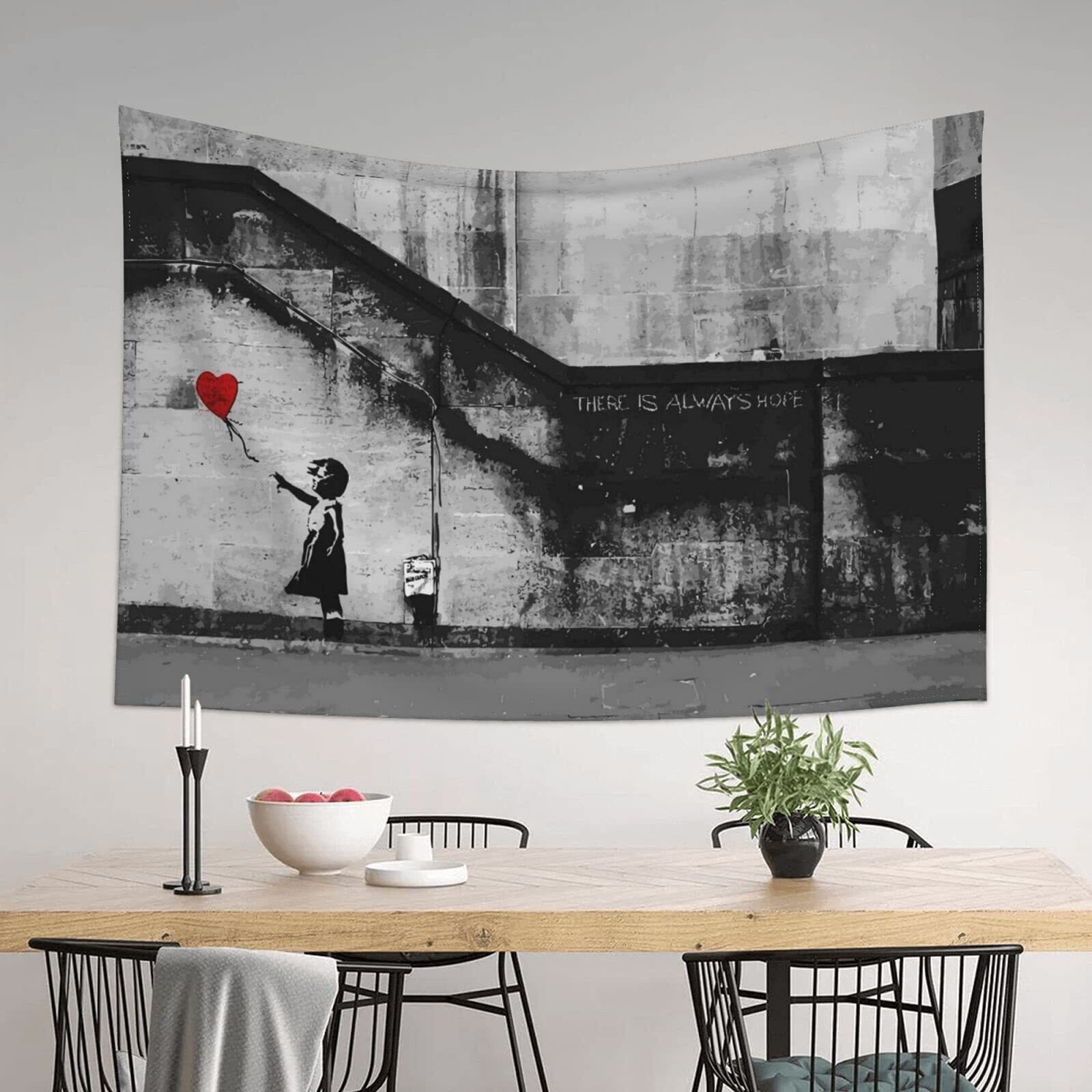 DiSAYoYoバンクシー Banksyタペストリー 少女 インテリア 壁掛け 壁飾り 家 アート リビングルーム ベッドルーム 部屋 飾り 装飾布 ホームデコレーション 多機能 リビング 窓 人気 おしゃれ | kki