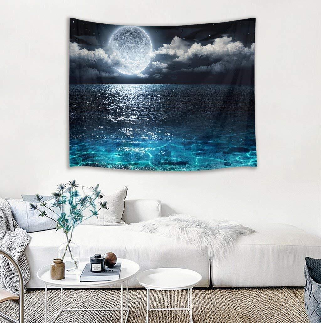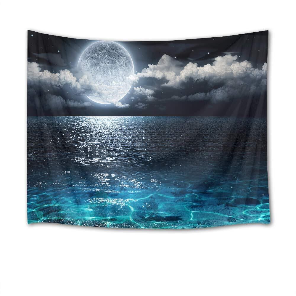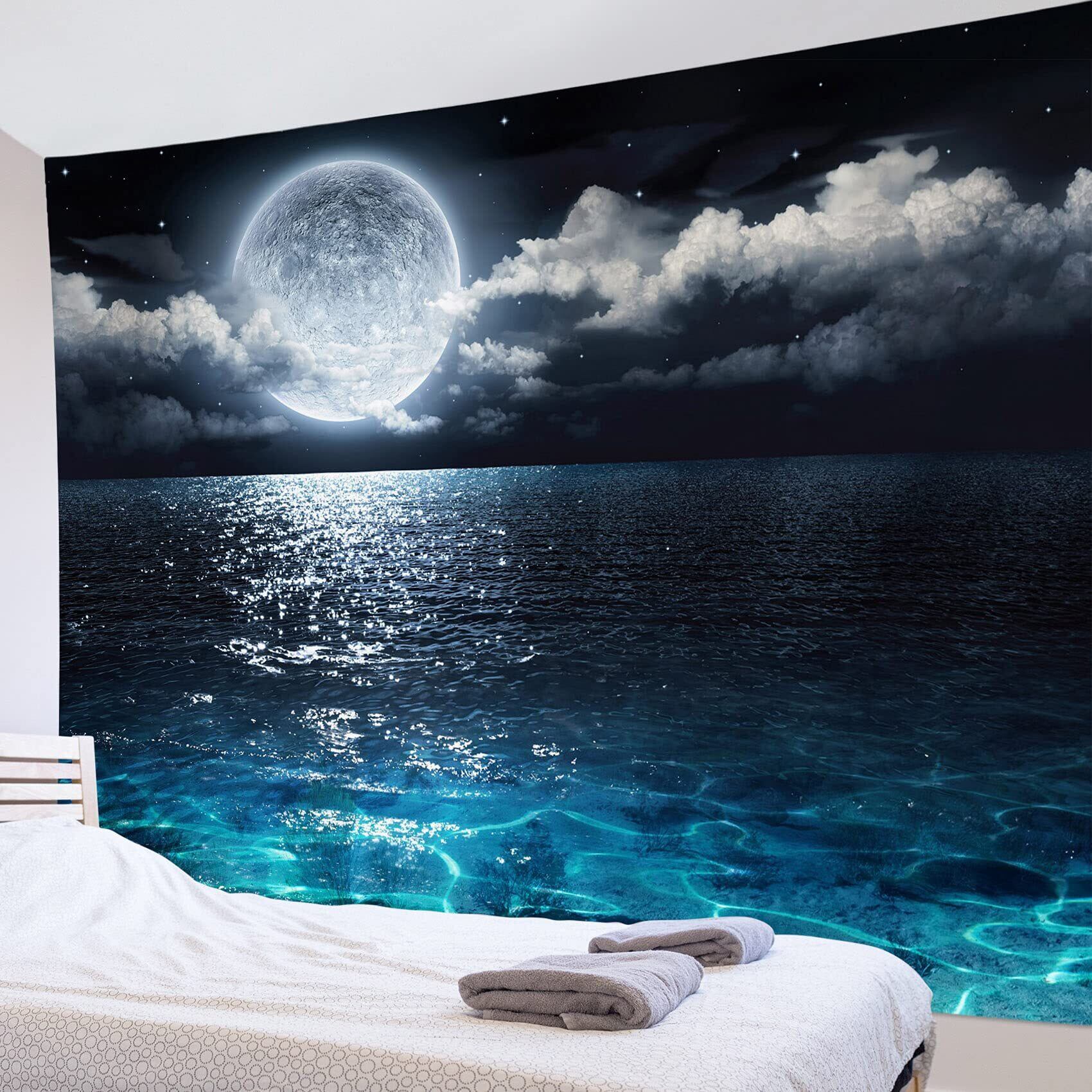 LB 夜景タペストリー 美しい満月の夜空と海 おしゃれな壁掛け インテリア ファブリック装飾用品 モダンなアート 多機能 模様替え 部屋 窓カーテン 個性ギフト 新居祝い 200x150cm | kki