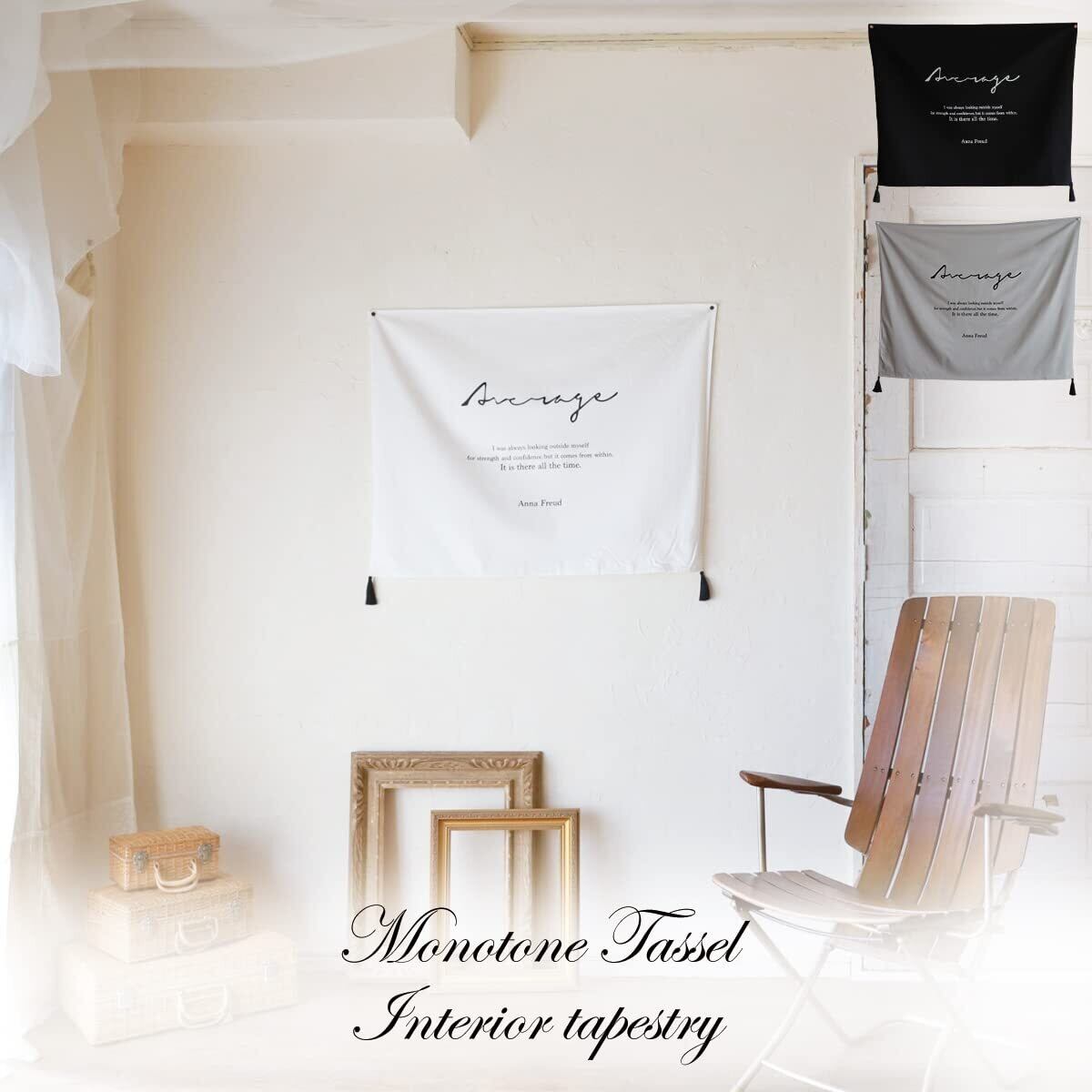 ND タペストリー おしゃれ 北欧 タッセル フリンジ テレワーク 背景 リモートワーク 背景布 カフェ風 シンプル モノトーン (グレー)