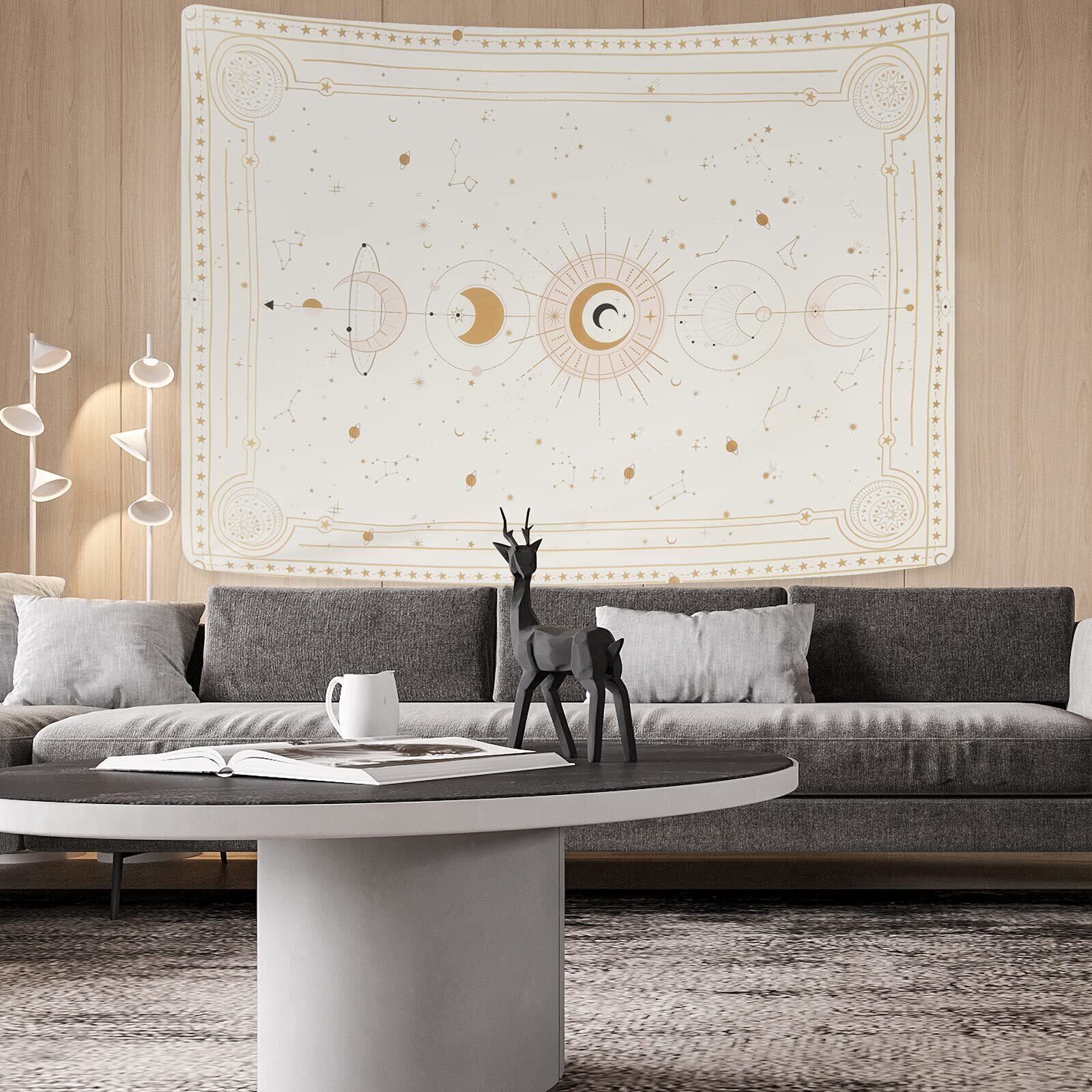 Shiny Flower 月タペストリー 月相壁布 北欧布ポスター 星座装飾布 大判 壁掛け 壁飾り 模様替え 装飾用品 インテリア 多機能 おしゃれ 部屋や窓の飾り リビングルーム ベッドルーム 個性プレゼント 白い 150*130cm | kki