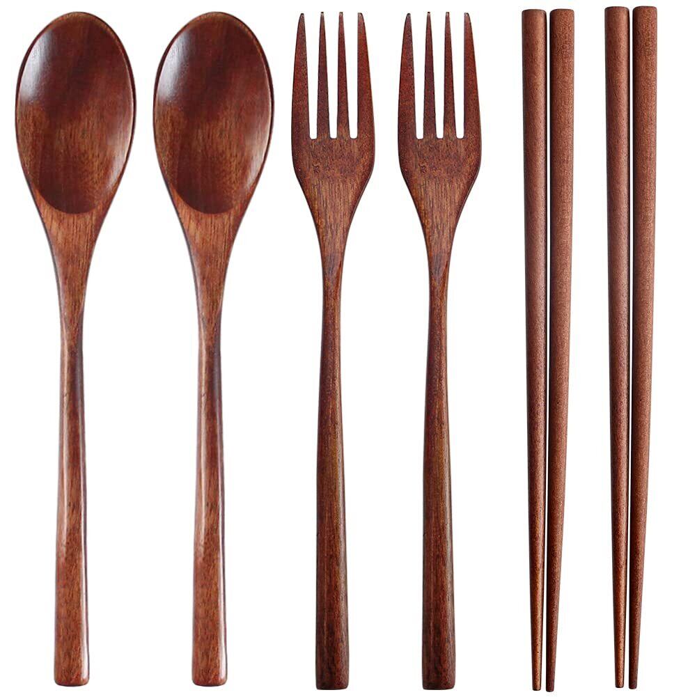 AOOSY 天然木製 6点セット (スプーン/フォーク/箸) 塊木掘り出し 接着剤不使用 天然漆塗り 弁当 サラダ カレー スープ 中華料理 食器セット