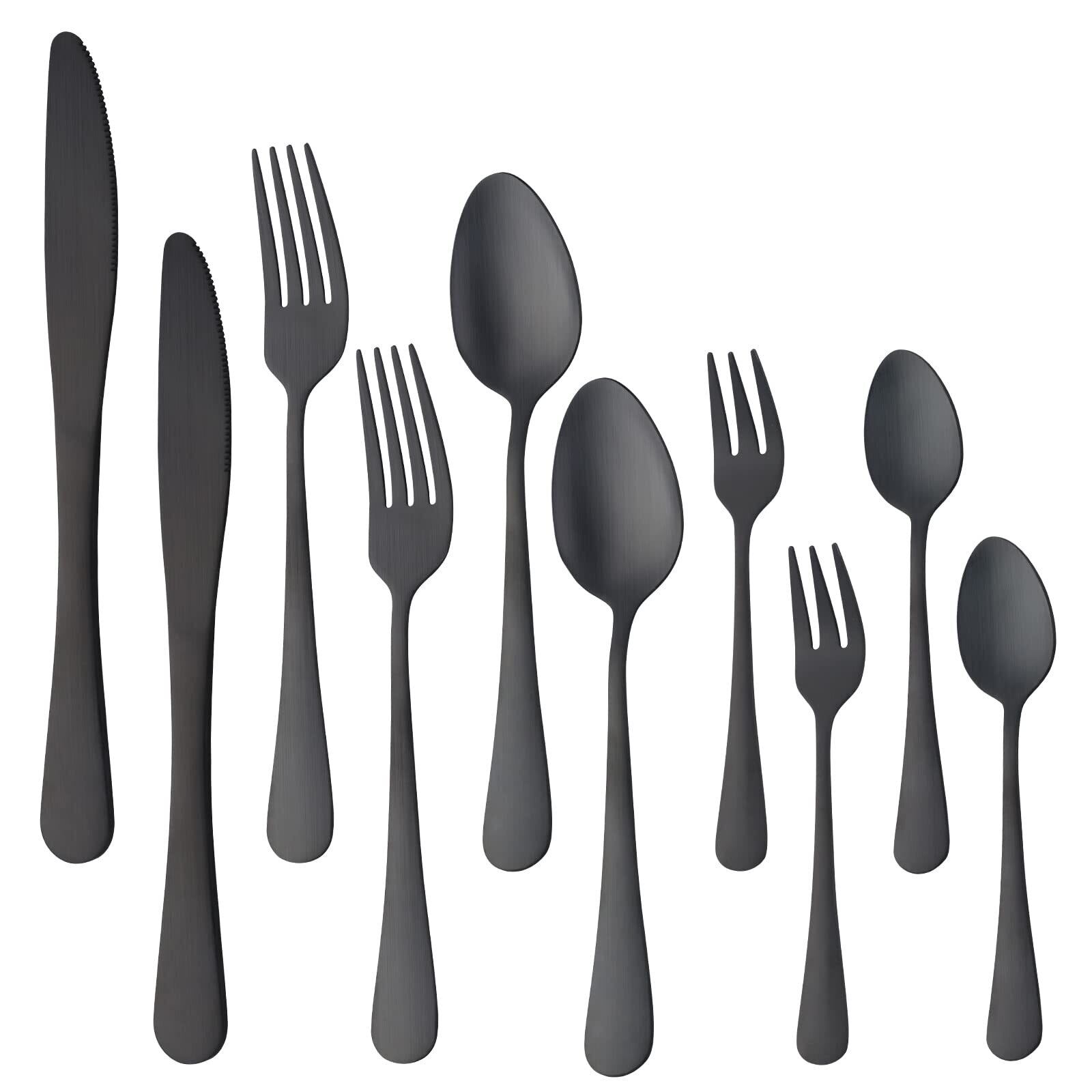 ディナーカトラリーセット 10本 2人用 18-0ステンレス つや消し サテン仕上げ 程よいサイズ 使いやすい形状 4色選択可能 ブラック
