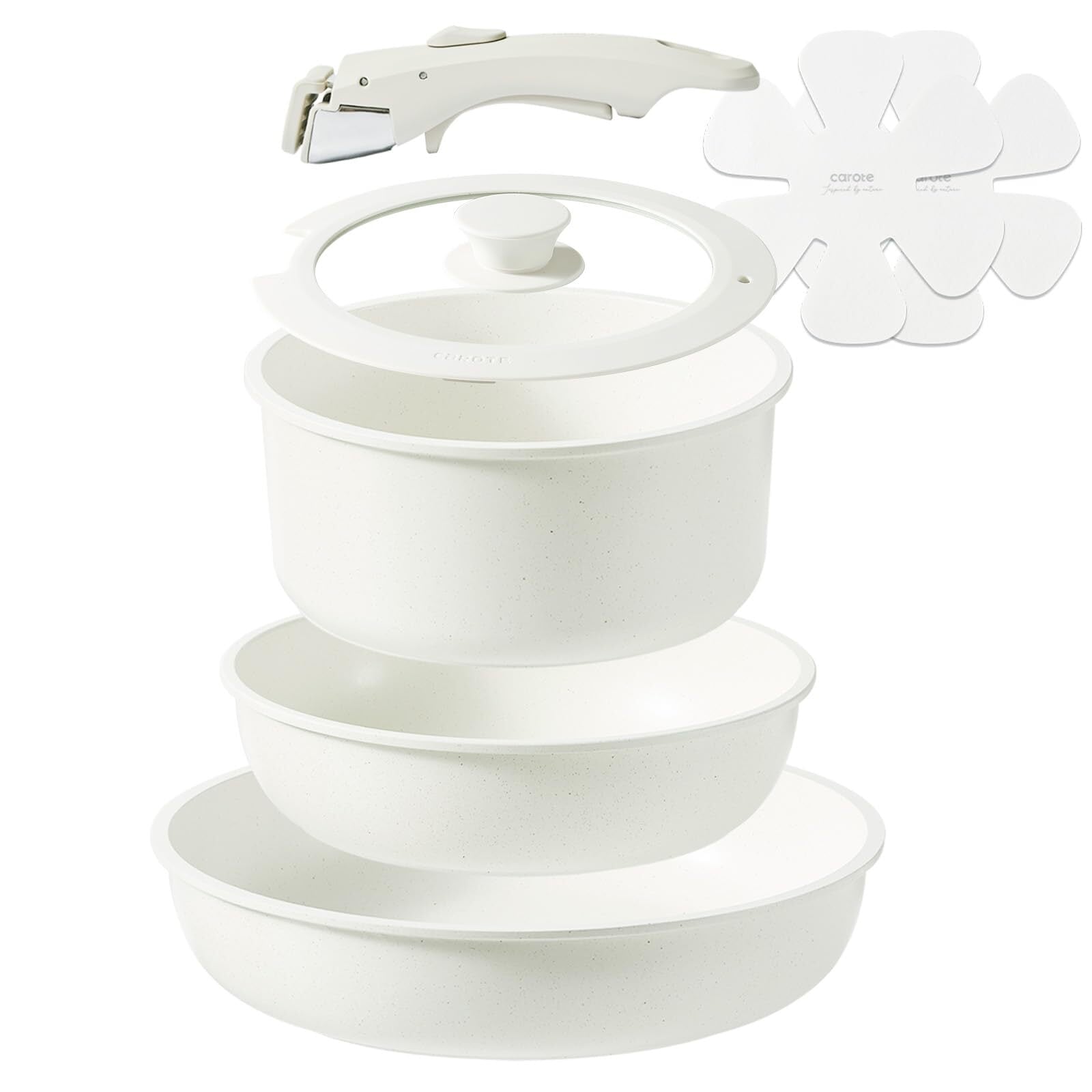 CAROTE カローテ フライパン セット 5点+2点収納マット IH·ガス火対応 PFOA PFOS フリー 5層構造 軽量 取っ手のとれる フライパン 20cm 26cm 鍋18cm マーブルコート 鍋セット スルスルすべる くっつきにくい 新生活応援 一人暮らし お手入れが簡単 オーブン対応 一年 ベージュ 「アイスクリーム」シリーズ | kki