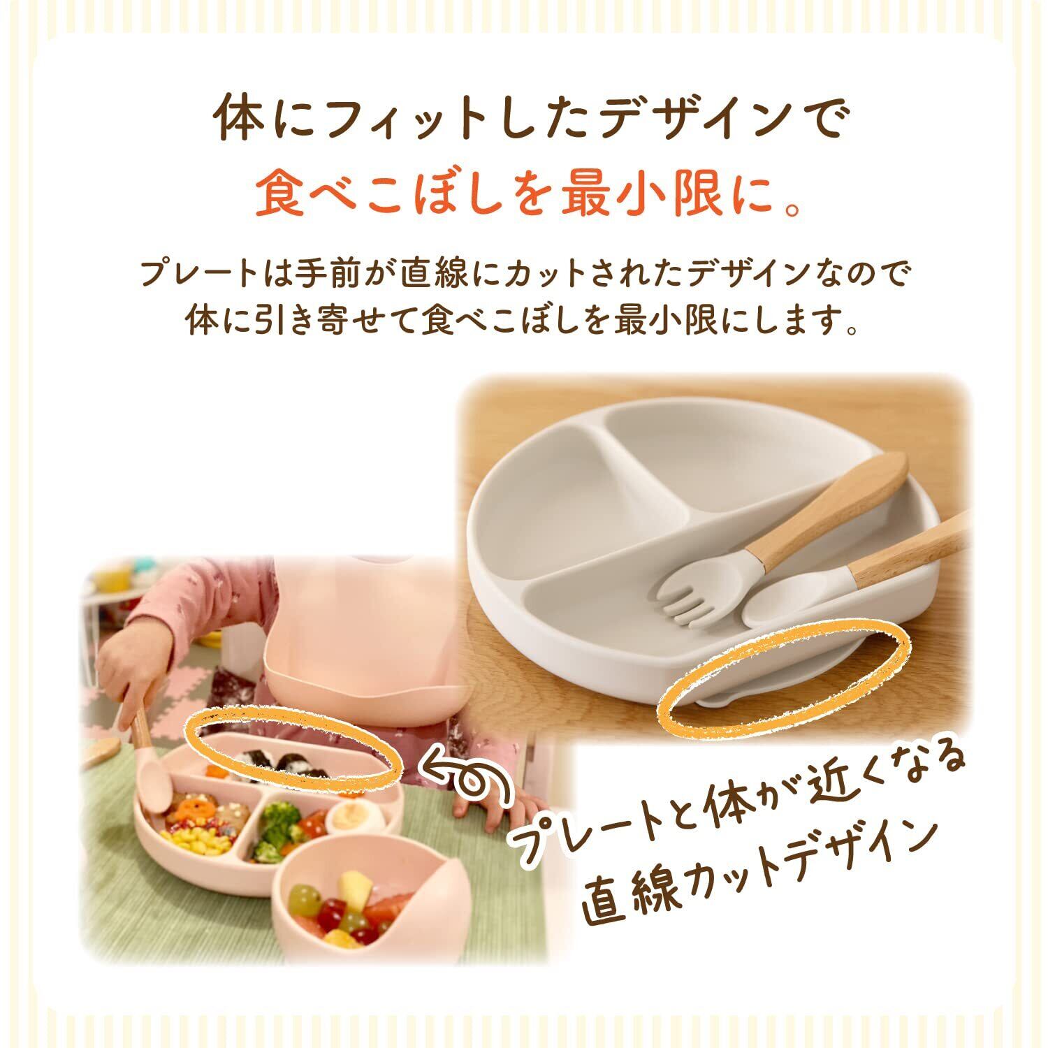 BabyGooⓇ ベビー食器 ひっくり返らない 赤ちゃん 離乳食 吸盤 すくいやすい シリコン くっつく お皿 赤ちゃん 人気 出産祝い 食品衛生検査済み (シェルピンク, 4点セット)