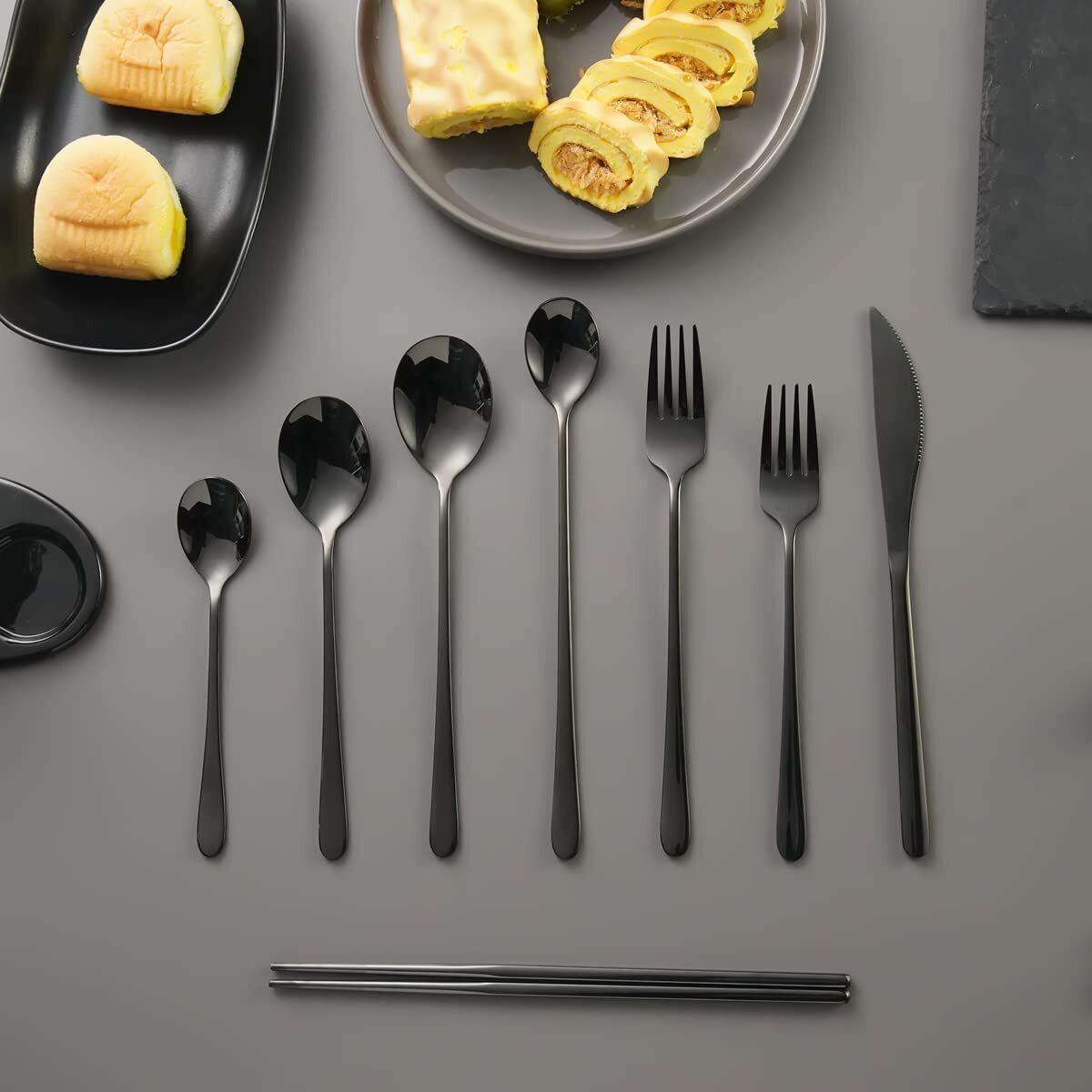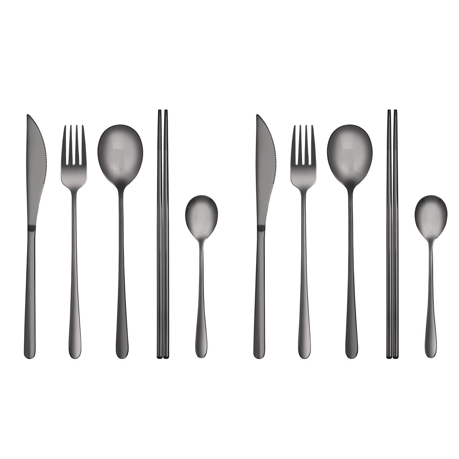 カトラリーセット 箸 ナイフ フォーク スプーン 10本セット 2名用 ディナーカトラリーセット 18-8ステンレス鋼 鏡面仕上げ 食洗器対応 多色有り (ブラック)…