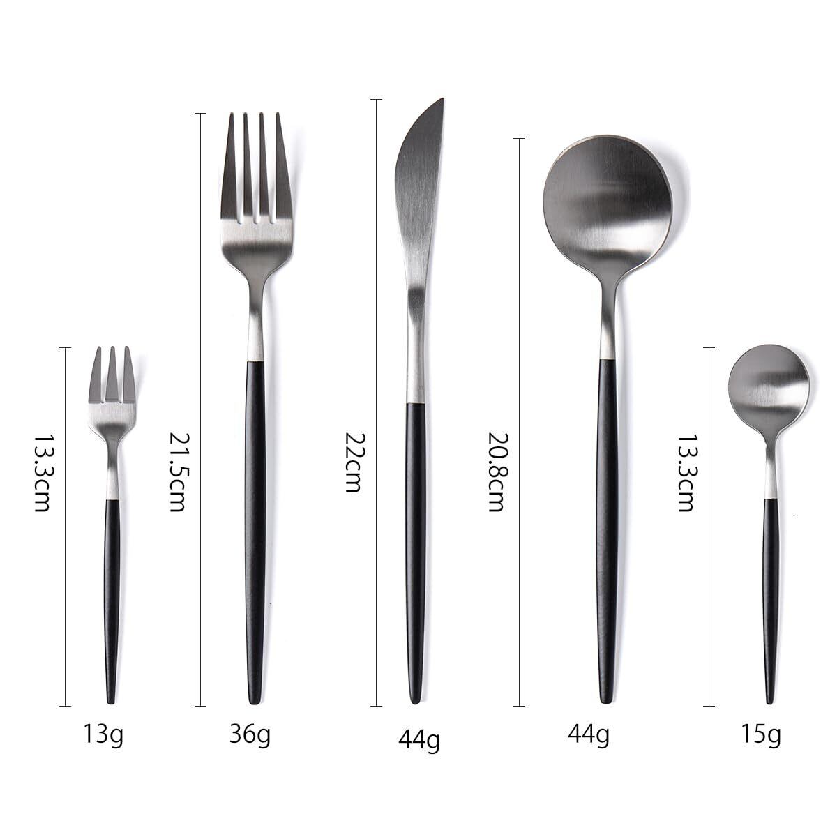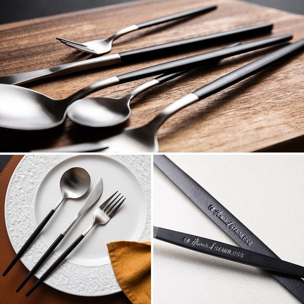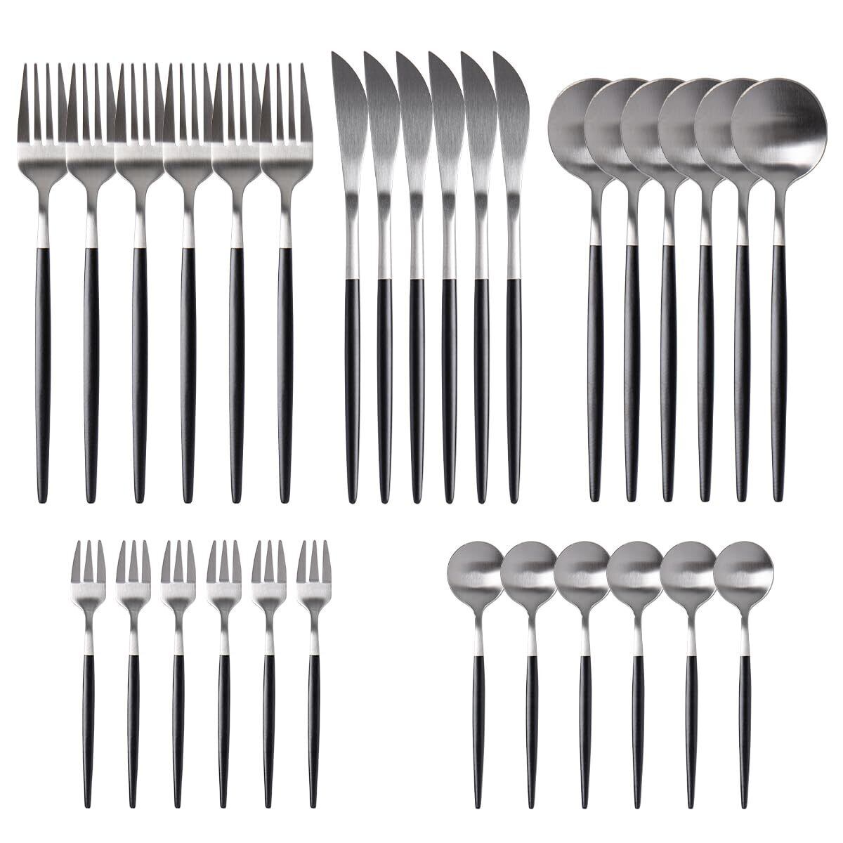 Hive Mind 北欧風30本セット カトラリーアソートセット 6人用 スプーン フォーク ナイフ レストラン用 家庭用 食洗機対応 結婚祝い プレゼント (ブラックシルバー)
