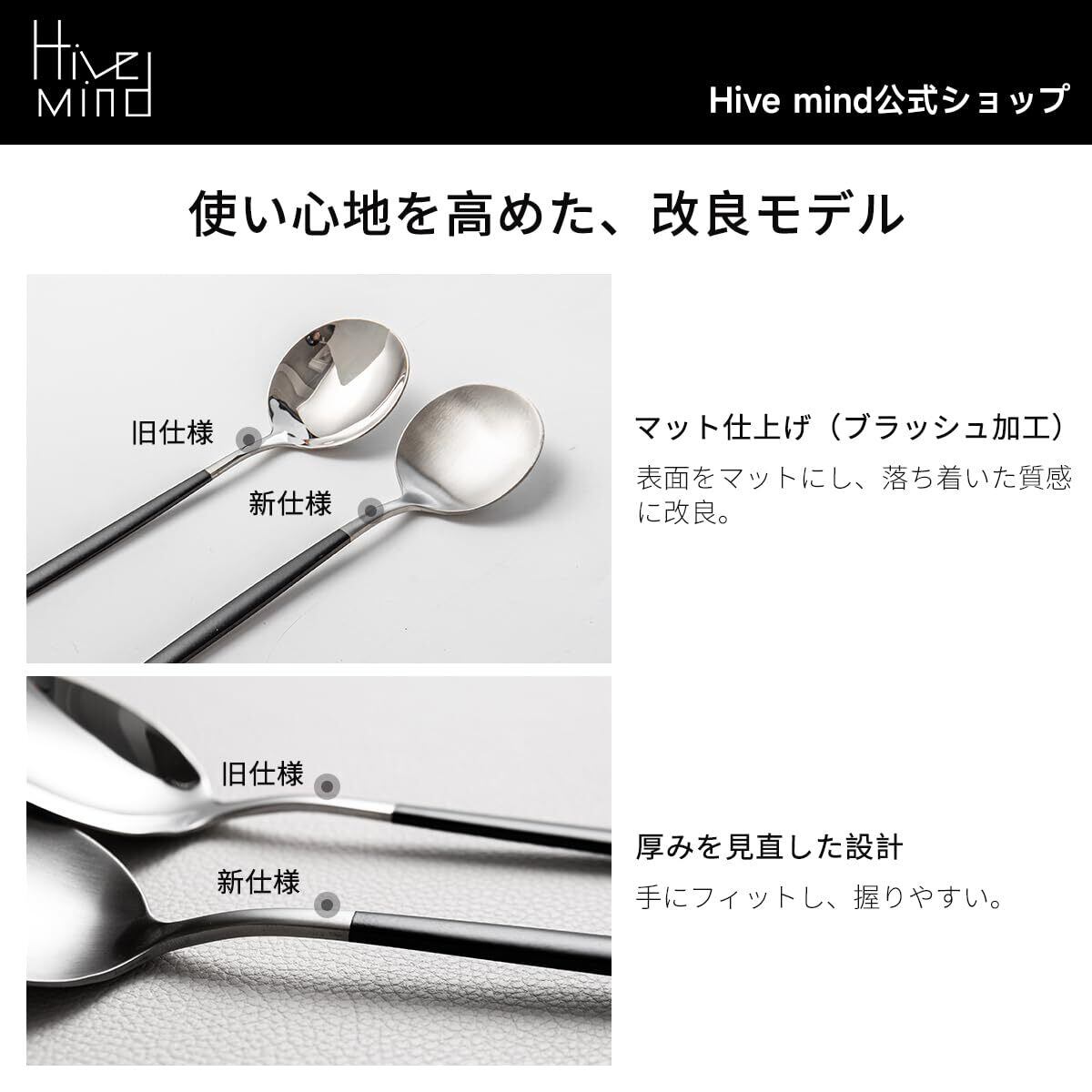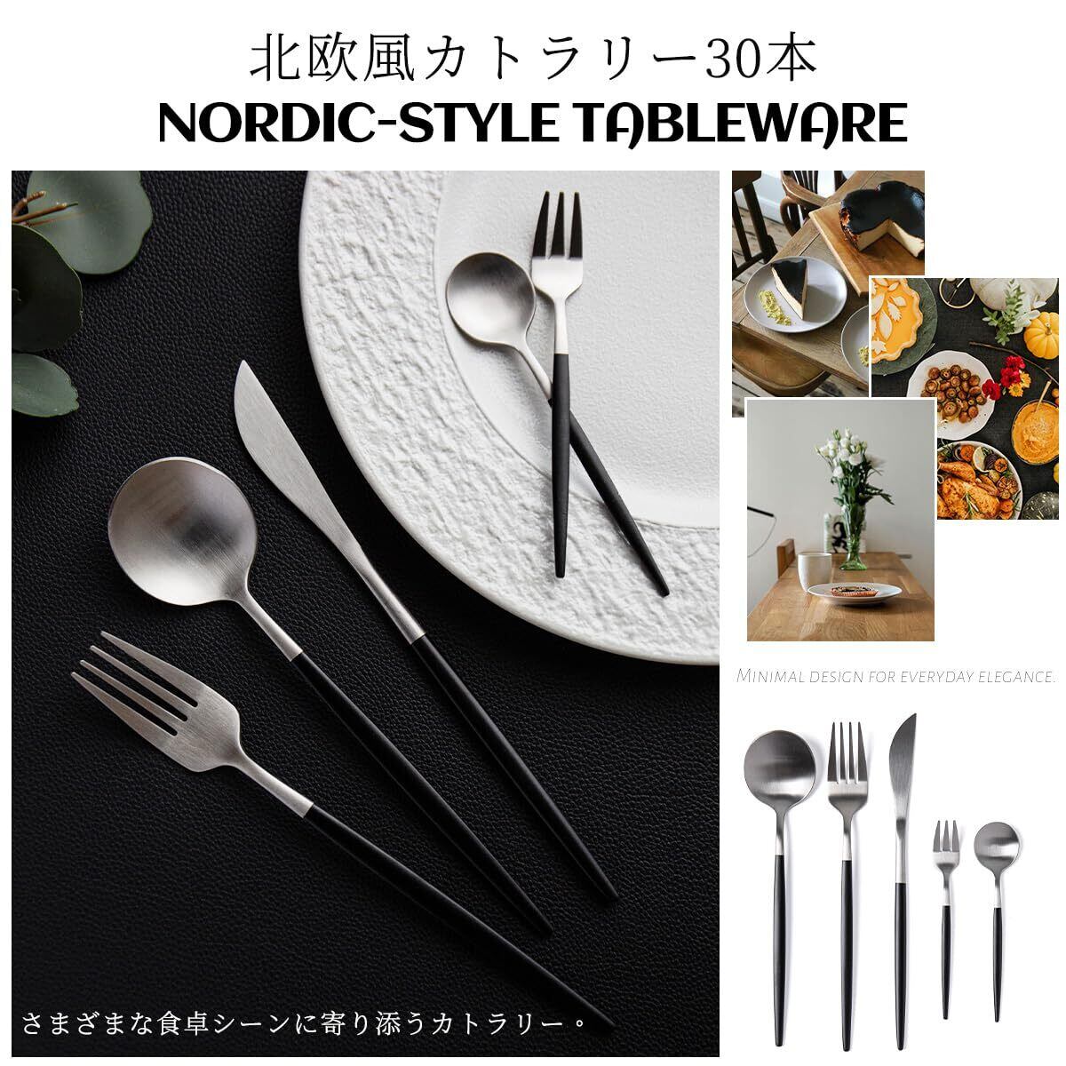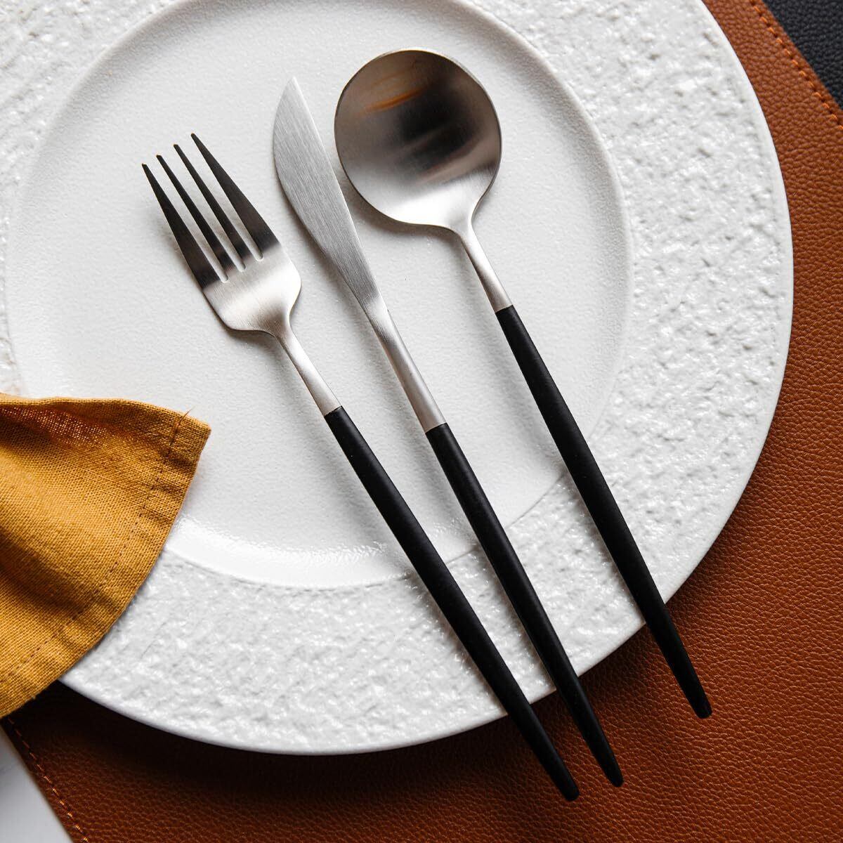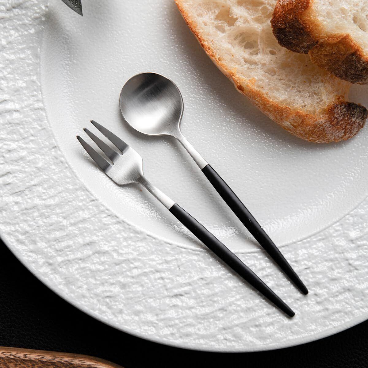 Hive Mind 北欧風30本セット カトラリーアソートセット 6人用 スプーン フォーク ナイフ レストラン用 家庭用 食洗機対応 結婚祝い プレゼント (ブラックシルバー)