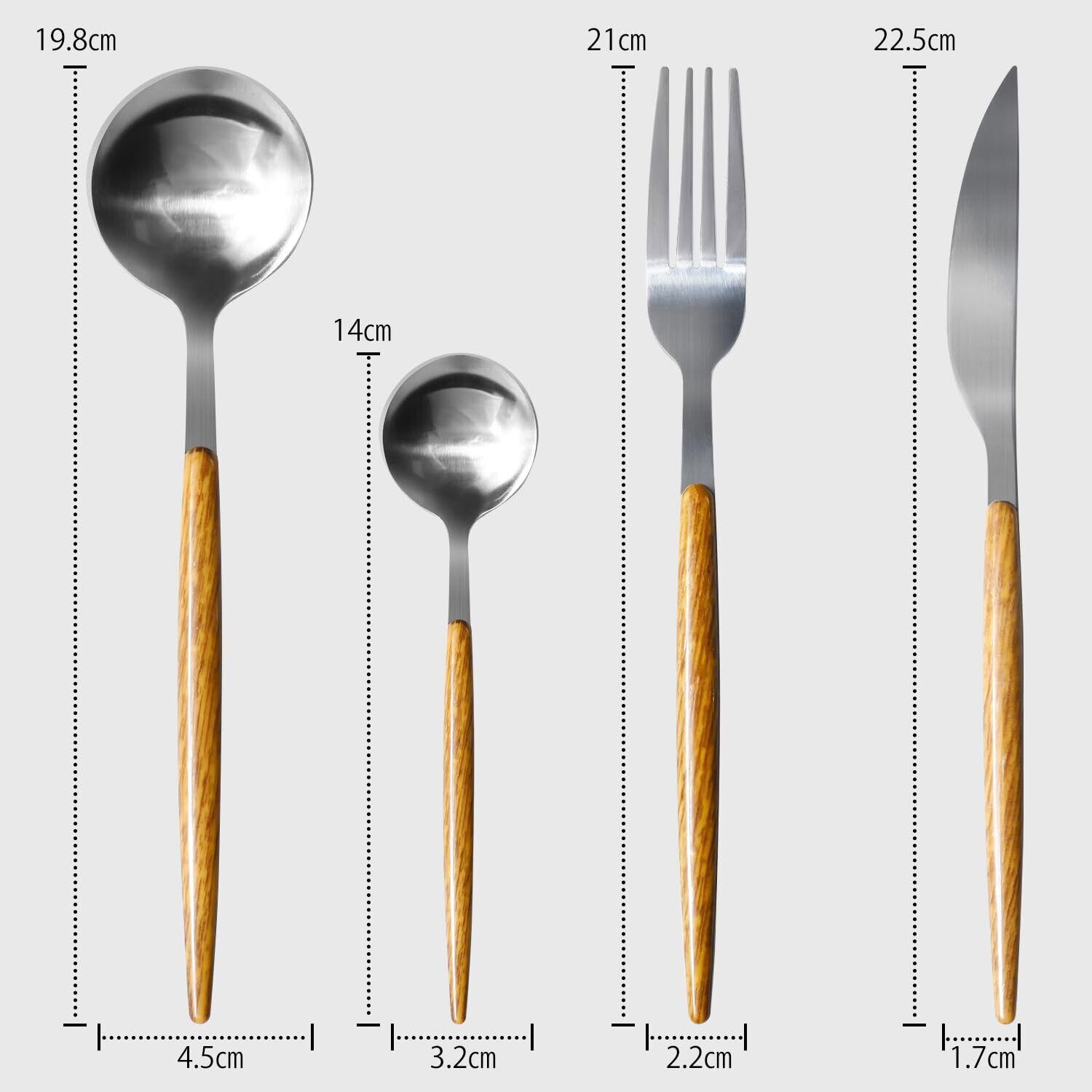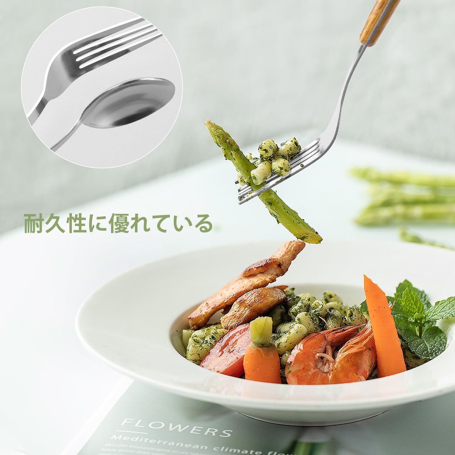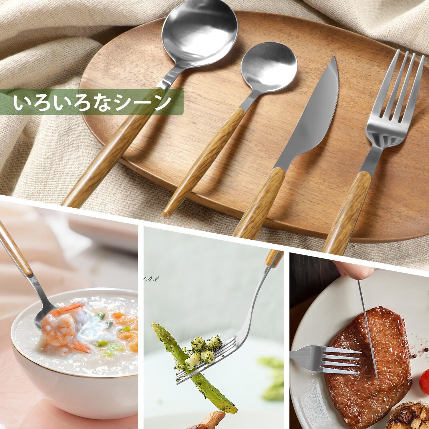 16本 カトラリーセットスプーン フォーク セット 4人用 ステンレス模造木製ハンドル キャンプ おしゃれ 衛生 丈夫 鏡面仕上げ 食器洗い機対応 アウトドア レストラン用 家庭用