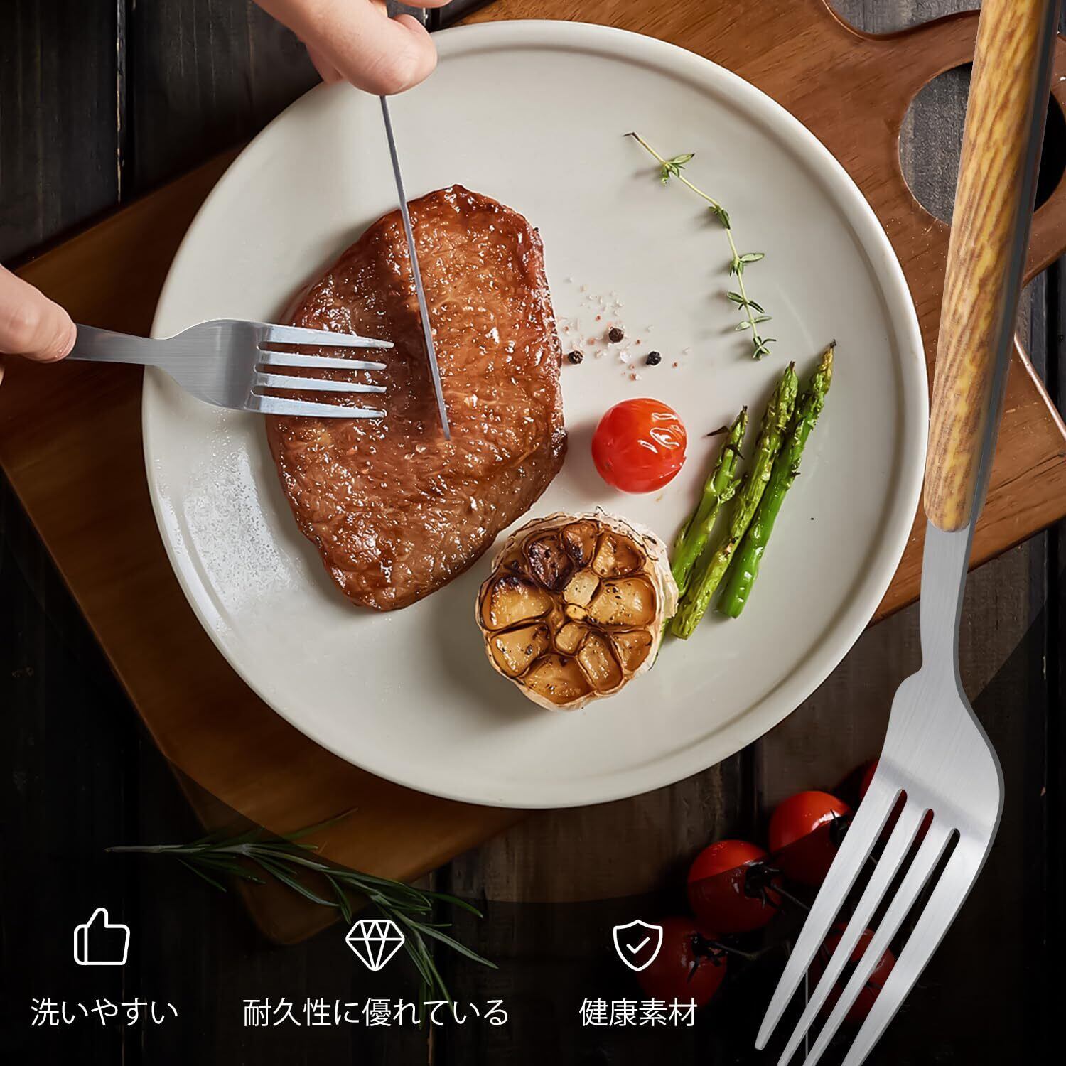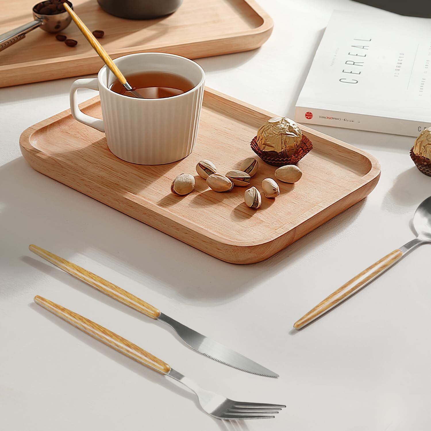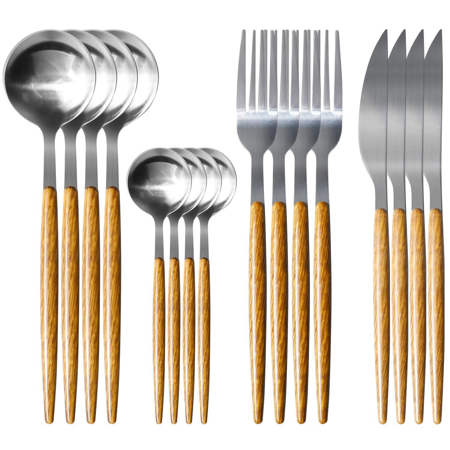 16本 カトラリーセットスプーン フォーク セット 4人用 ステンレス模造木製ハンドル キャンプ おしゃれ 衛生 丈夫 鏡面仕上げ 食器洗い機対応 アウトドア レストラン用 家庭用