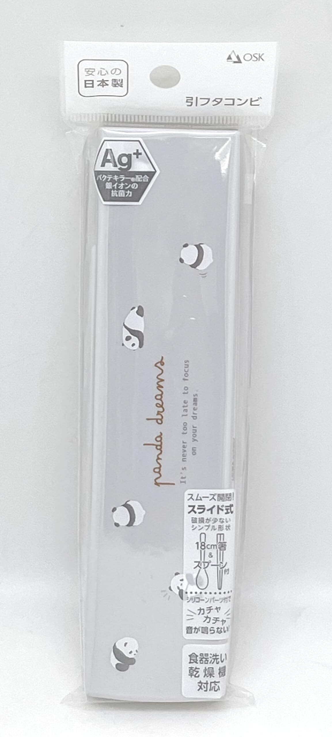 OSK(オーエスケー) カトラリーセット ぱんだ 引きフタコンビ 箸 18cm スプーン 日本製 食洗機対応 抗菌 かわいい おしゃれ 男女兼用 大人用 子供用 学生 CT-27