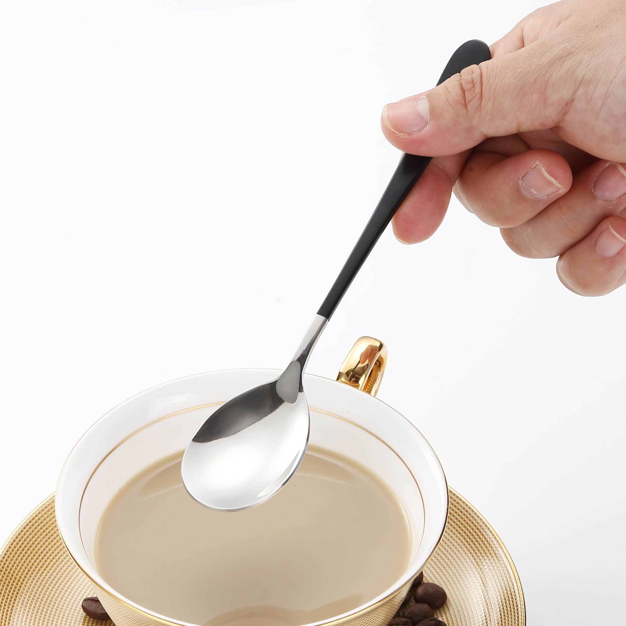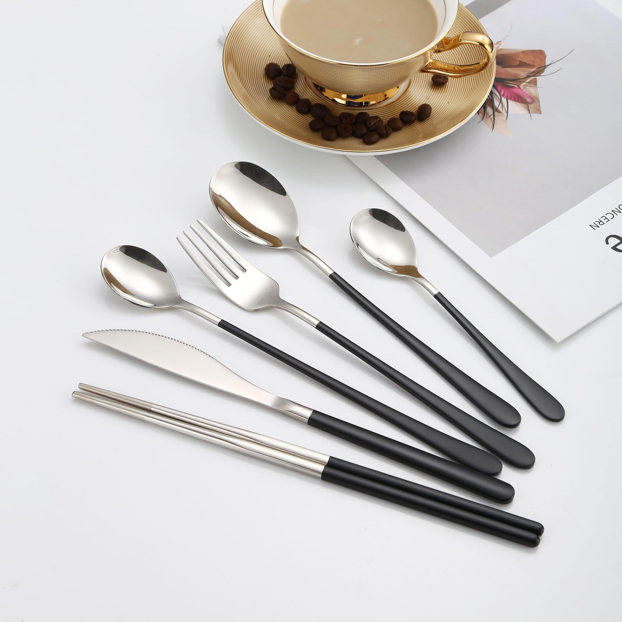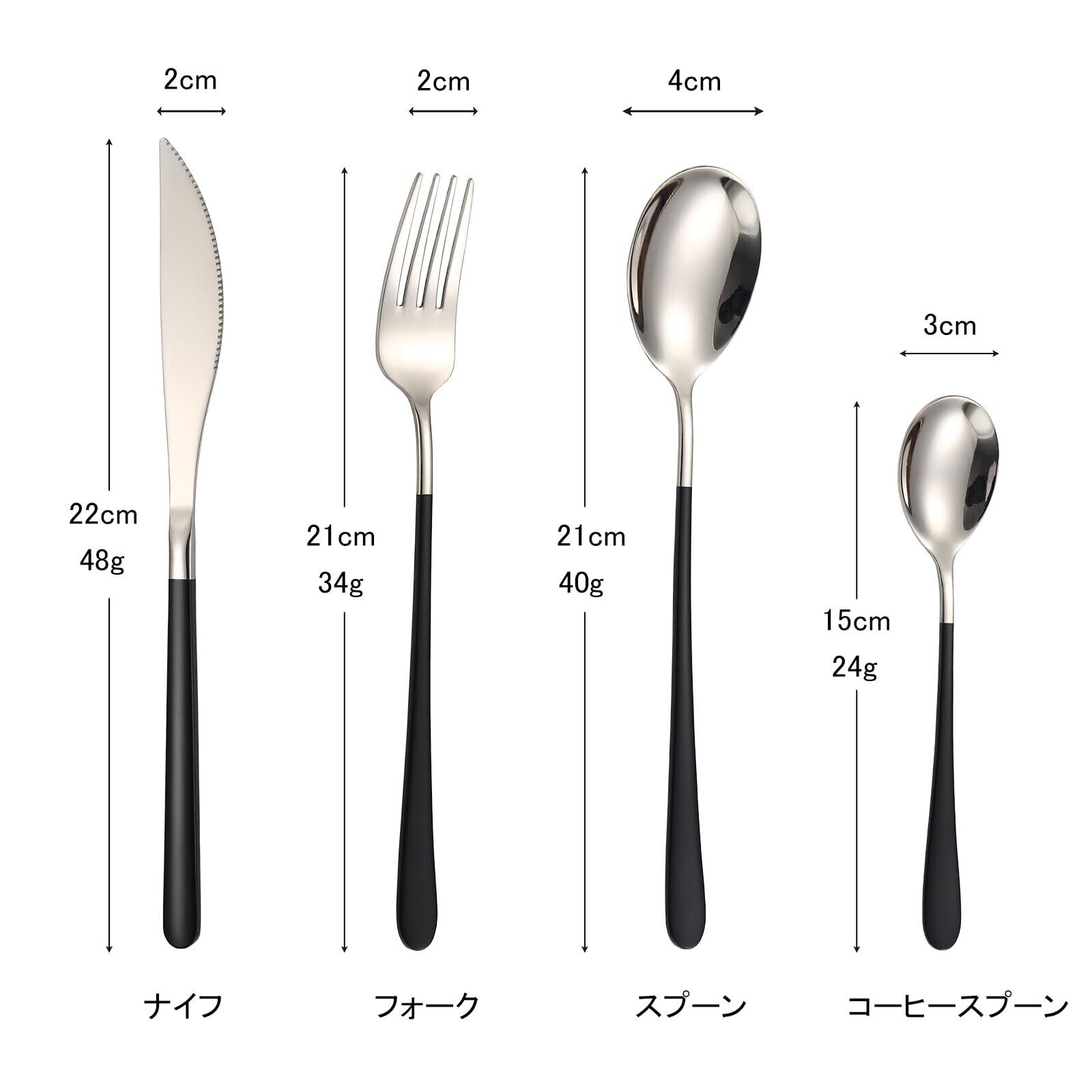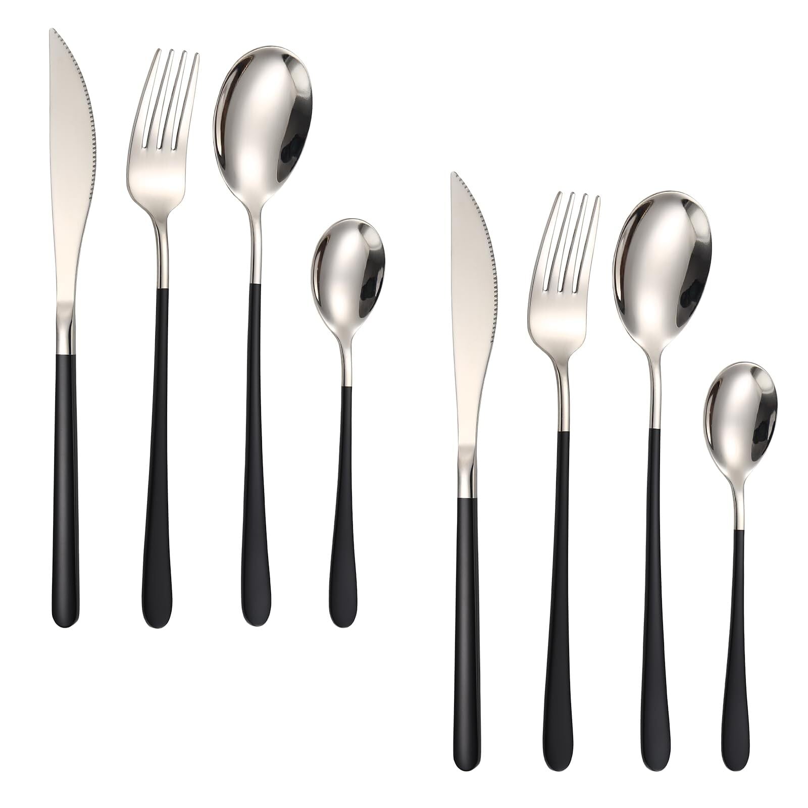 カトラリーセット ナイフ フォーク スプーン セット 8本 2人用 18-8ステンレス 継ぎ目のない一体型 柄が長い 普段使い (シルバー/ブラック)