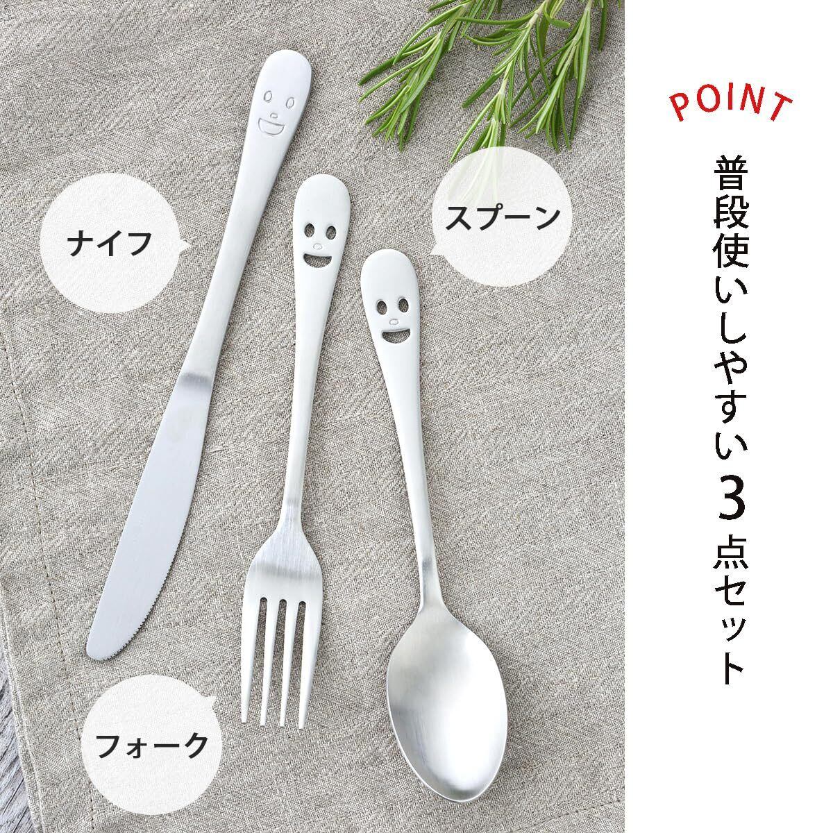 下村企販 ディナーカトラリーセット 【日本製】 ステンレス 食洗機対応 ナイフ スプーン フォーク 3点セット 切りやすい ギザ刃仕様 かわいいデザイン ニコシリーズ 燕三条 44937
