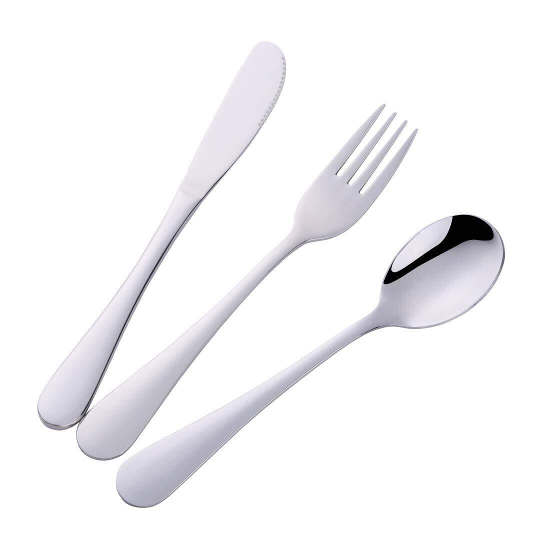 子供用 カトラリーセット スプーン フォーク ナイフ 3点セット シンプル 18-8ステンレス製 鏡面仕上げ 食洗機対応 キッズ 小学生 手の小さい大人 機内用 カトラリー (シルバー)