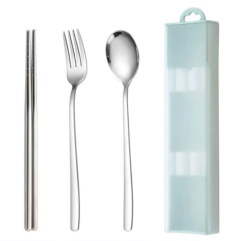 カトラリー 箸 スプーン フォーク 収納ケース 4点セット 18-8ステンレス製 弁当用 食器セット大人 学生用 カトラリー セット キャンプ アウトドア用 コンビセット 携帯便利 通勤 通学 プレゼント グリーン | kki