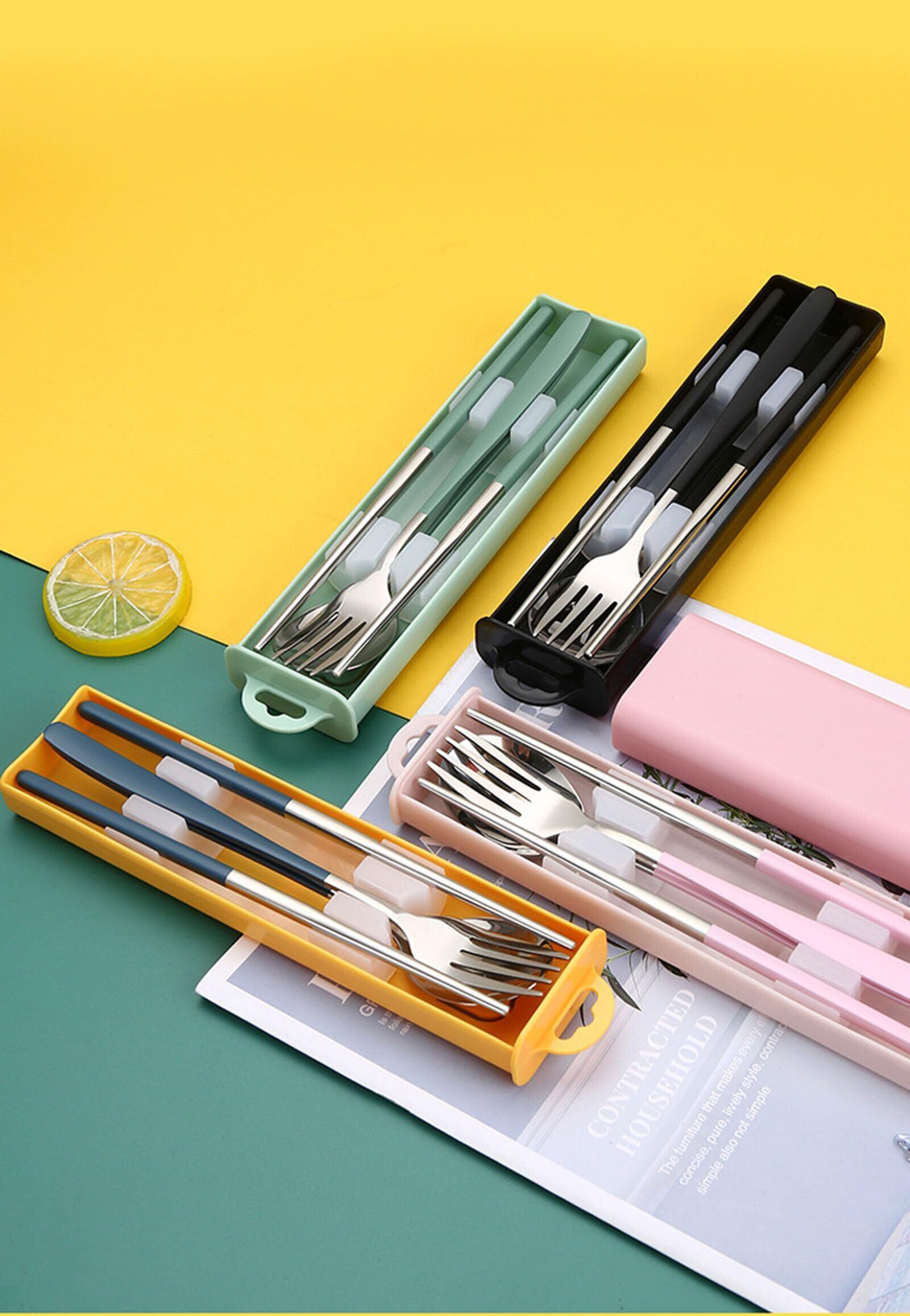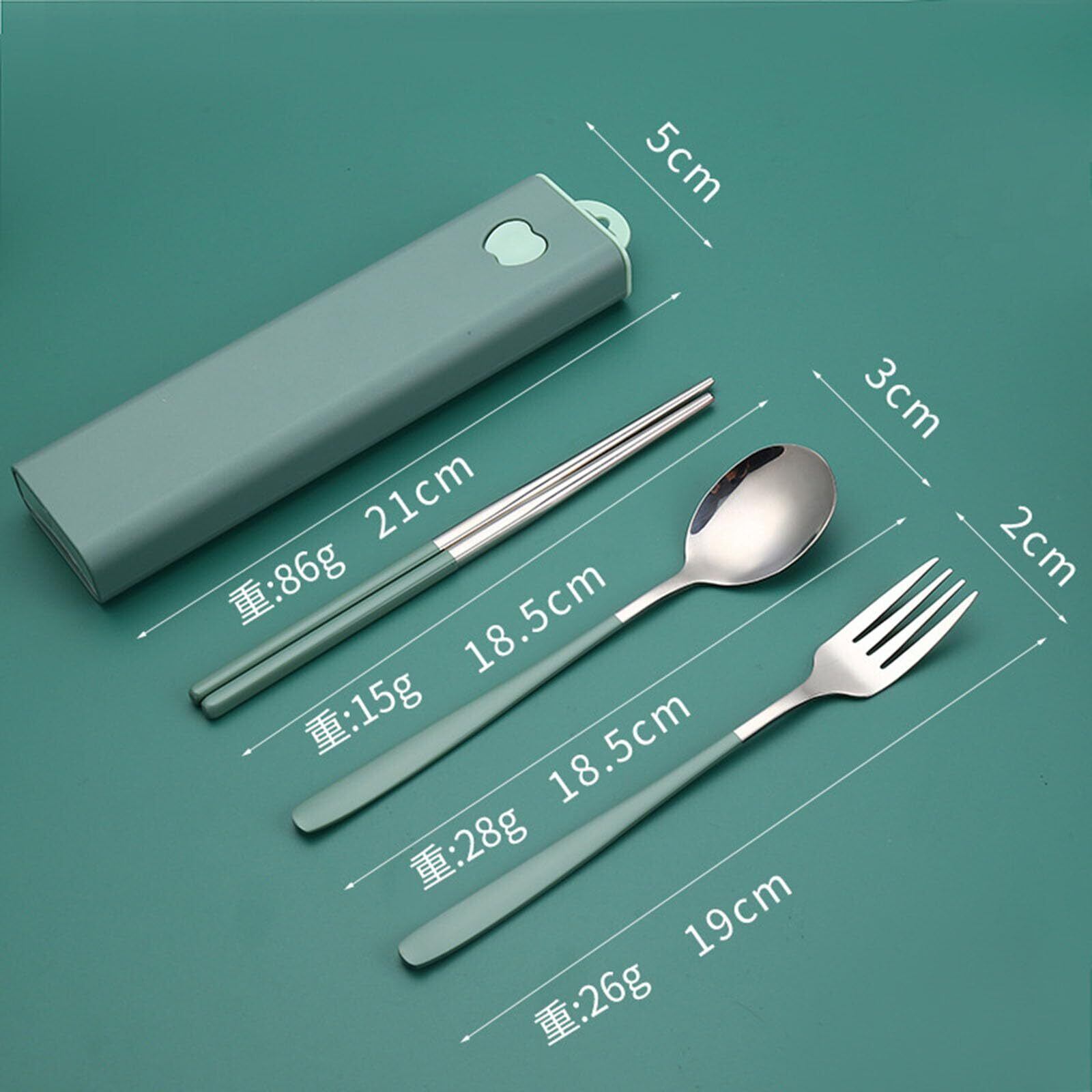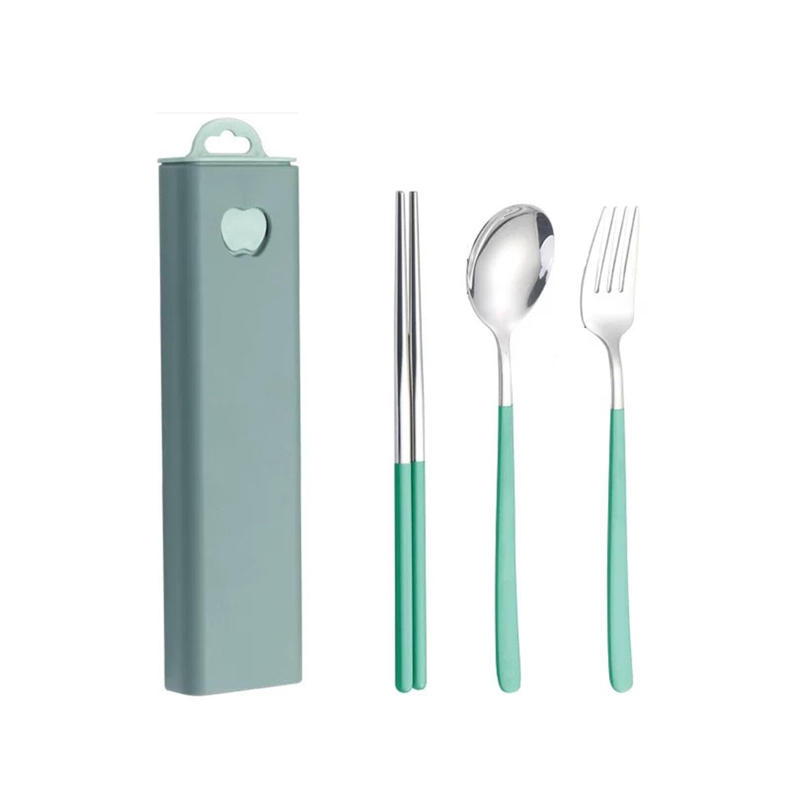 カトラリーセット ステンレス鋼 箸 フォーク スプーン 3点セット ケース付き コンビセット アウトドア 携帯食器セット 衛生 学生 大人用 食器セット ランチ 通勤 通学 弁当箱用 キャンプ用 携帯便利(グリーン-シルバー) | kki