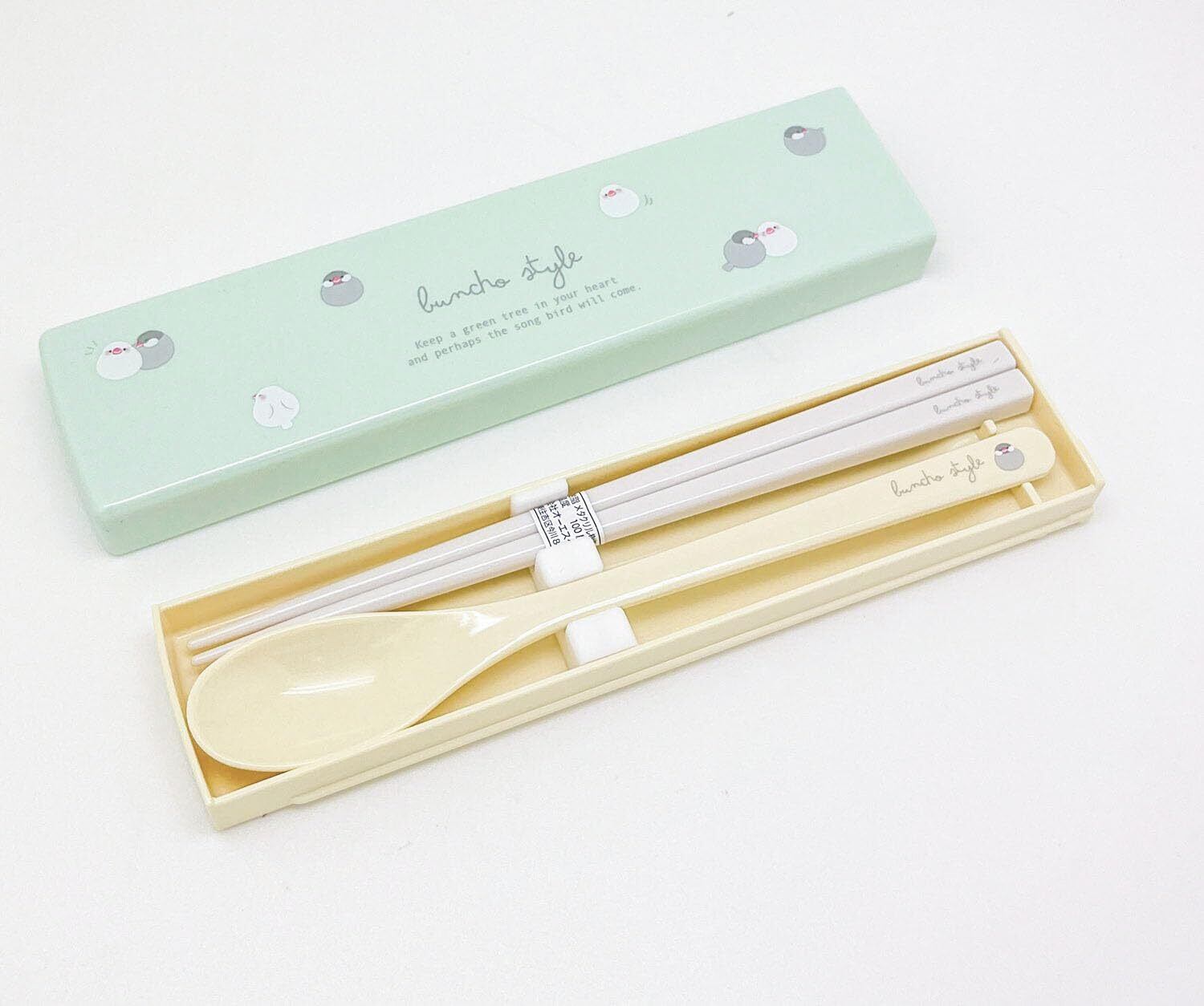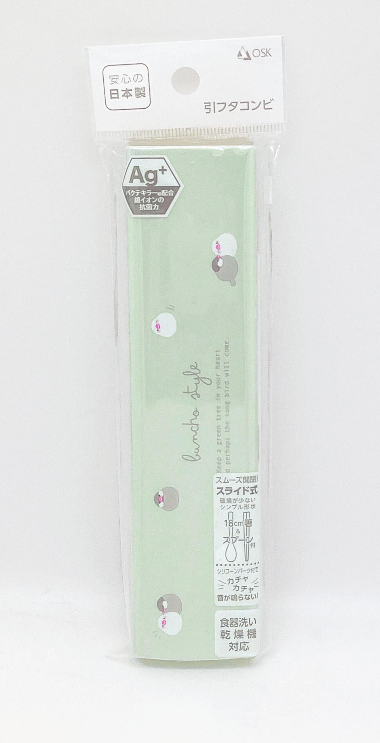 OSK(オーエスケー) カトラリーセット 文鳥 引きフタコンビ 箸 18cm スプーン 日本製 食洗機対応 抗菌 かわいい おしゃれ 男女兼用 大人用 子供用 学生 CT-27
