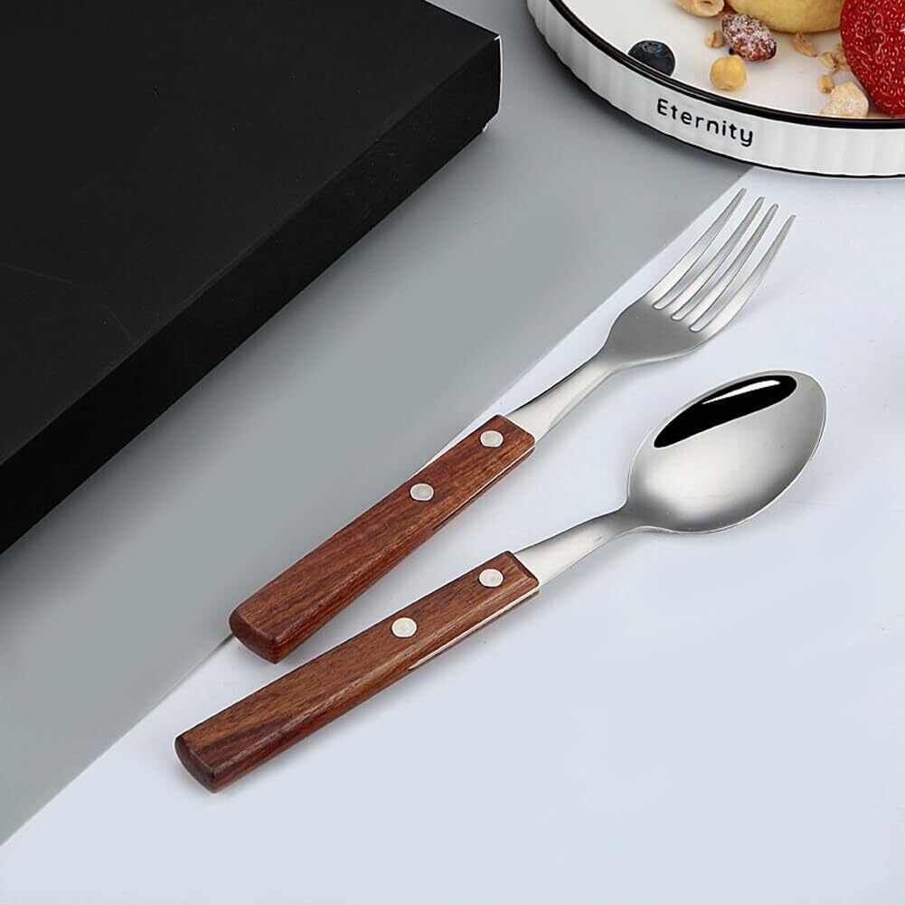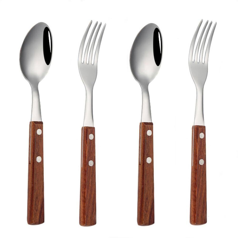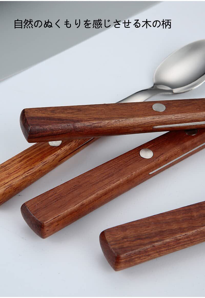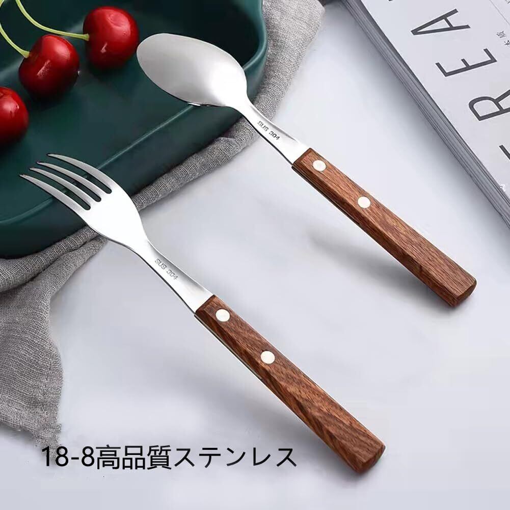 スプーン フォークセット 木柄 18-8ステンレス 4点セット スープスプーン ディナーフォークセット パスタフォーク カトラリー おしゃれ