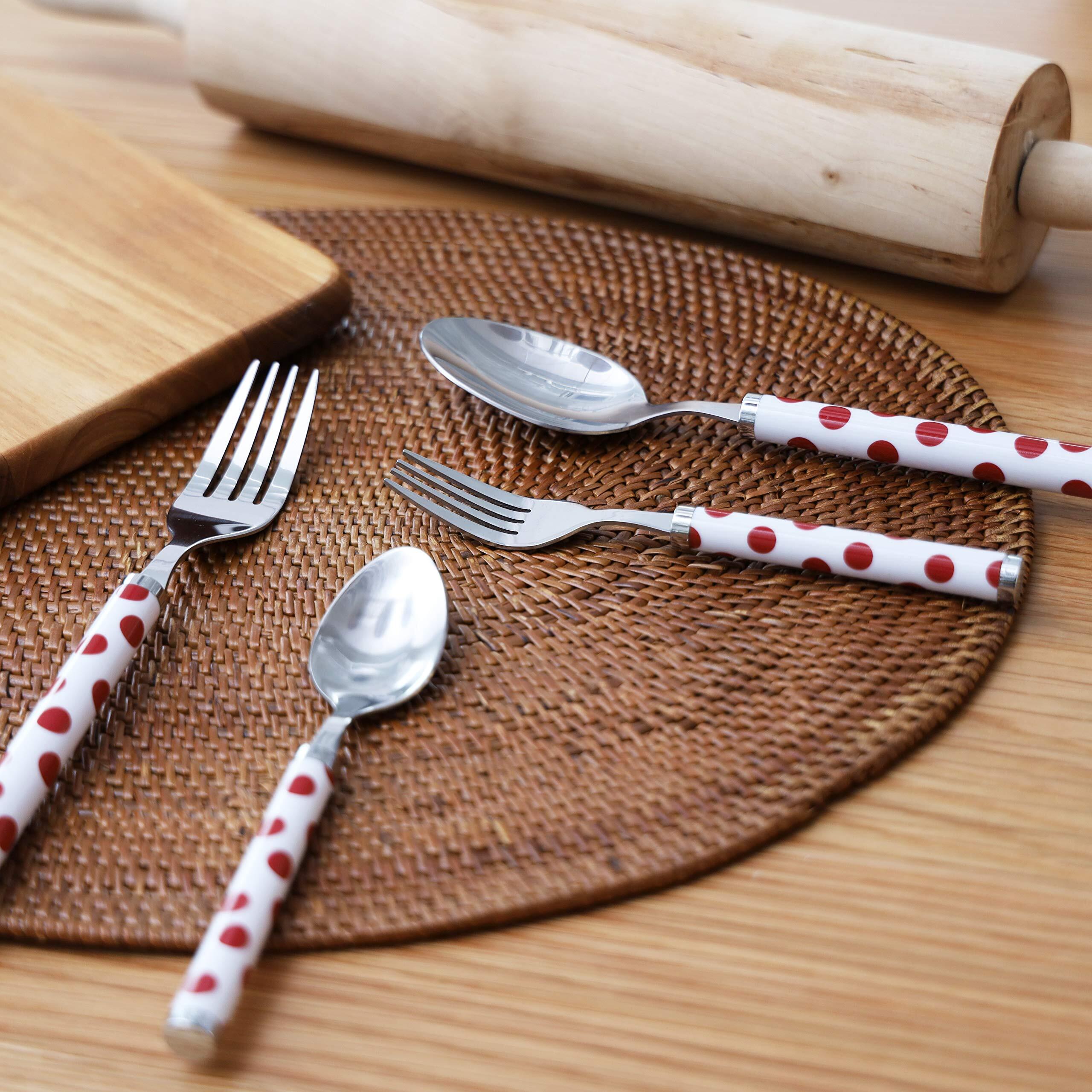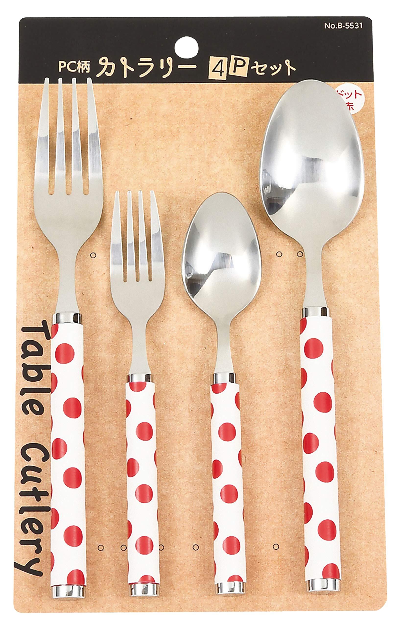 パール金属 カトラリーセット 赤 スプーンM/ 19.5cm、フォークM/15.5cm・L/20cm プラスチック柄カトラリー4本セット ドット B-5531