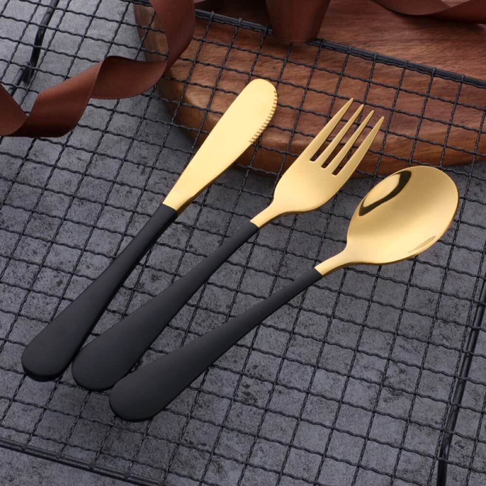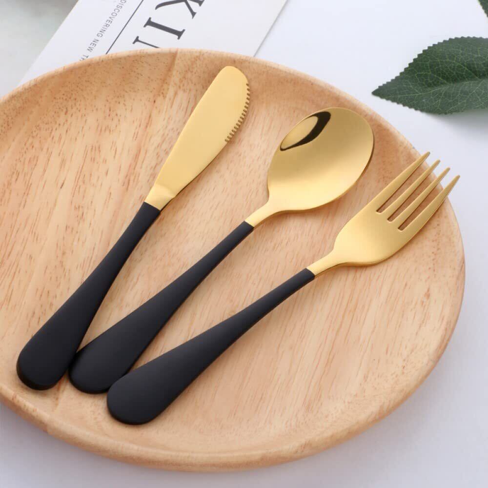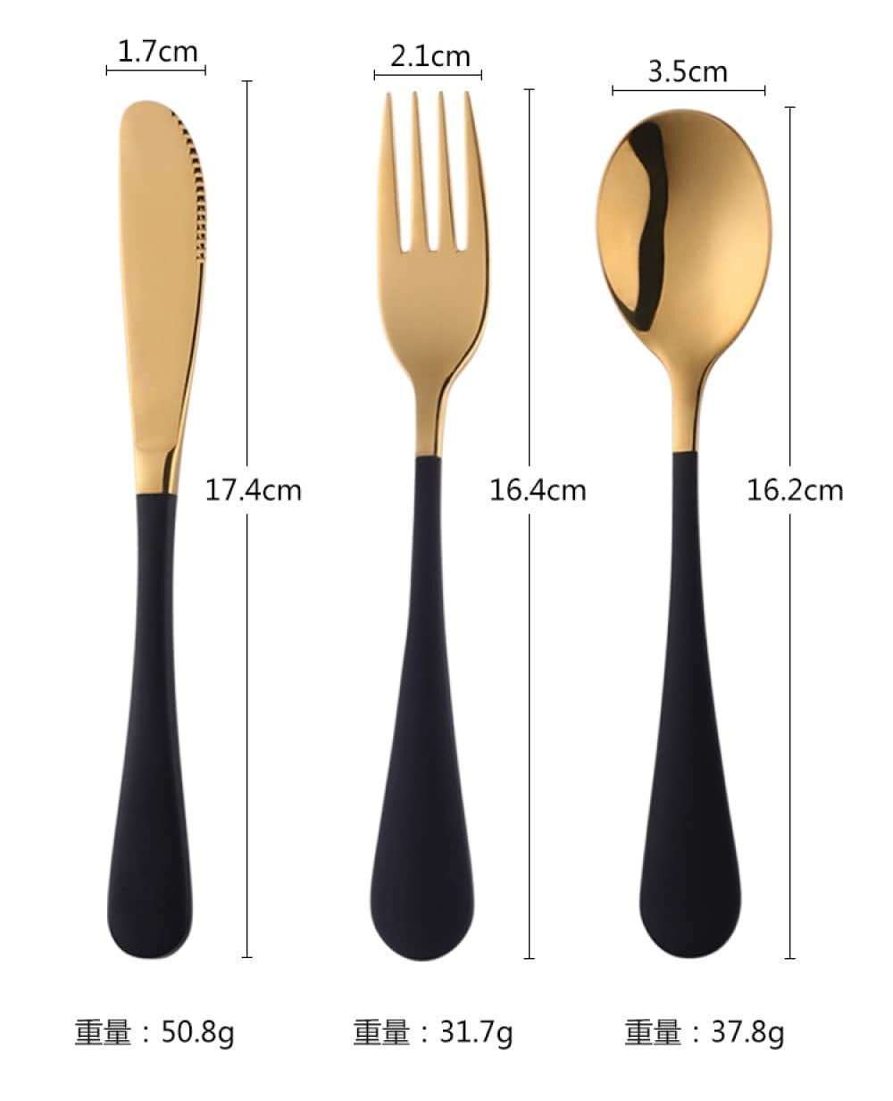 Buyer Star 子供用 ステンレス カトラリーセット ナイフ フォーク スプーン 3点セット キッズ食器 可愛い チタン仕上げ ブラックゴールド … …