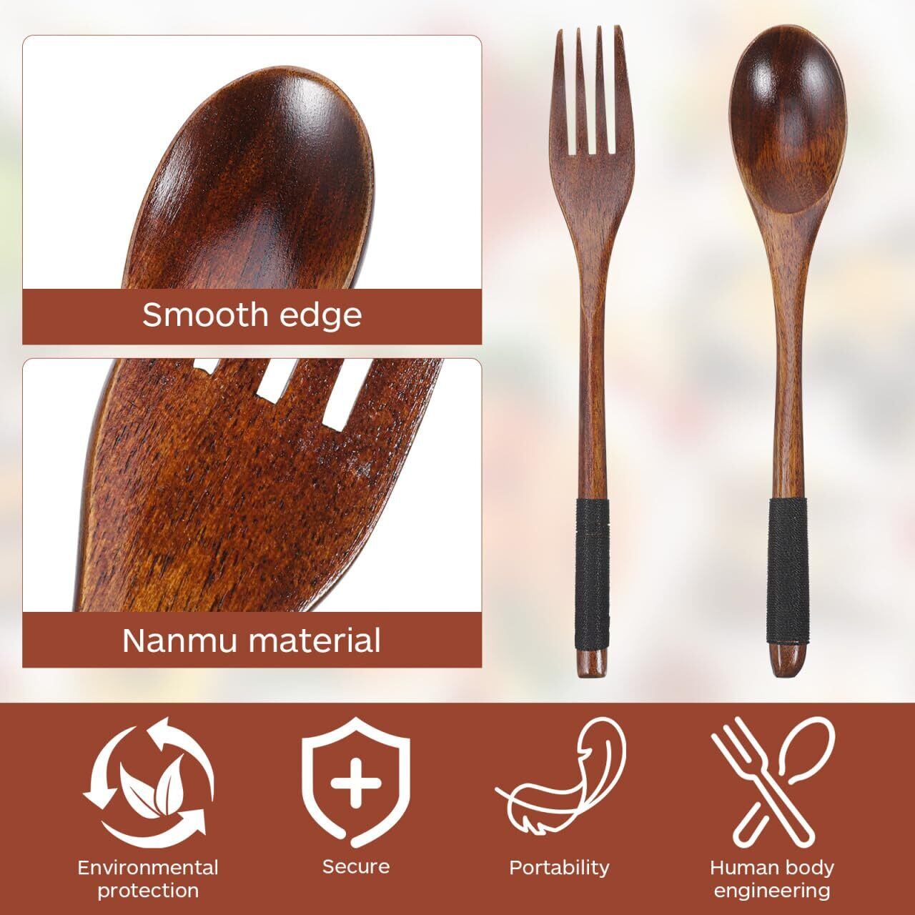 OUNONA 木製フォーク&スプーンセット ポータブル軽量カトラリー 収納簡単 キャンプや家庭用に最適 22.5Cm実用食器