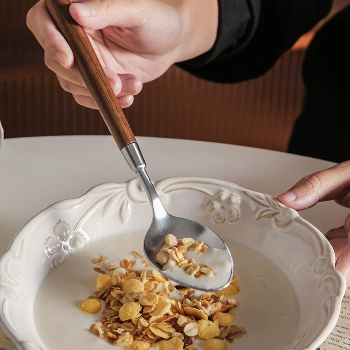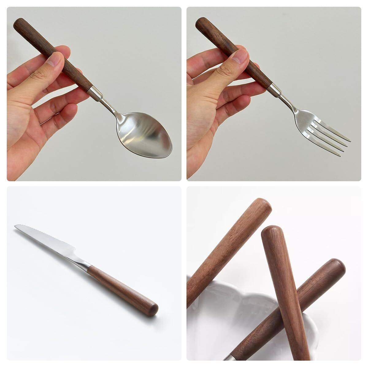 Hive Mind 木製ハンドル カトラリーセット ナイフ・フォーク・スプーン ステンレス&天然木 おしゃれ シンプルデザイン 家庭用 北欧風 食器 ギフトにも最適 (6点セット)