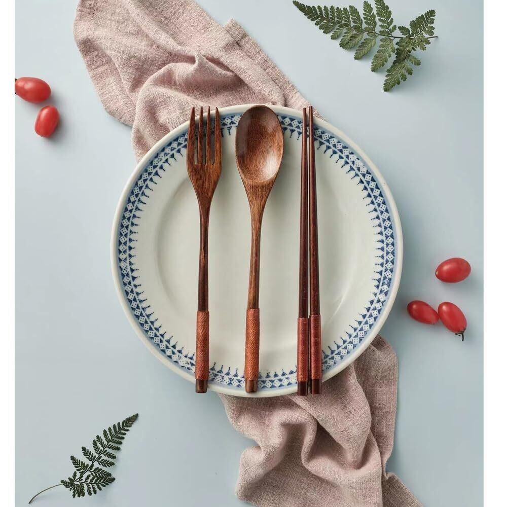 カトラリーセット スプーン フォーク スプーン付き 木製フォーク 多機能 食器 家庭用 ポータブル食器 キャンプ おしゃれ 和風 レストラン用 ディナーセット プレゼント 光沢感 ある 3点セット 耐久性 | kki