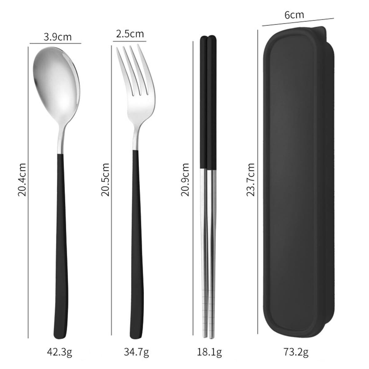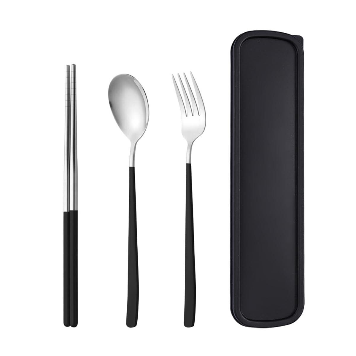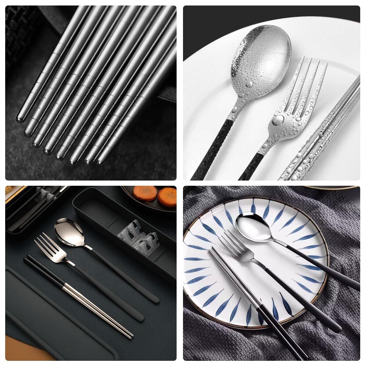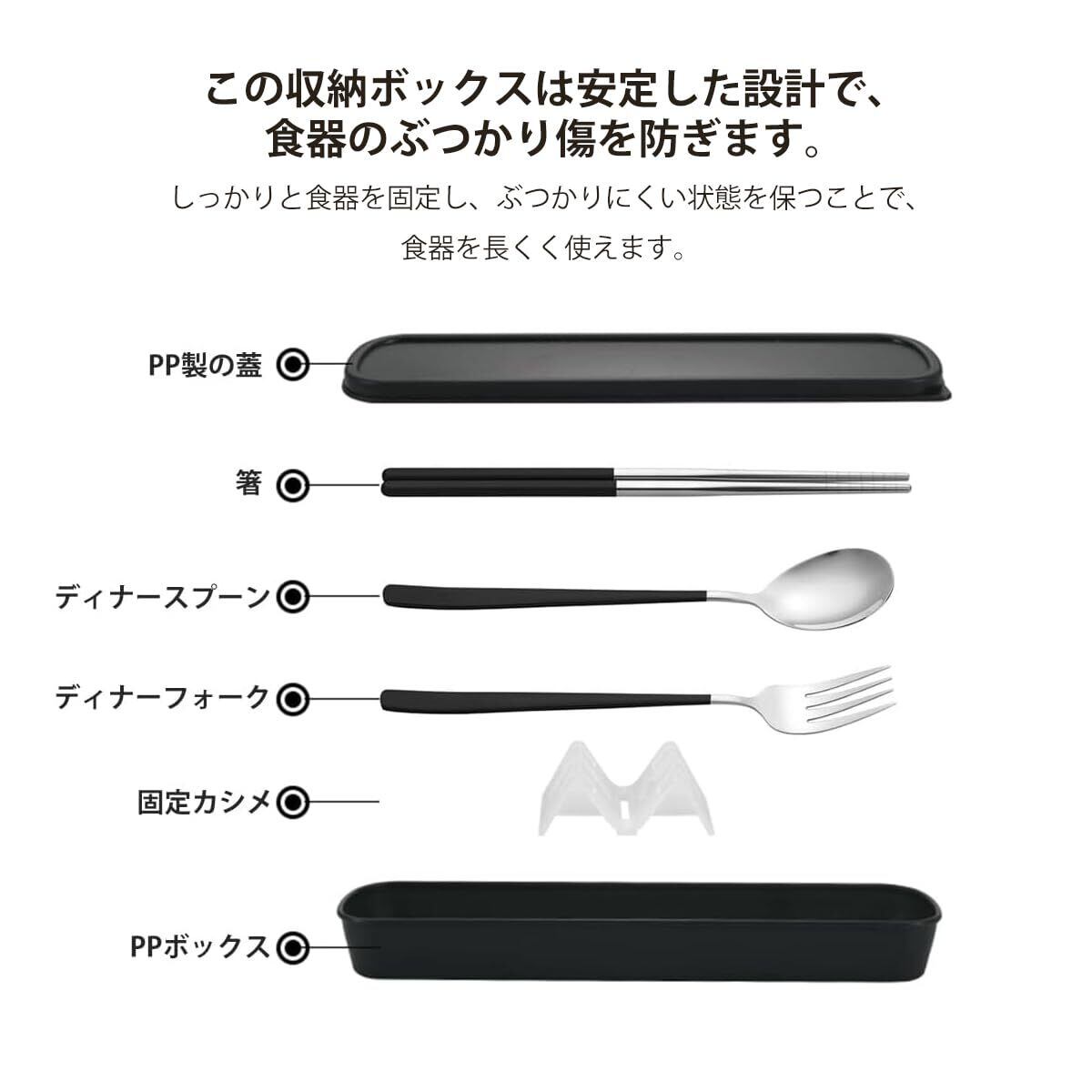 Hive Mind カトラリーセット キャンプ アウトドア 食器 箸 スプーン フォーク 1人用 ステンレス (ブラックシルバー, 1点)