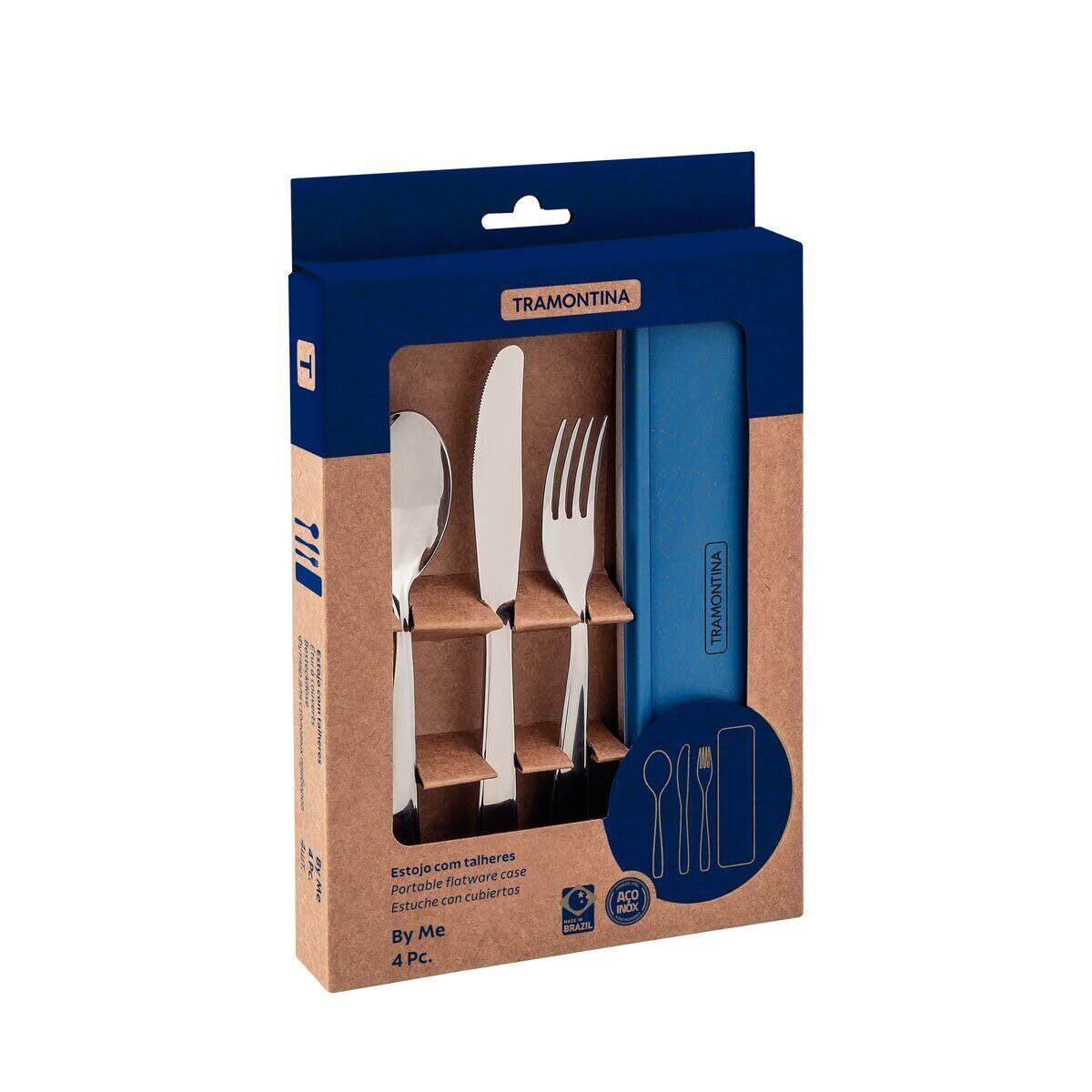 トラモンティーナ テーブルナイフ17cm&テーブルフォーク16cm&テーブルスプーン16cm バイミー 3本セット 収納容器付き 青 ブラジル製 61229/000 TRAMONTINA