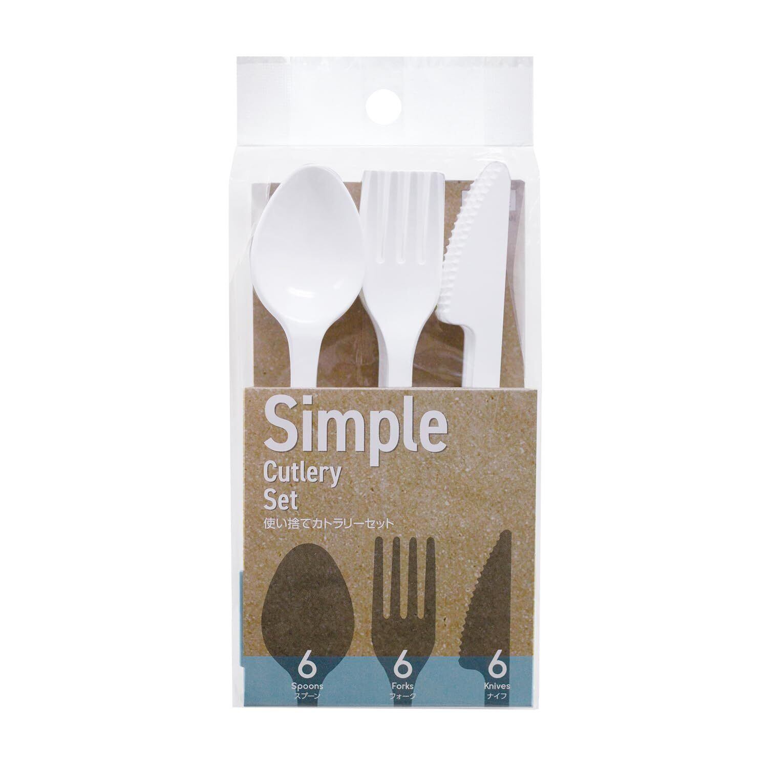 KOKUBO 使い捨て カトラリー (スプーン フォーク ナイフ / 各6本 計18本 / ホワイト) 日本製 携帯 弁当 アウトドア キャンプ 入院 KK-575