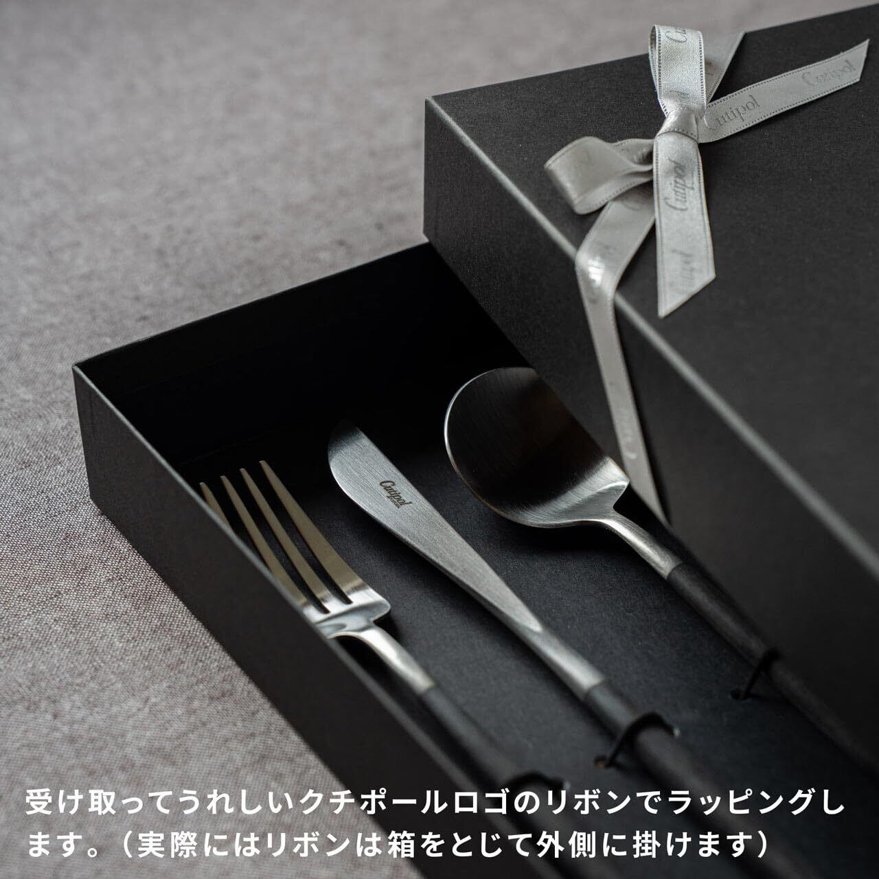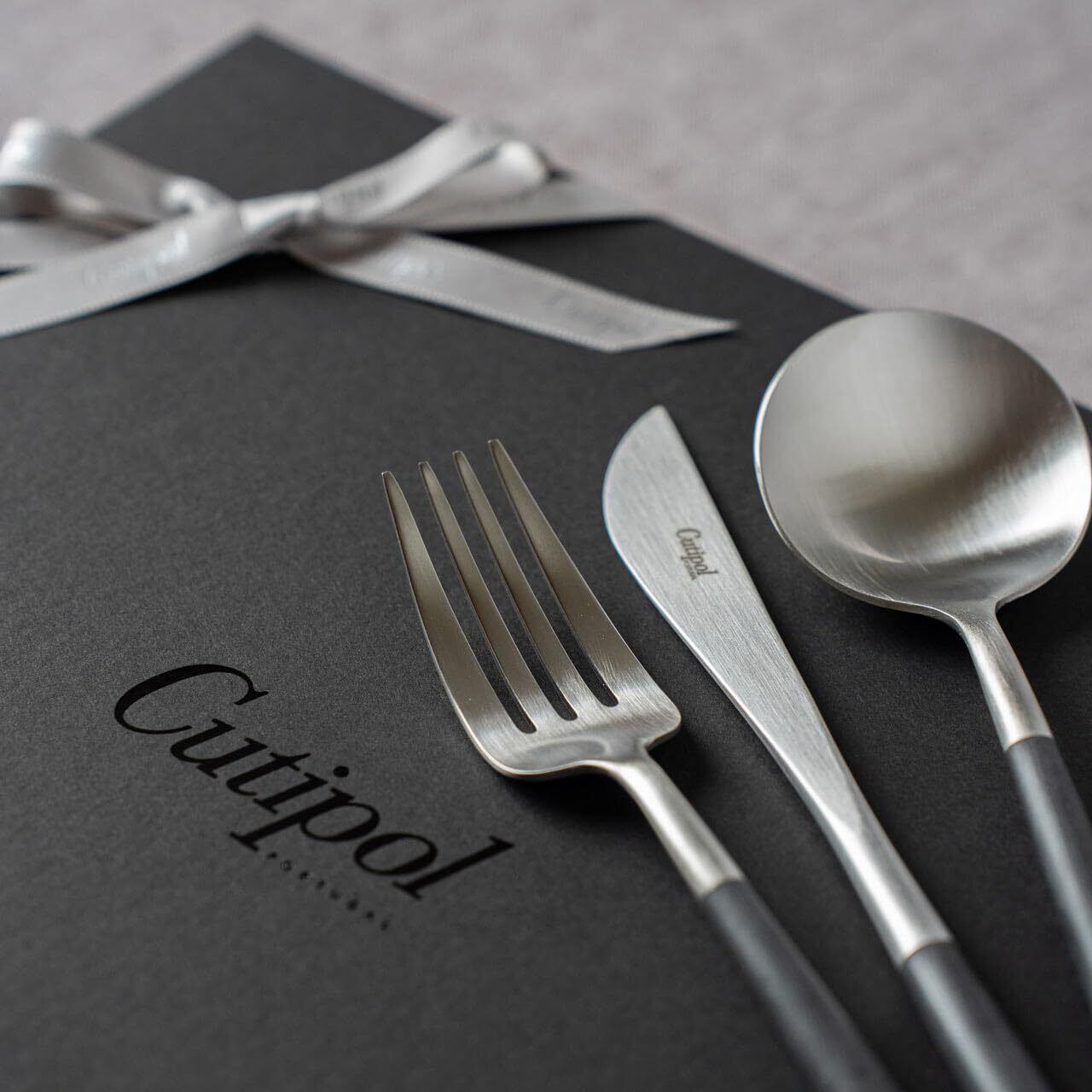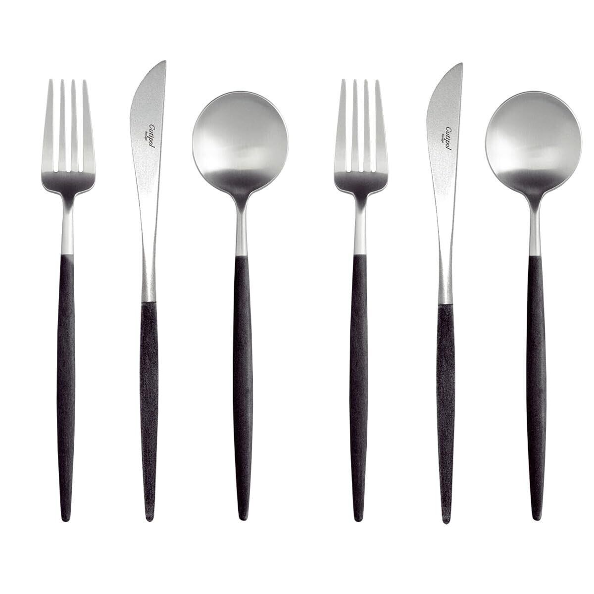 正規品 クチポール(Cutipol) GOA ブラック/マットシルバー ディナー (ナイフ/フォーク/スプーン 各2本) 6点セット 純正リボン掛け 化粧箱入り