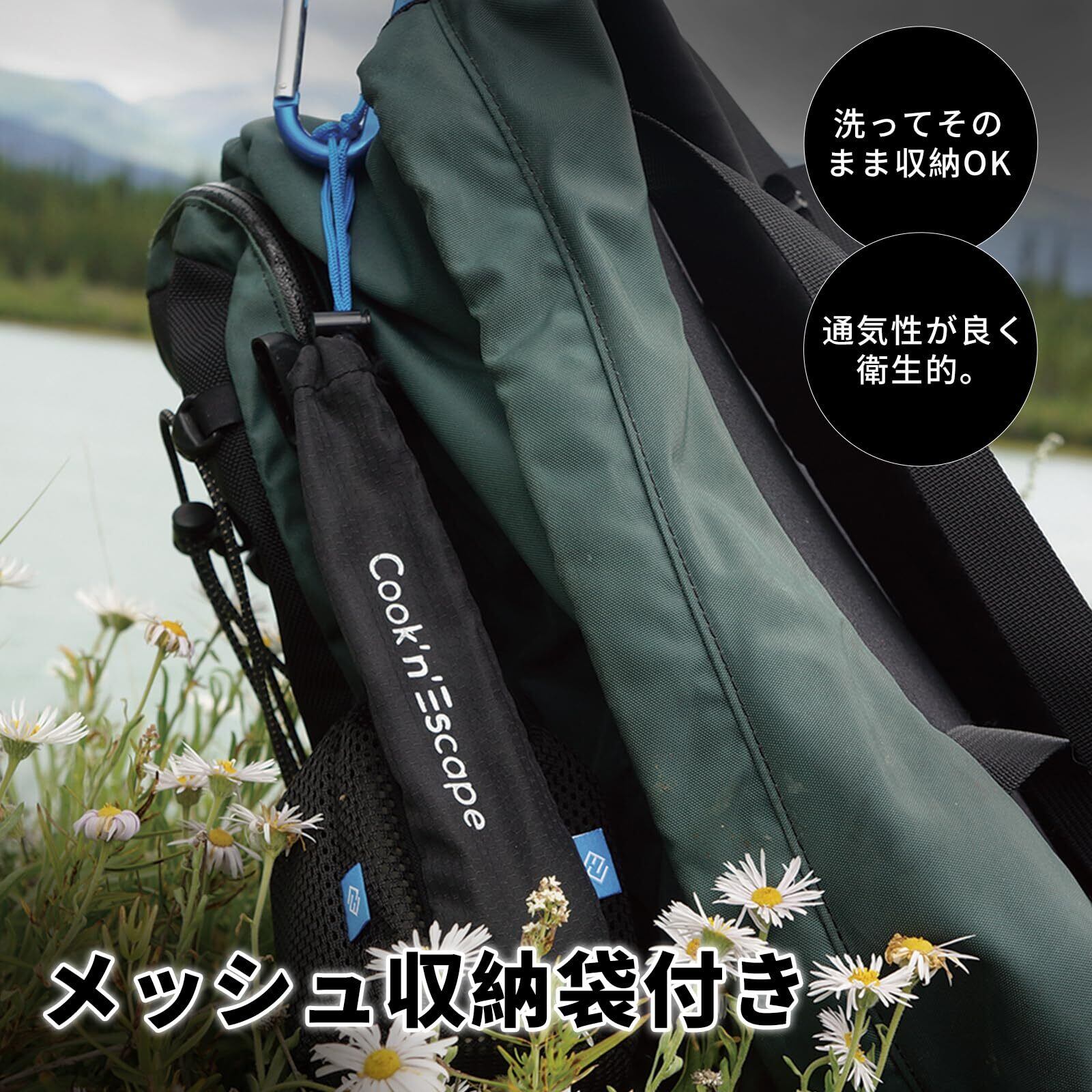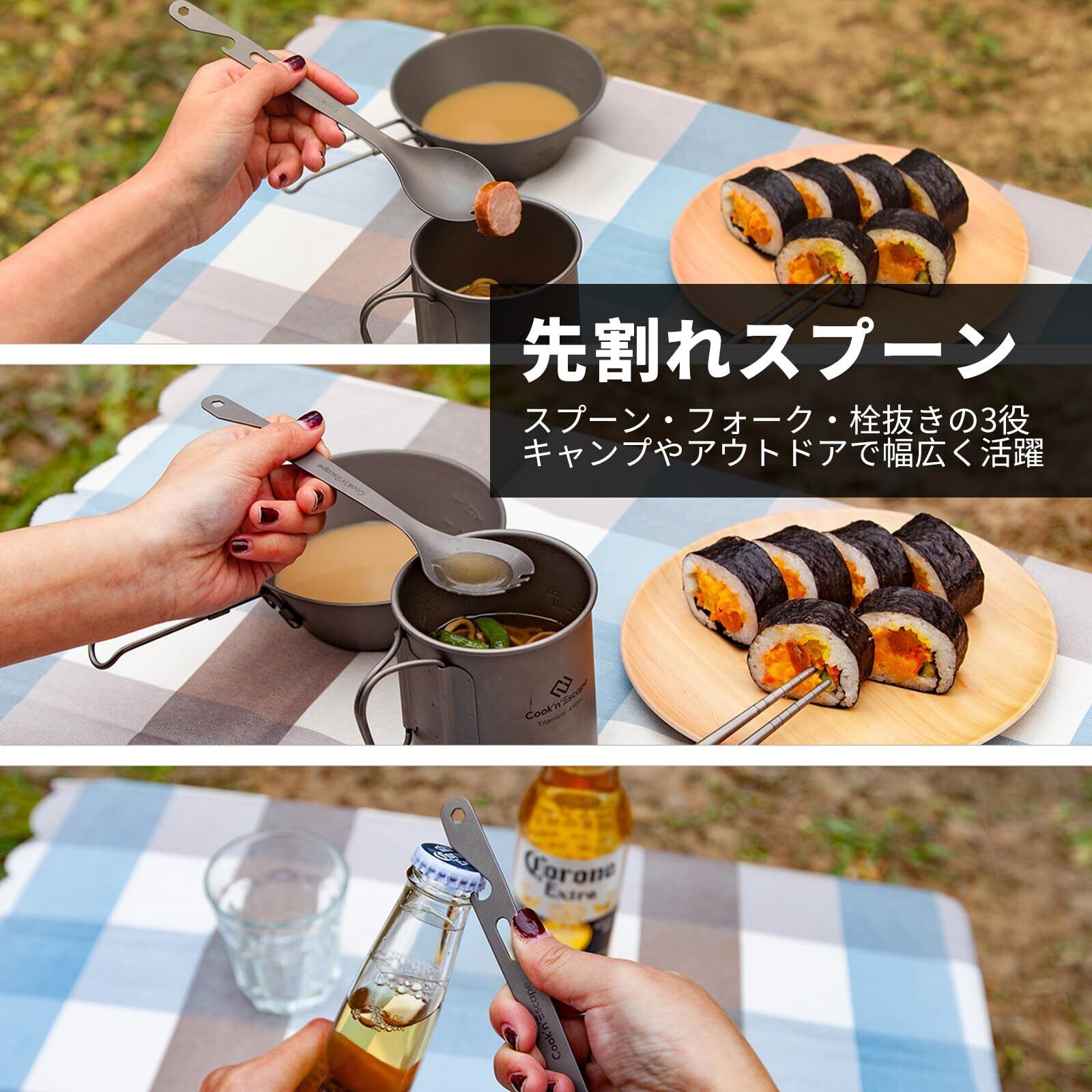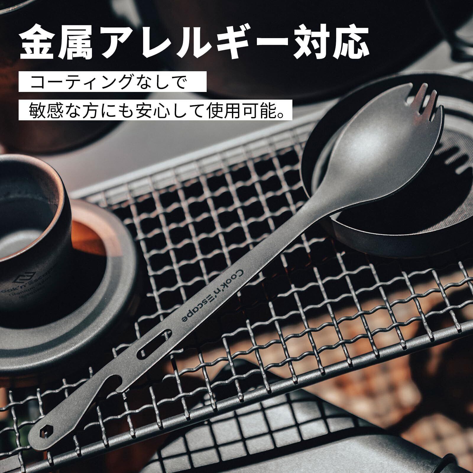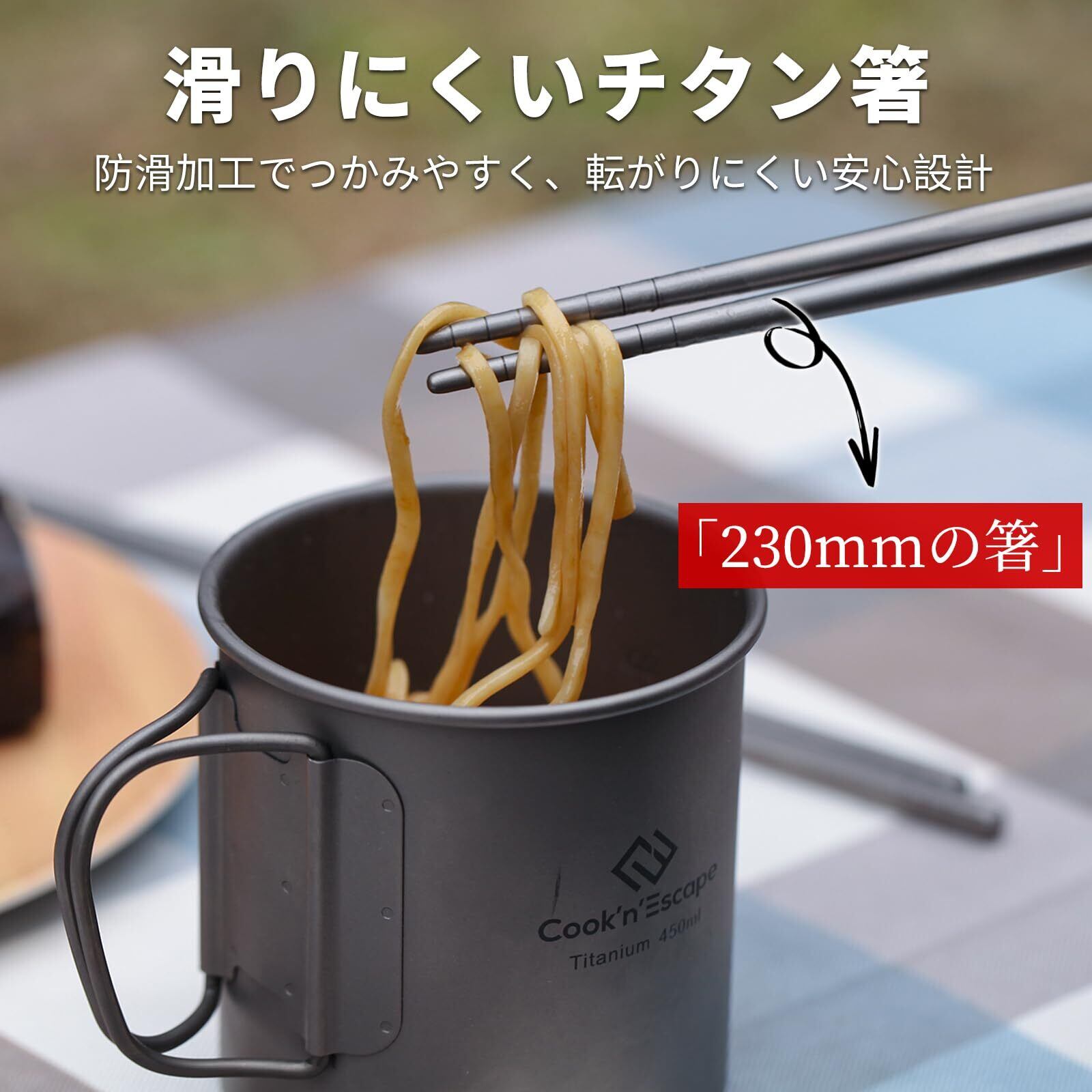 COOK'N'ESCAPE チタンカトラリーセット 2点セット 先割れスプーン+箸1膳 箸 フォーク スプーン アウトドア キャンプ 登山 旅行 防災 コンパクト 携帯 頑丈 食器セット 純チタン製 食品衛生基準適合 サバイバル キャンプ道具 高級 清潔 メッシュ袋付 | kki