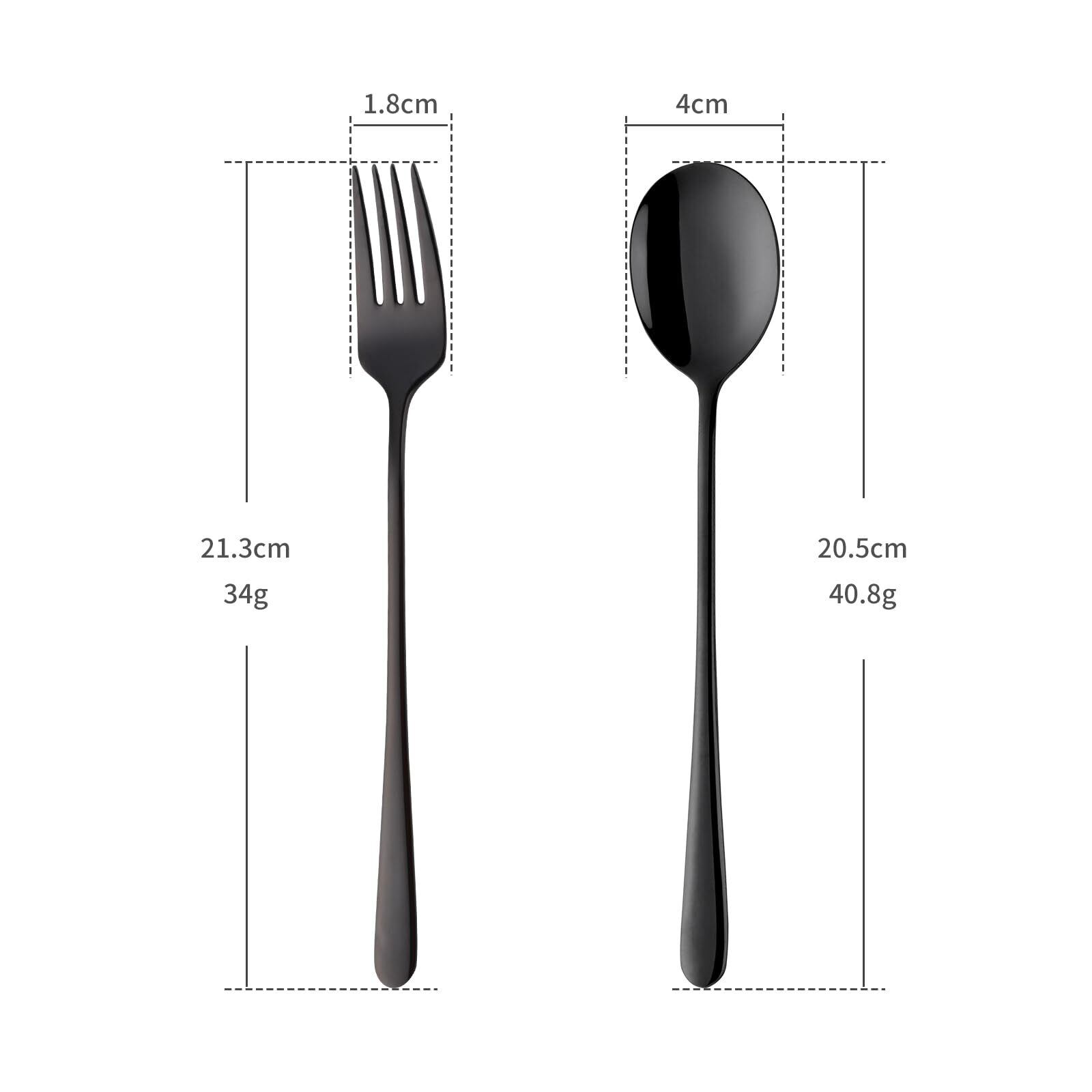カトラリーセット スプーン フォーク 黒色 2名用 ステンレス製 耐久性有り 鏡面仕上げ カレー パスタ サラダ スープ 家庭 来客 業務用 (4本セット)