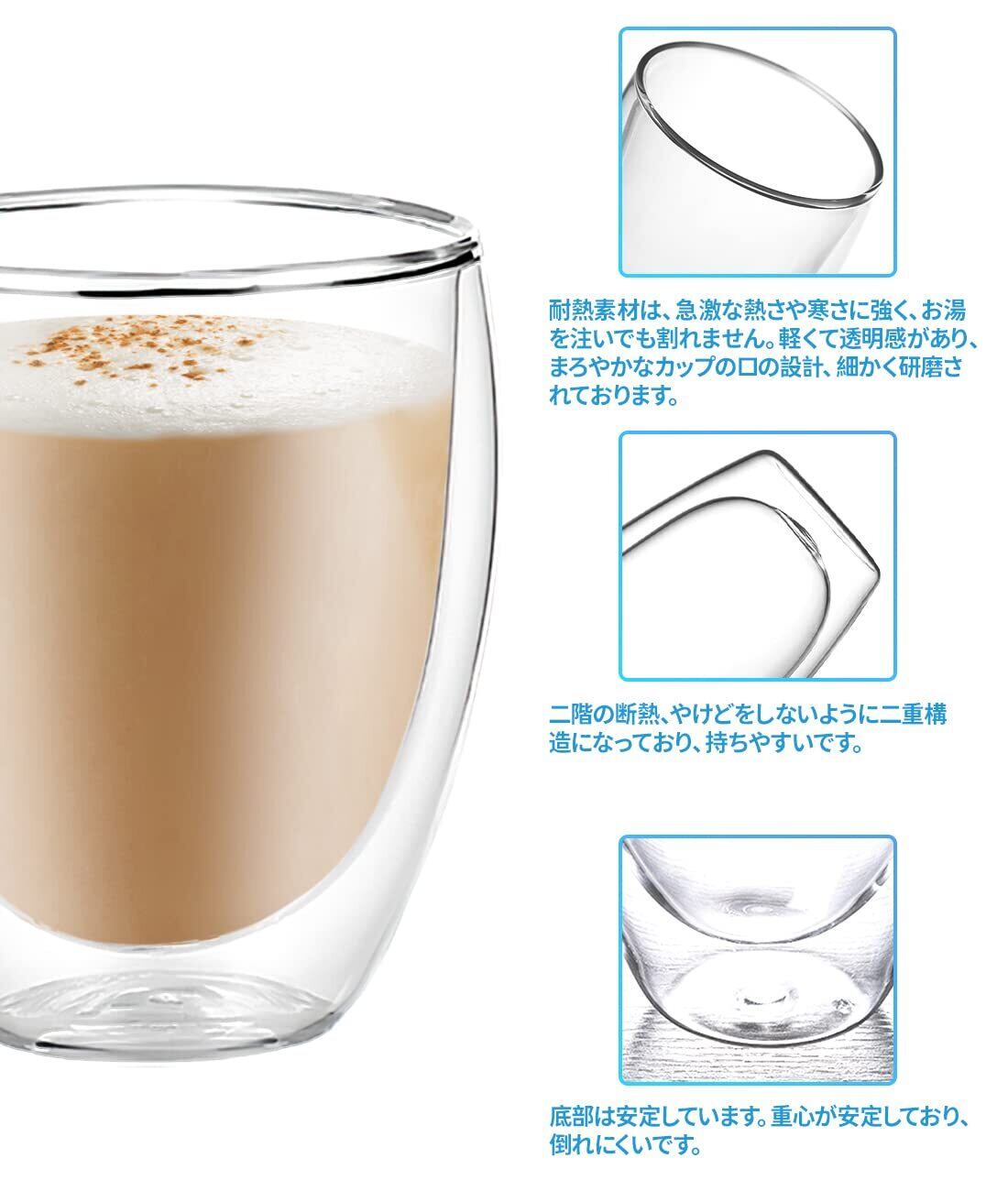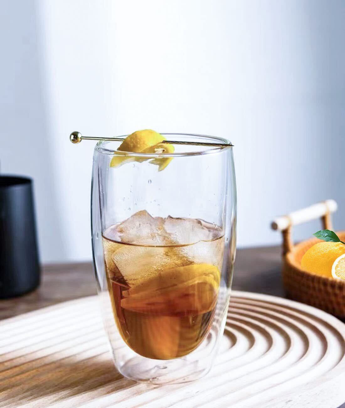 ダブルウォール グラス 2個セット 450ml 耐熱 二重 グラス コップ コーヒー 保冷 保温 透明 結露しない マグカップ タンブラー カップ 耐熱ガラス 耐熱コップ タンブラーグラス カップ グラスコップ ティーカップ おしゃれ シンプル (450ml) | kki