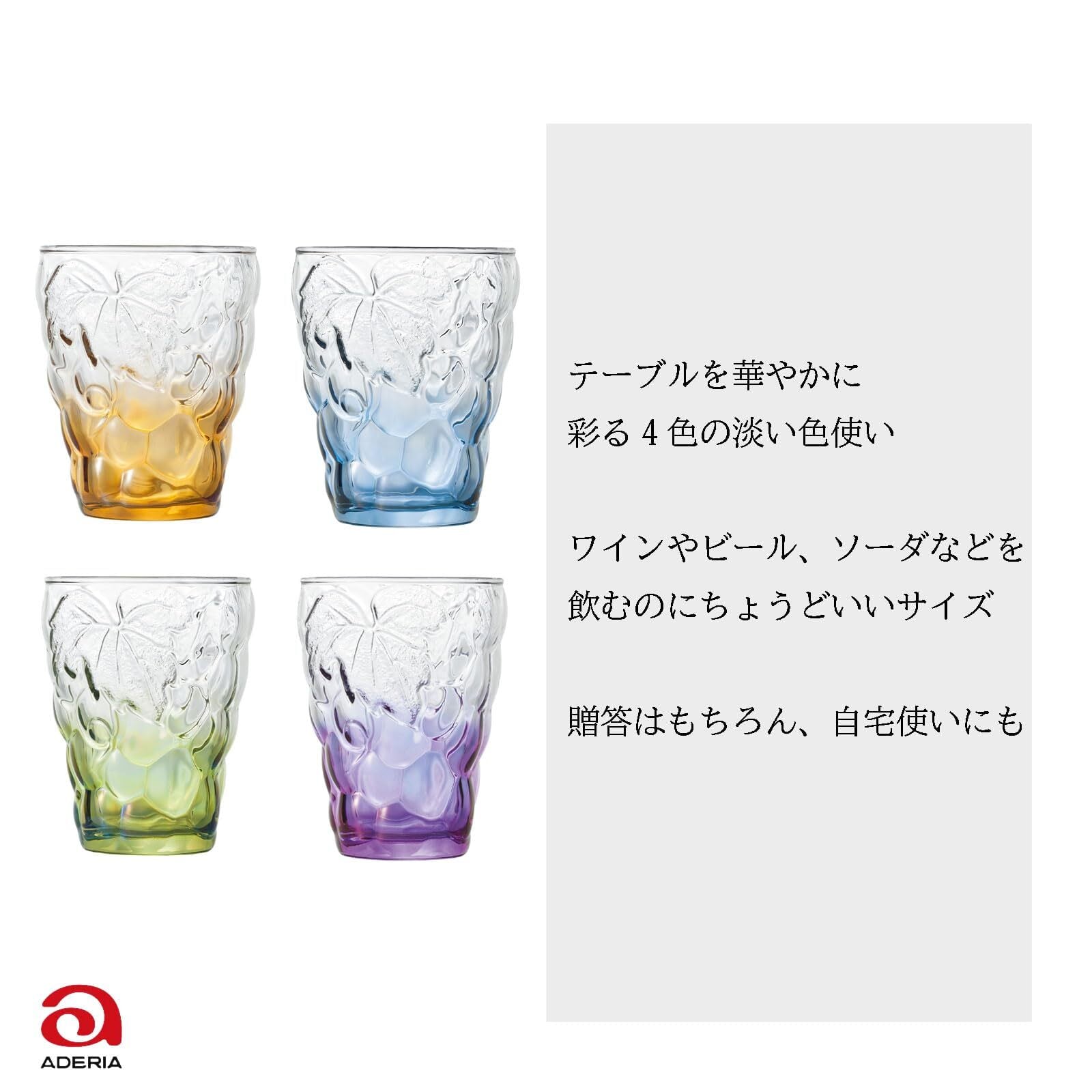 アデリア(ADERIA) ぶどうのグラス 4色セット 260ml 日本製 化粧箱入 コップ 結婚 祝い ビール おしゃれ プレゼント 人気 ランキング ガラス 日本酒 誕生日 女性 タンブラー 還暦 男性 退職 ウイスキー 父親 記念日 妻 ギフト 贈り物 父の日 母の日 S6118 | kki