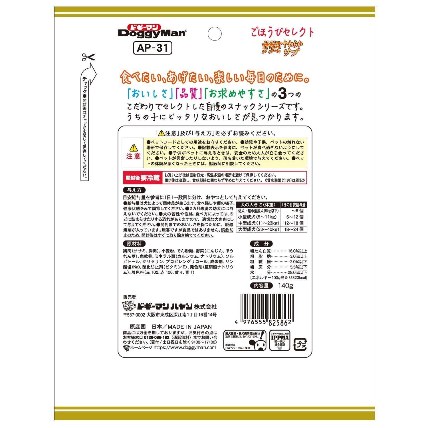 ドギーマン ごほうびセレクト ササミやわらかリブ 140g