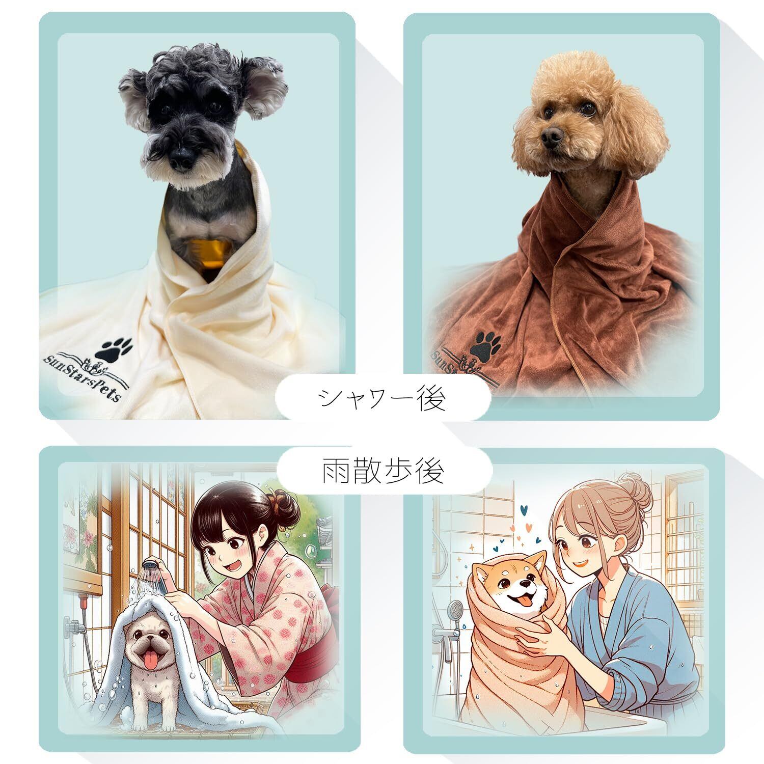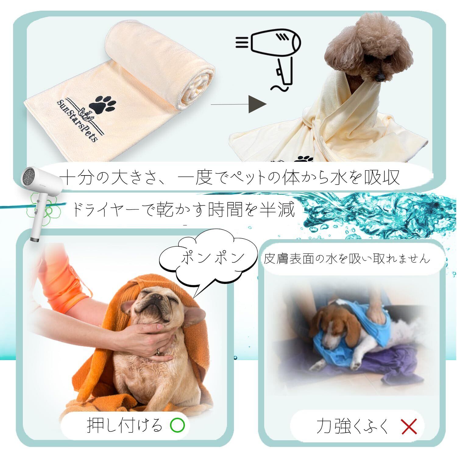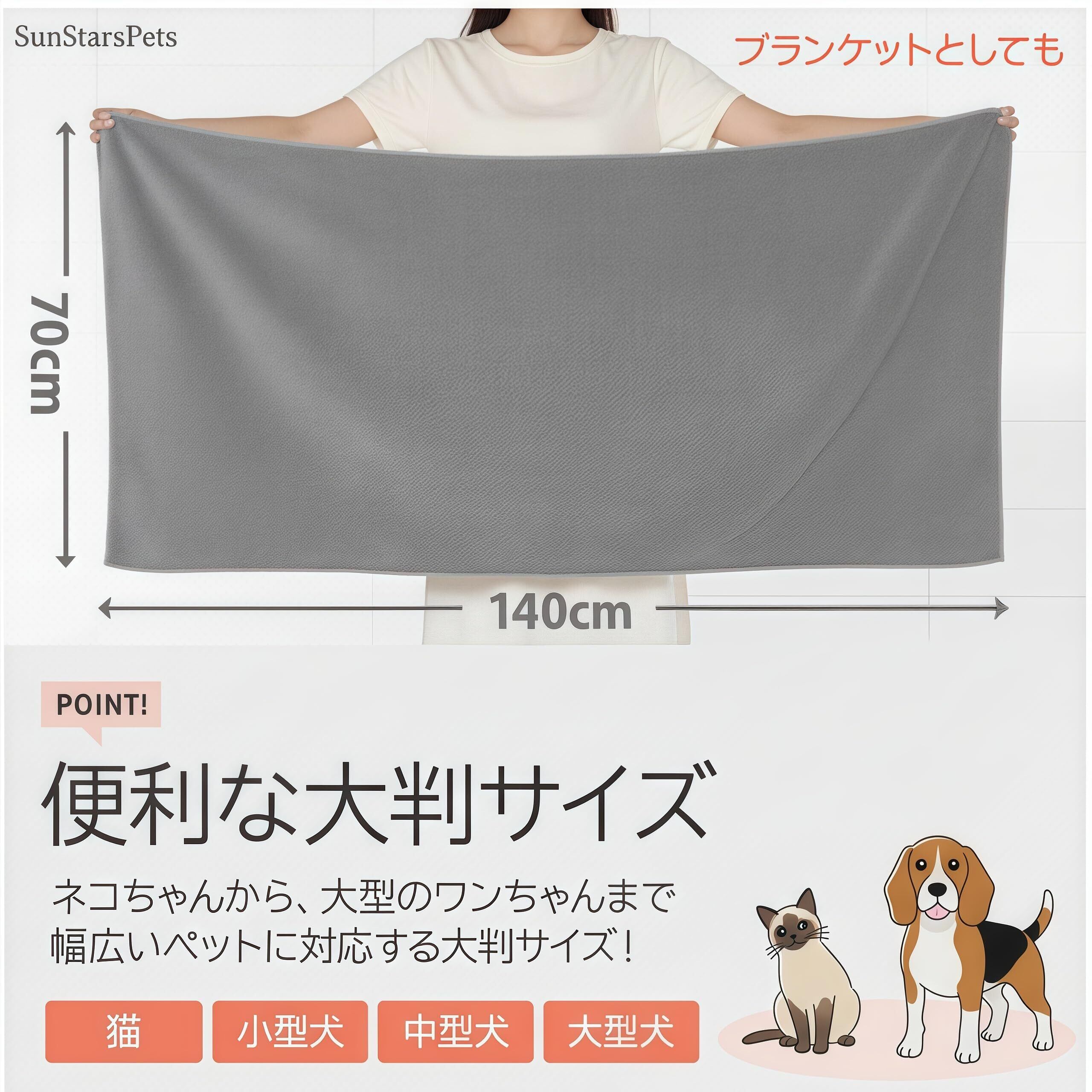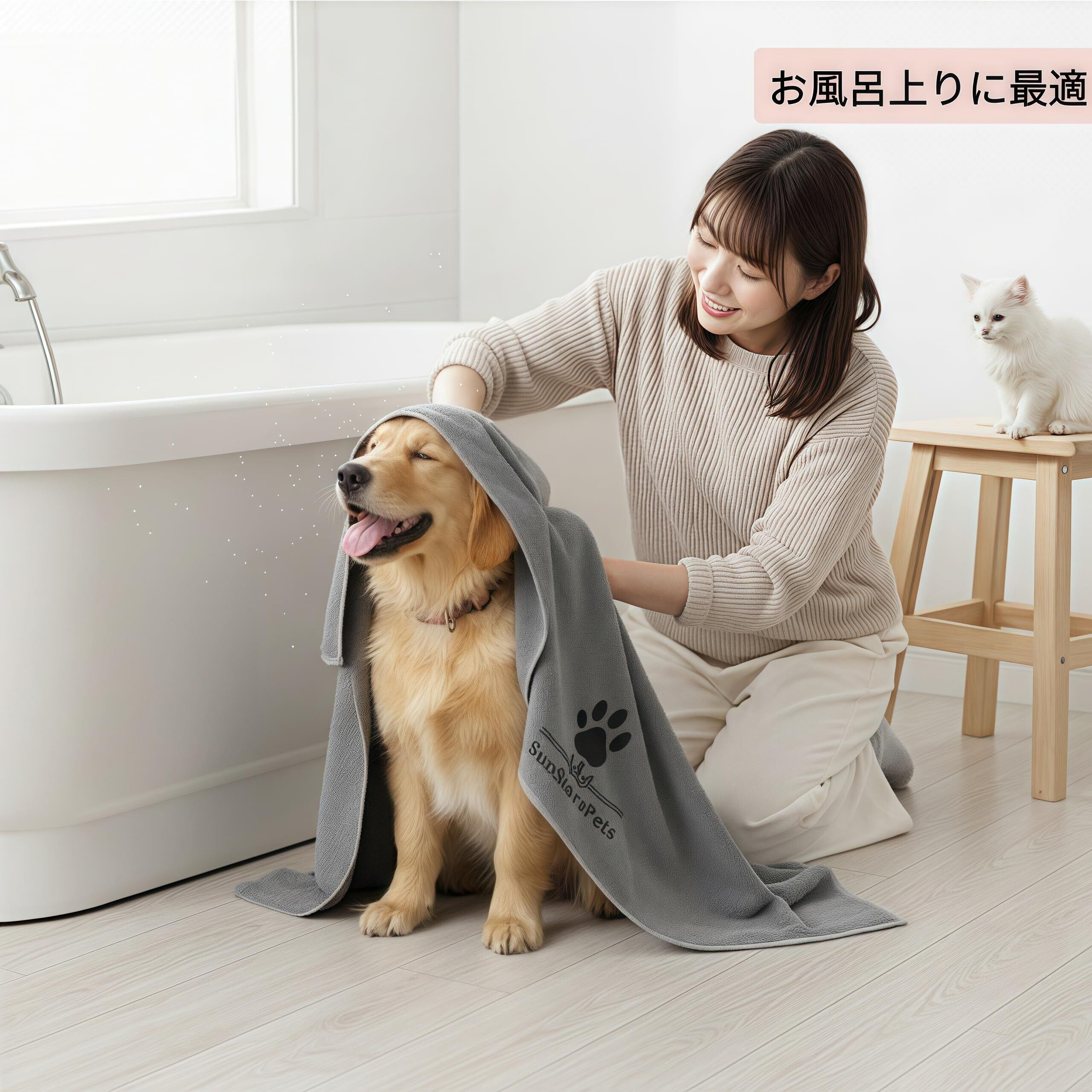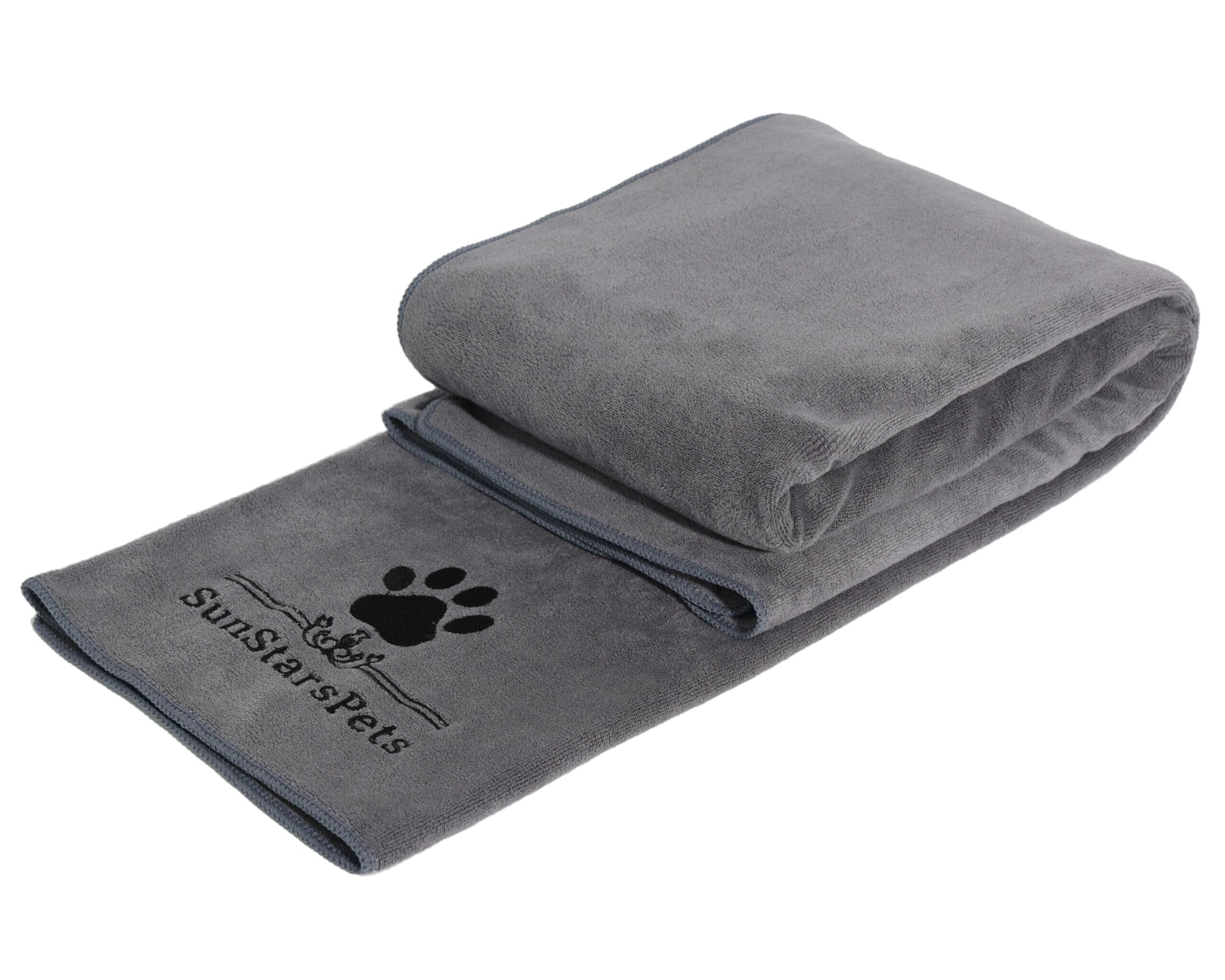 犬 猫用 超吸水マイクロファイバー厚手ペットタオル - 超ソフトな体拭き (1, グレー)