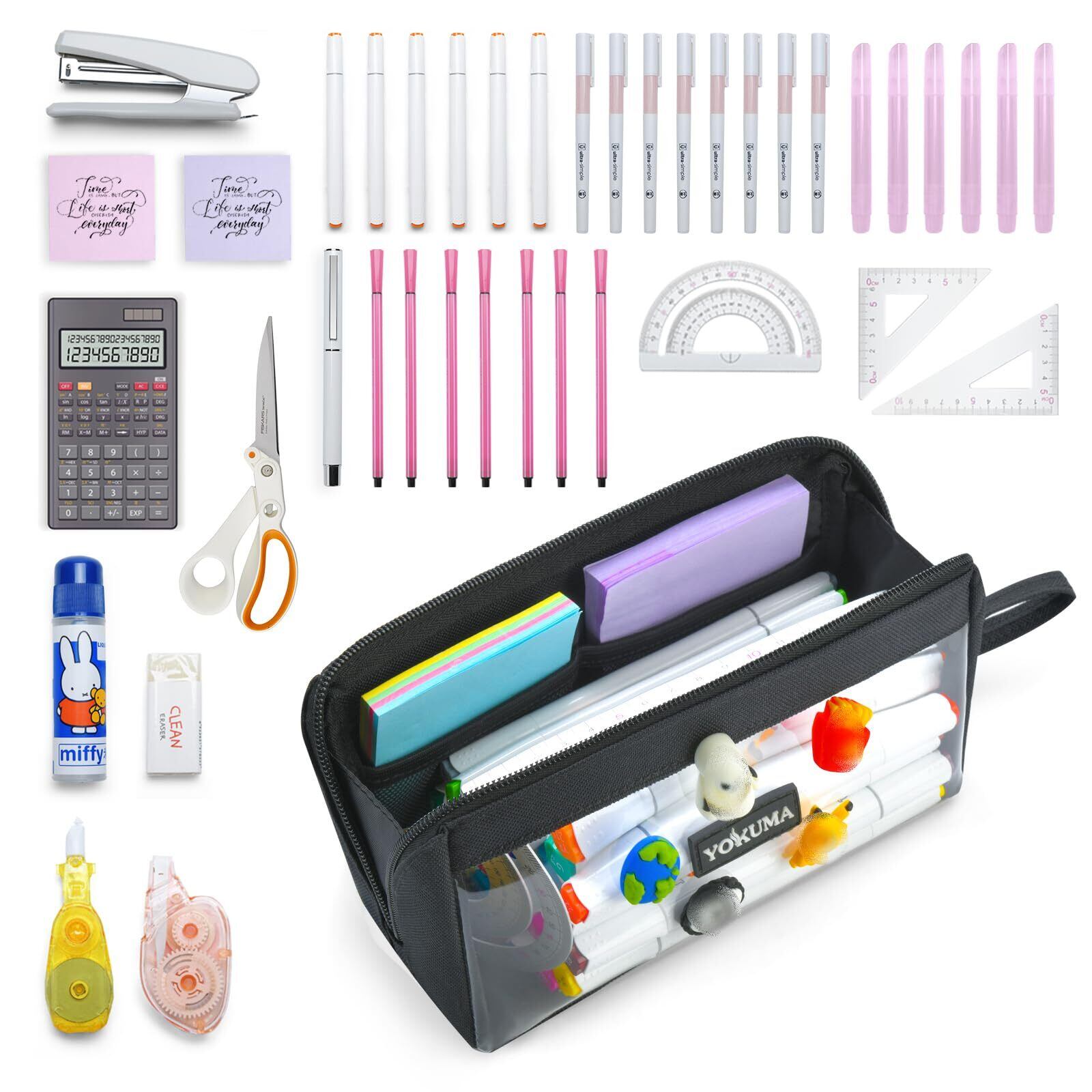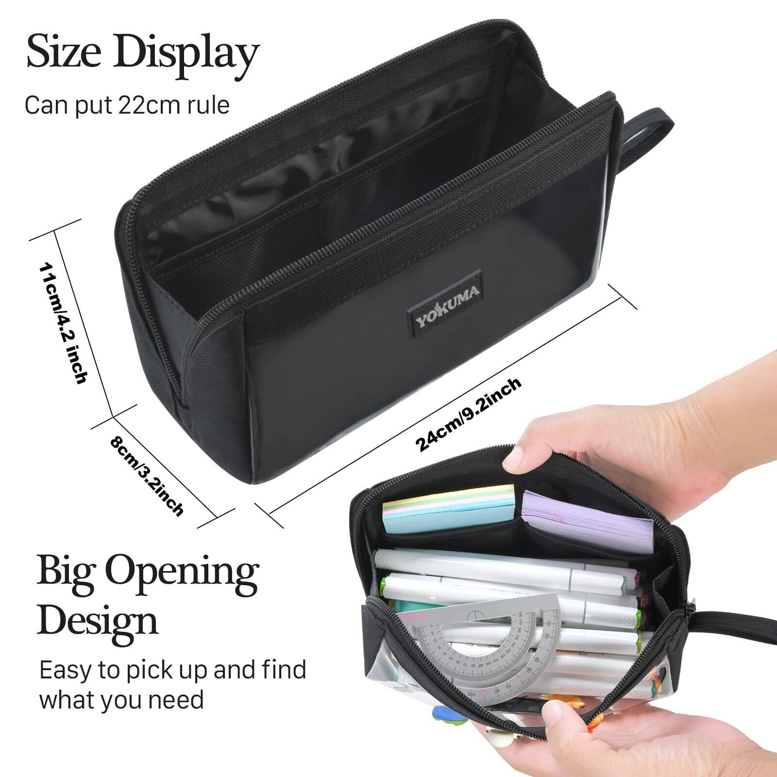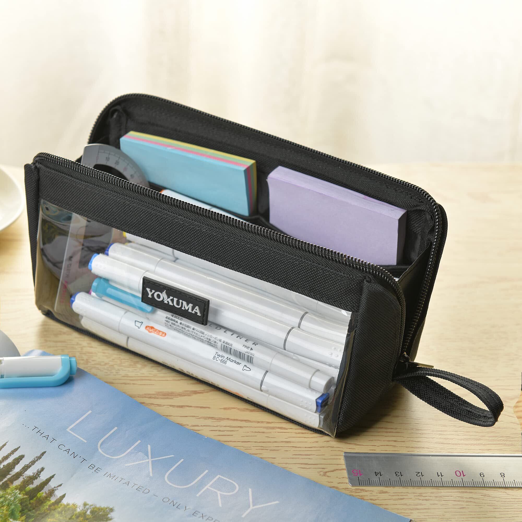 YOKUMA ペンケース 筆箱 ポーチ 透明 おしゃれ シンプル 大容量 多機能 大人 高校生 中学生 男の子 女の子 大学生 小学生 子供用 (ブラック)