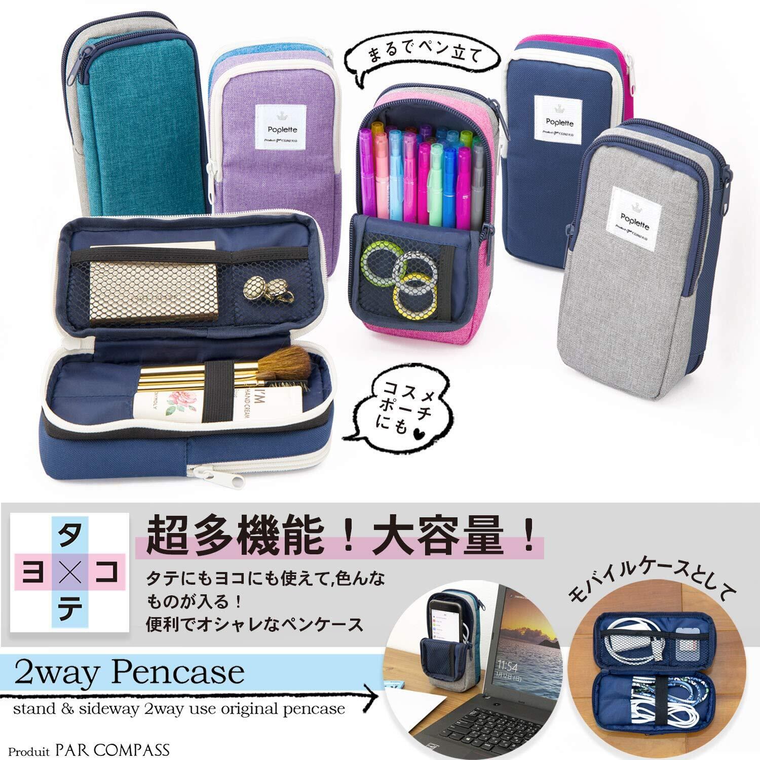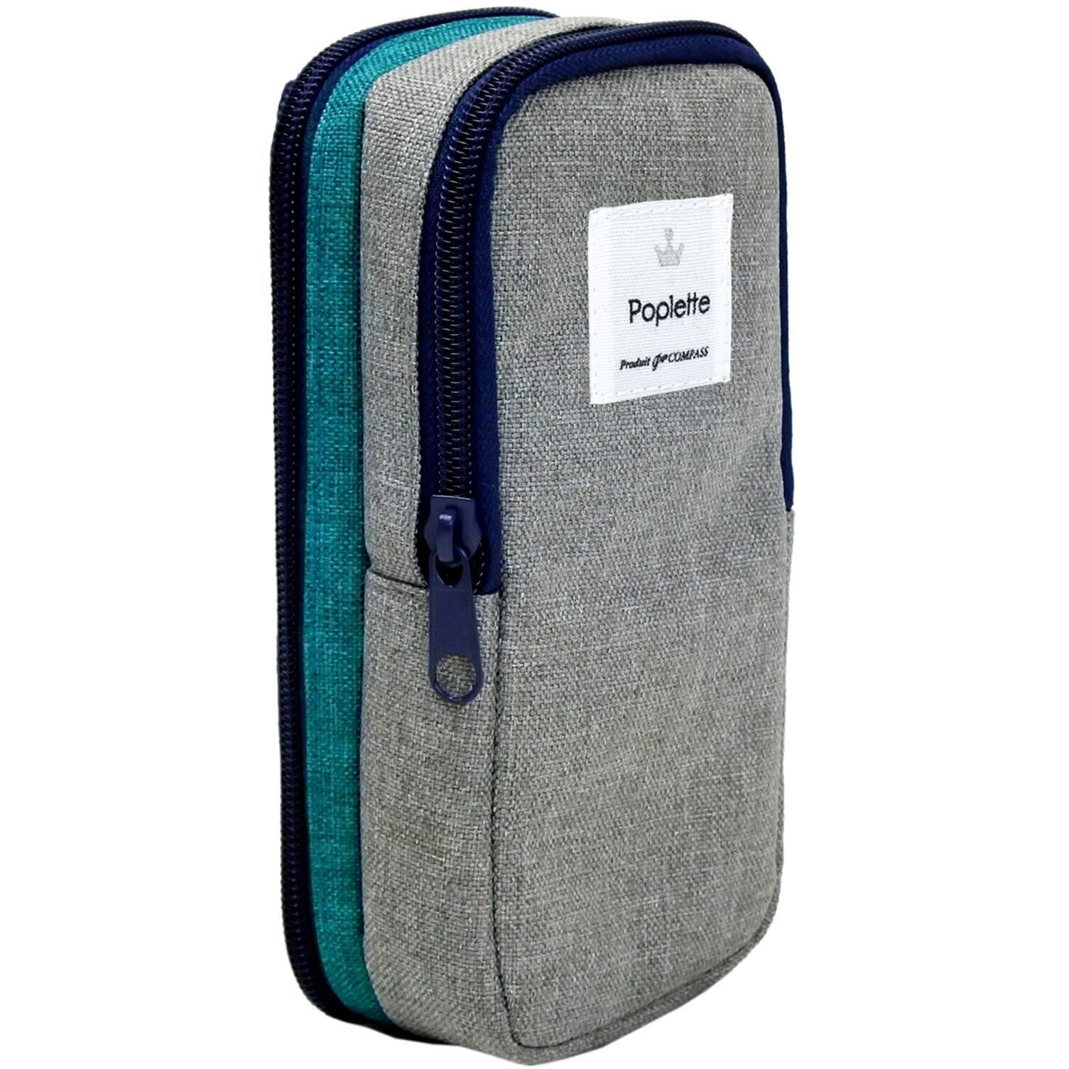 ペンケース Poplette タテヨコ ブルー×グレー PLP1-BG