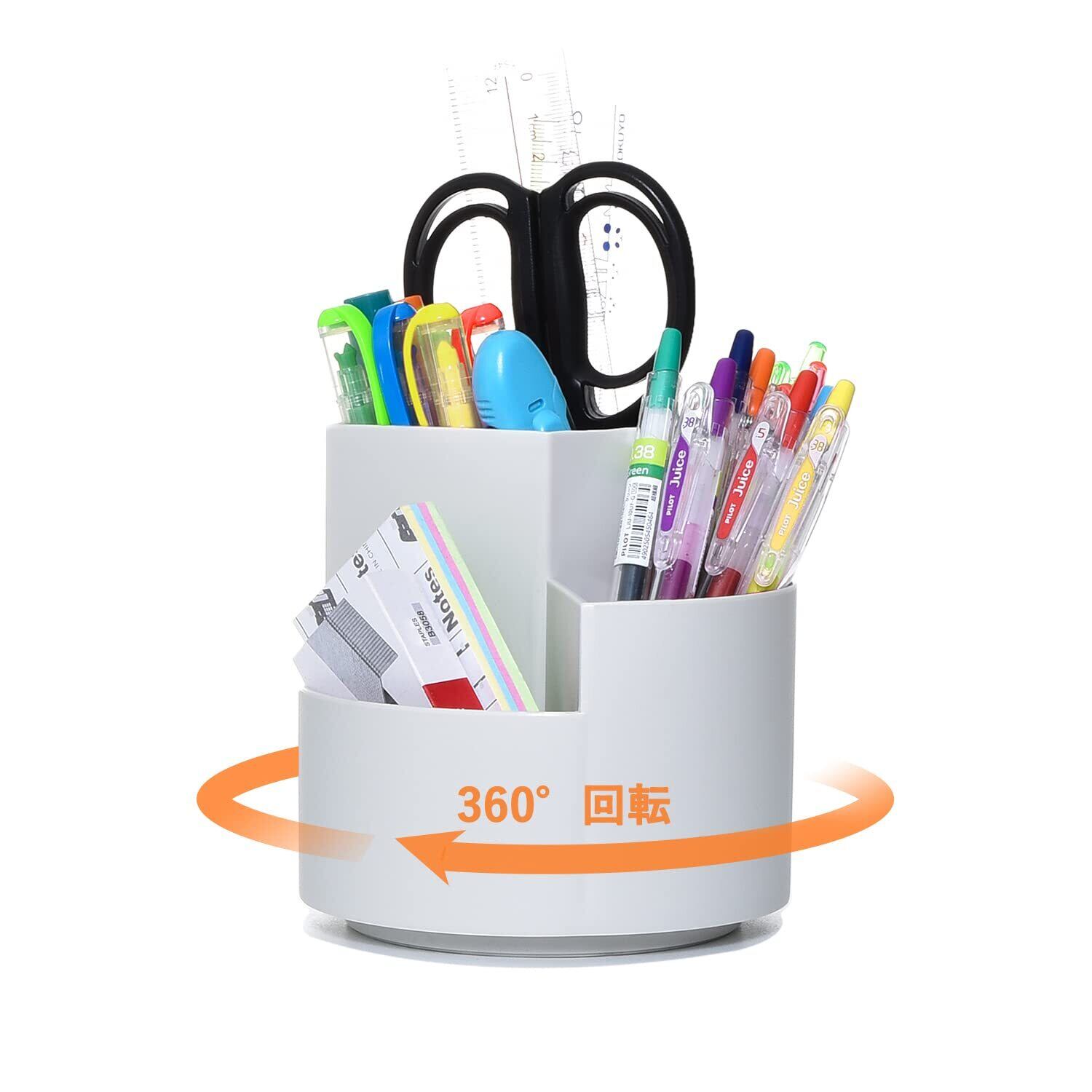 Homdolaser ペン立て 360度回転 ペンホルダー ペンスタンド 大容量 ぺんたて 3グリード分類鉛筆たて 回転ペンホルダー 多機能 分類箱 小物分類卓上収納 文房具 化粧品 収納 便利 オフィス 家庭生活用 収納ボックス グレー | kki