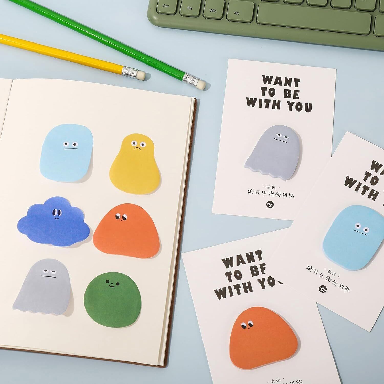 付箋 文房具 付箋 可愛い おもしろカラフルメモ帳 強粘着メモ帳 メモ用紙 シール 便利シール 付箋 メッセージカード 文房具 6枚セット