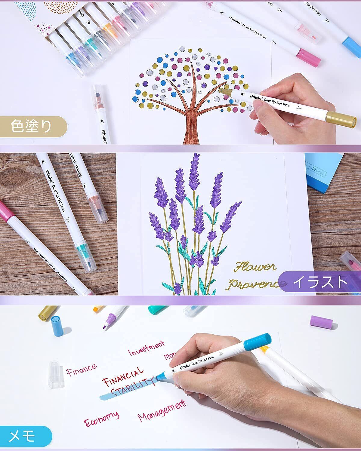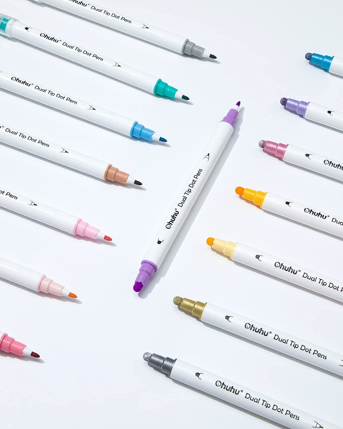 Ohuhu ドットペン 15色セット 0.5mm 押し ドットマーカー メタリックと基本色 ドット カラーペン 水性ペン お絵かきセット DIY メモ 塗り絵 落書き