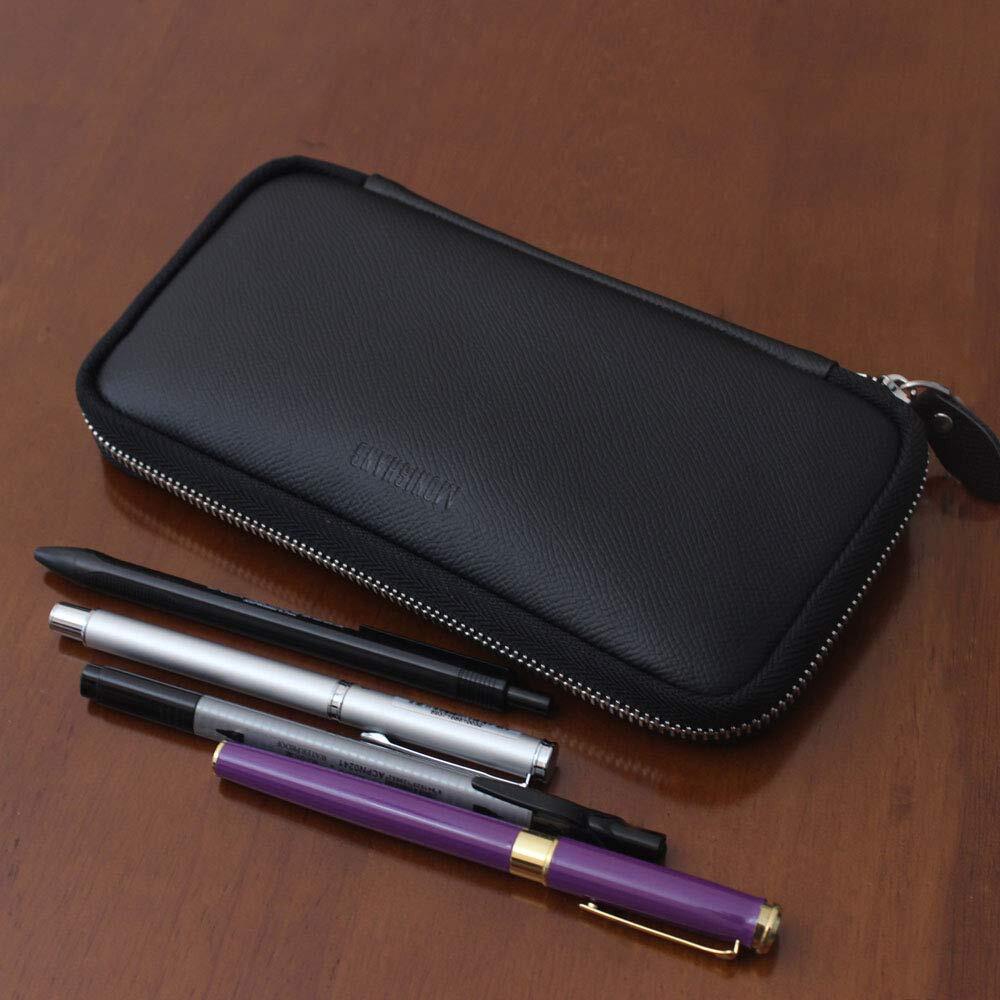 ペンケース 革 レザー 筆箱 大容量 ペン立て 多機能 おしゃれ シンプル 社会人用 男の子 万年筆 ケース 文房具 (黒い)